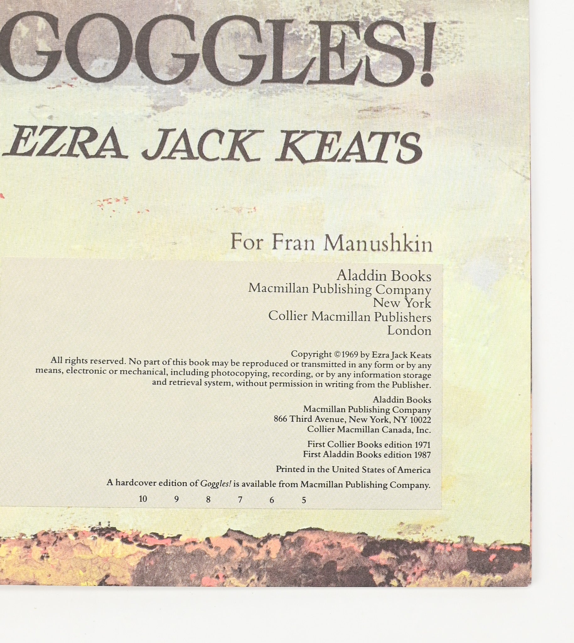This is a 1987 Aladdin Books Edition of GOGGLES! By Ezra Jack Keats