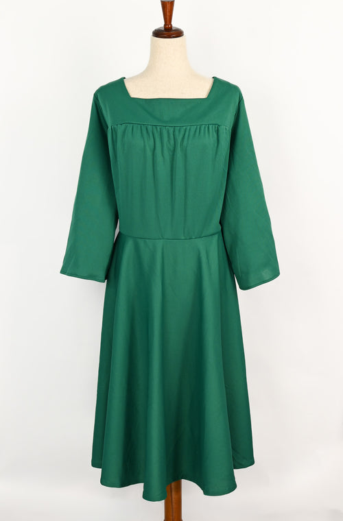 Vintage 70s/80s Green Polyester ROAMAN'S Long Sleeve Fit & Flare Dress