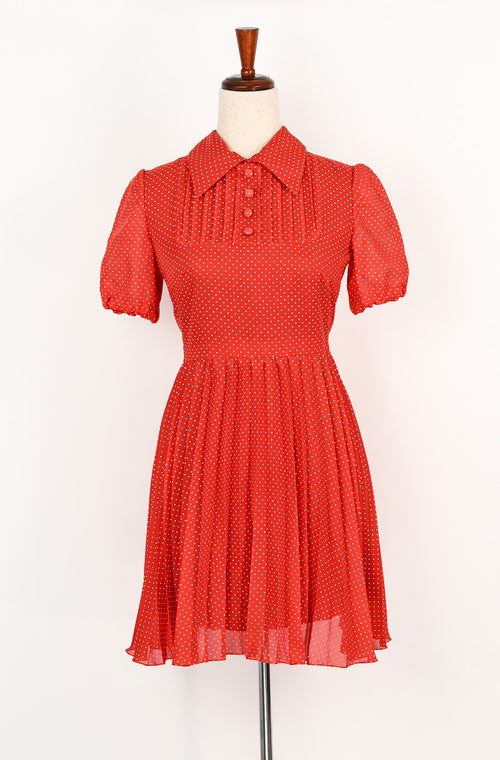 Vintage Red & White Polka-dot Collared Fit & Flare Babydoll Mini Dress