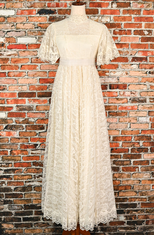 RARE Vintage 70s White Lace Palazzo Pant Style High Collar Wedding Dress