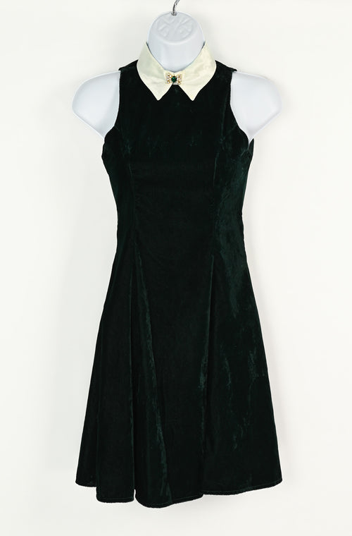 Vintage 90s Green Velvet JESSICA McCLINTOCK Collared Mini Dress