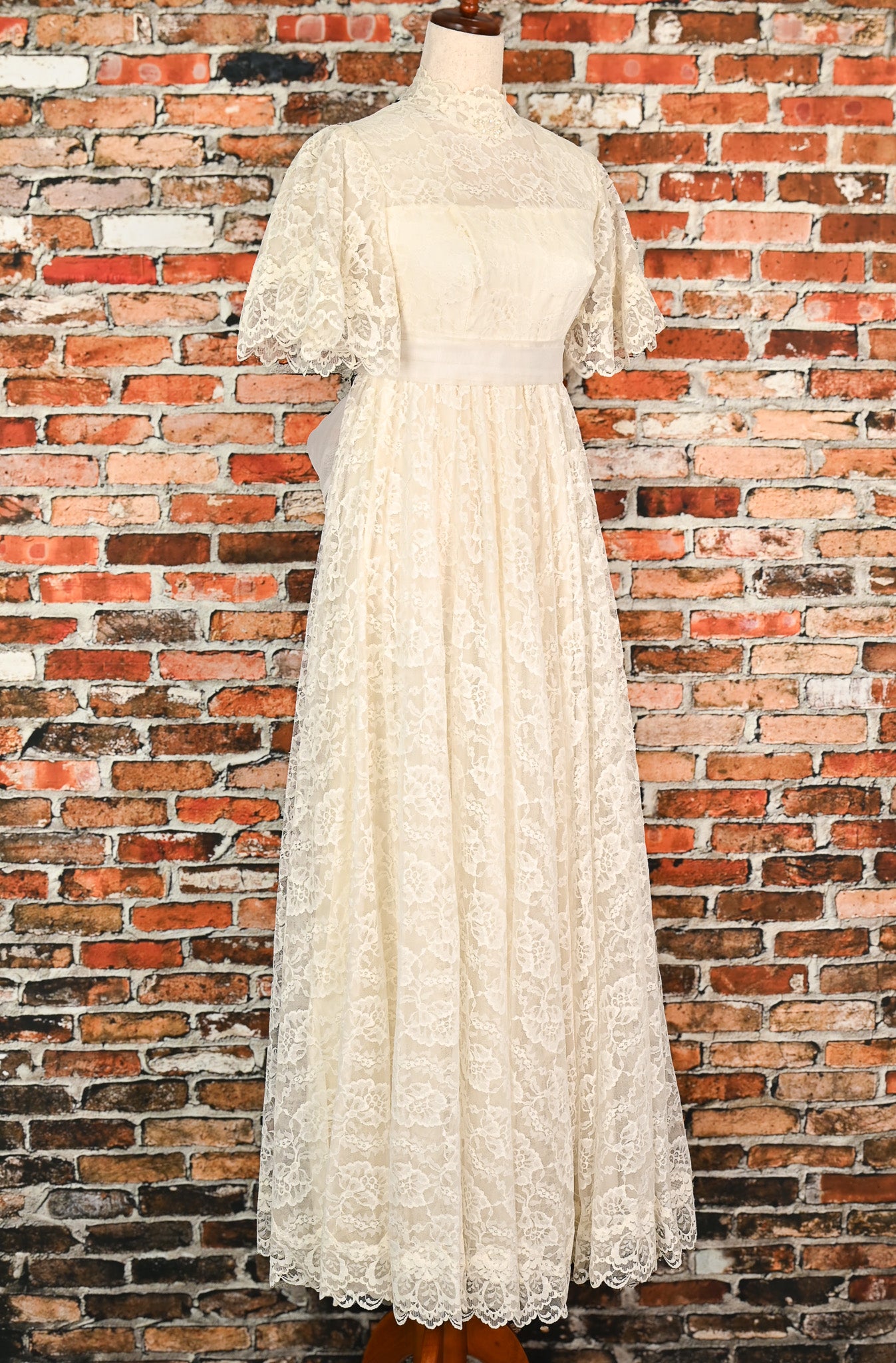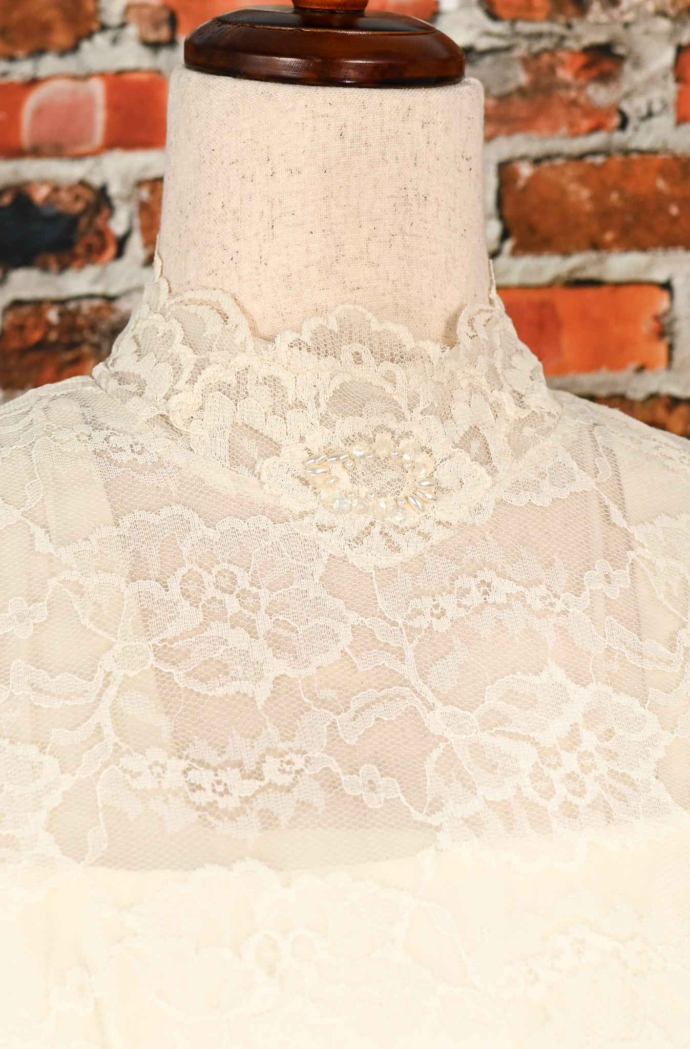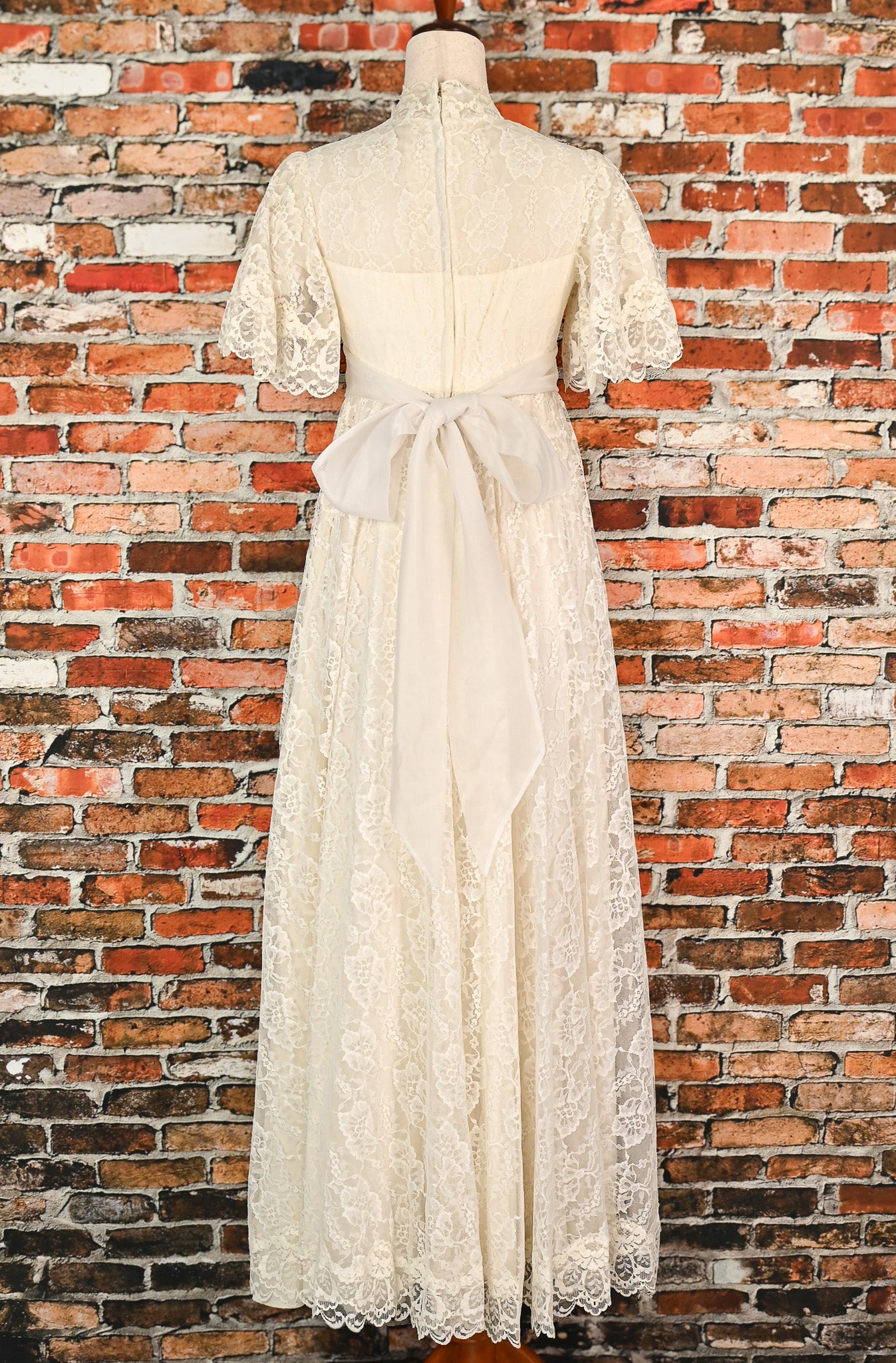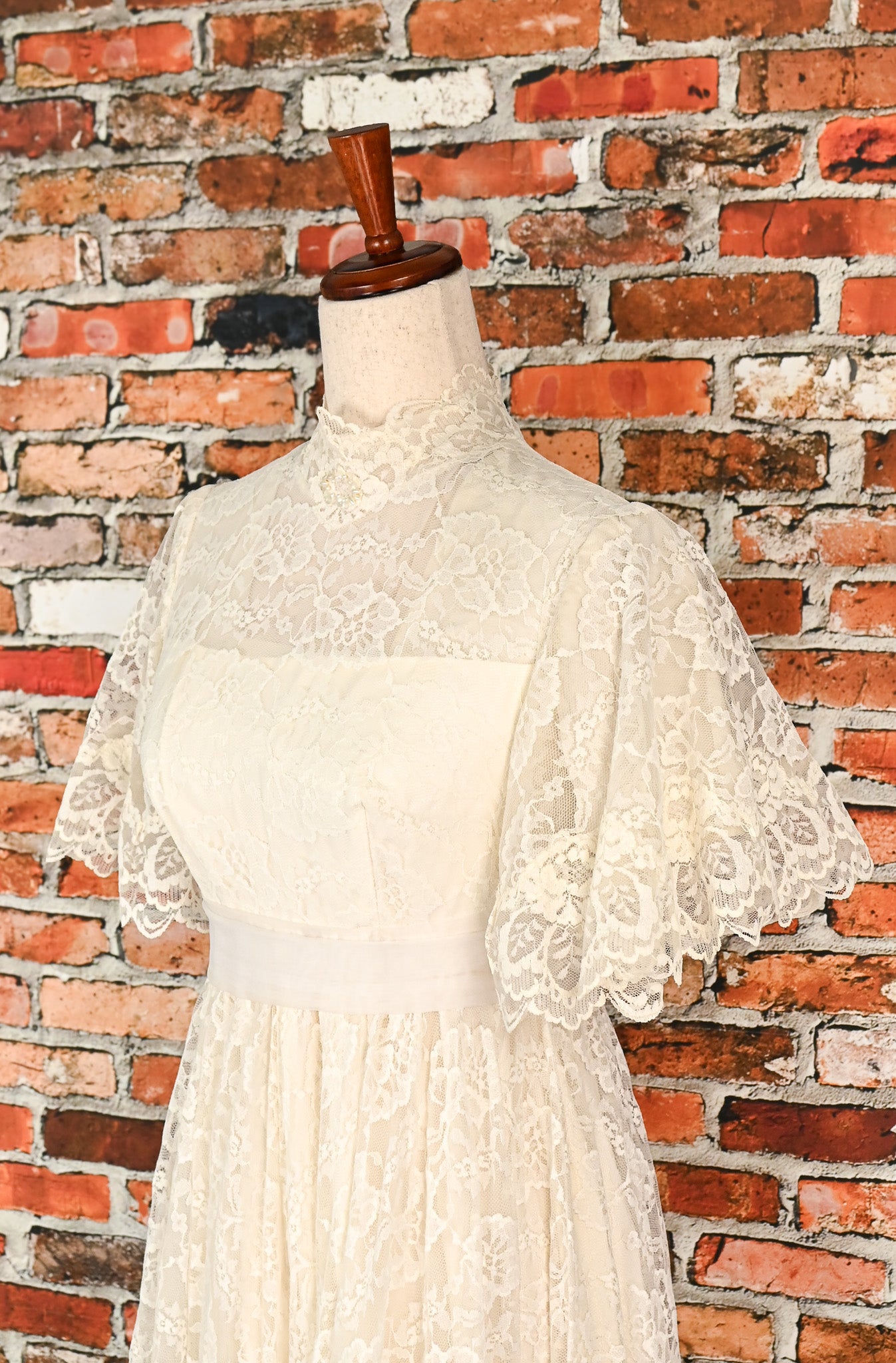 RARE Vintage 70s White Lace Palazzo Pant Style High Collar Wedding Dress