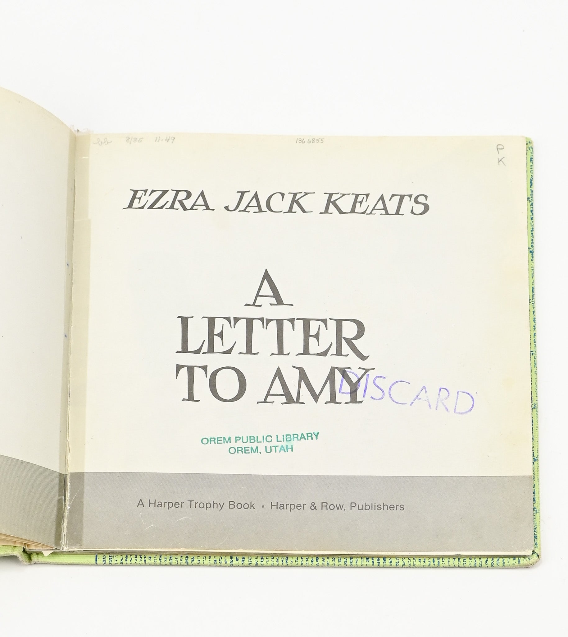 1968 Edition - A LETTER TO AMY - Ezra Jack Keats - Hardback Book