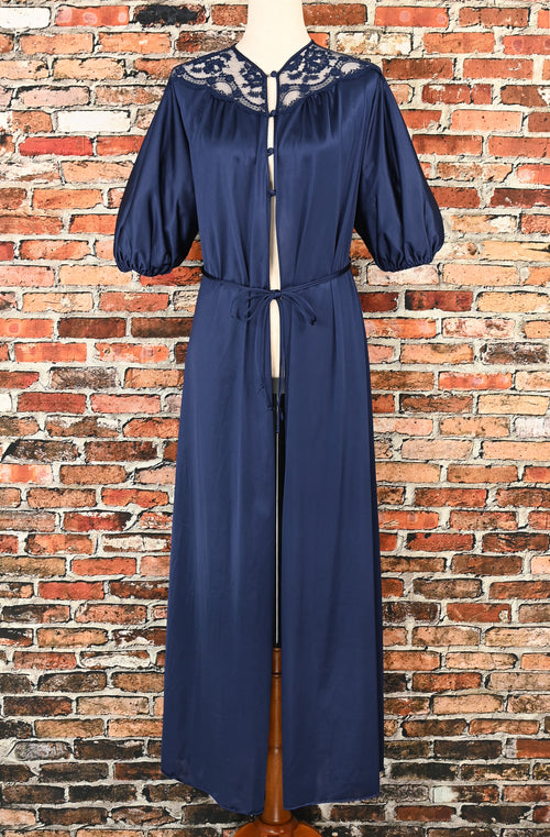 Vintage 70s Dark Blue VANITY FAIR Peignoir Robe - 34