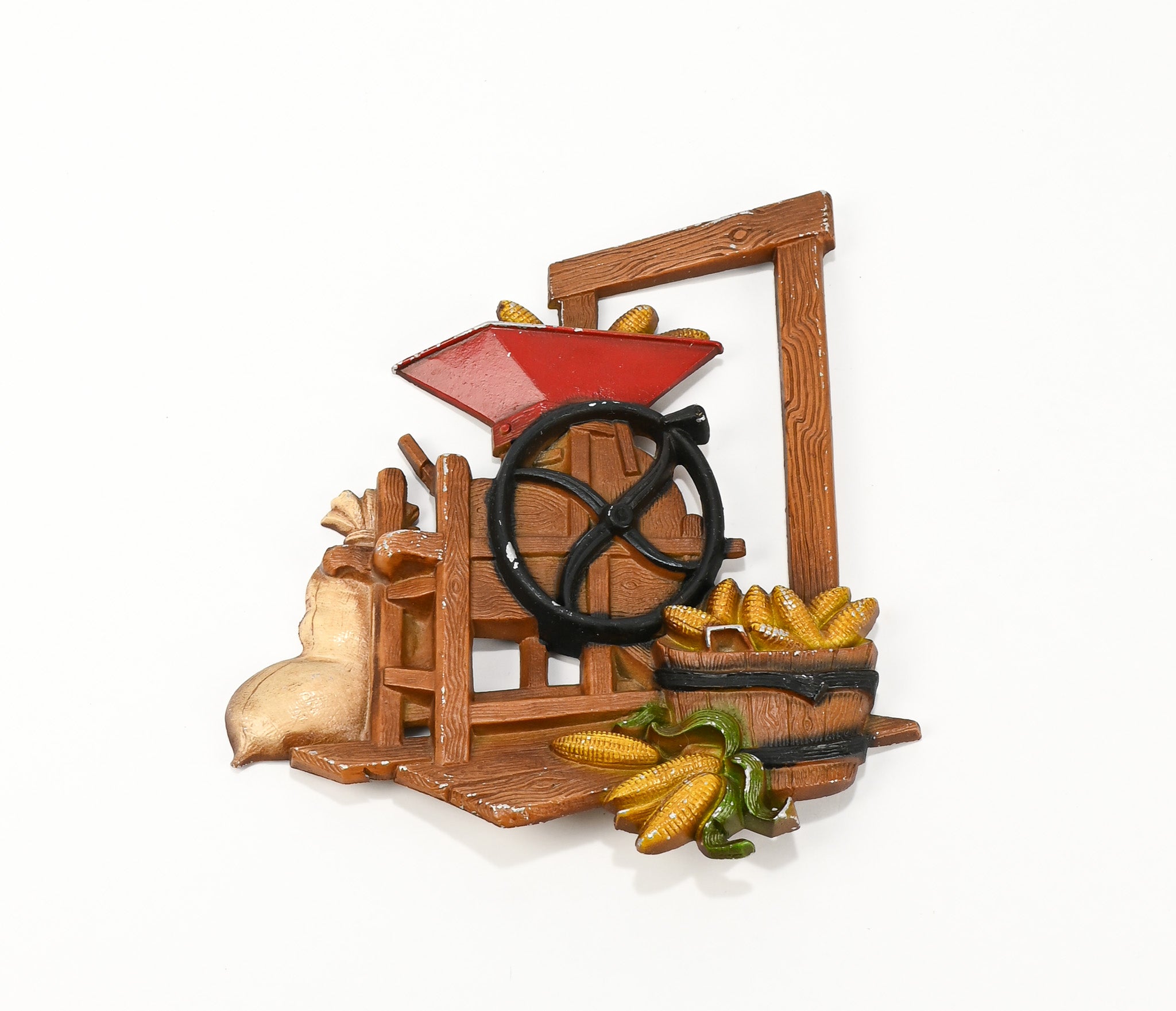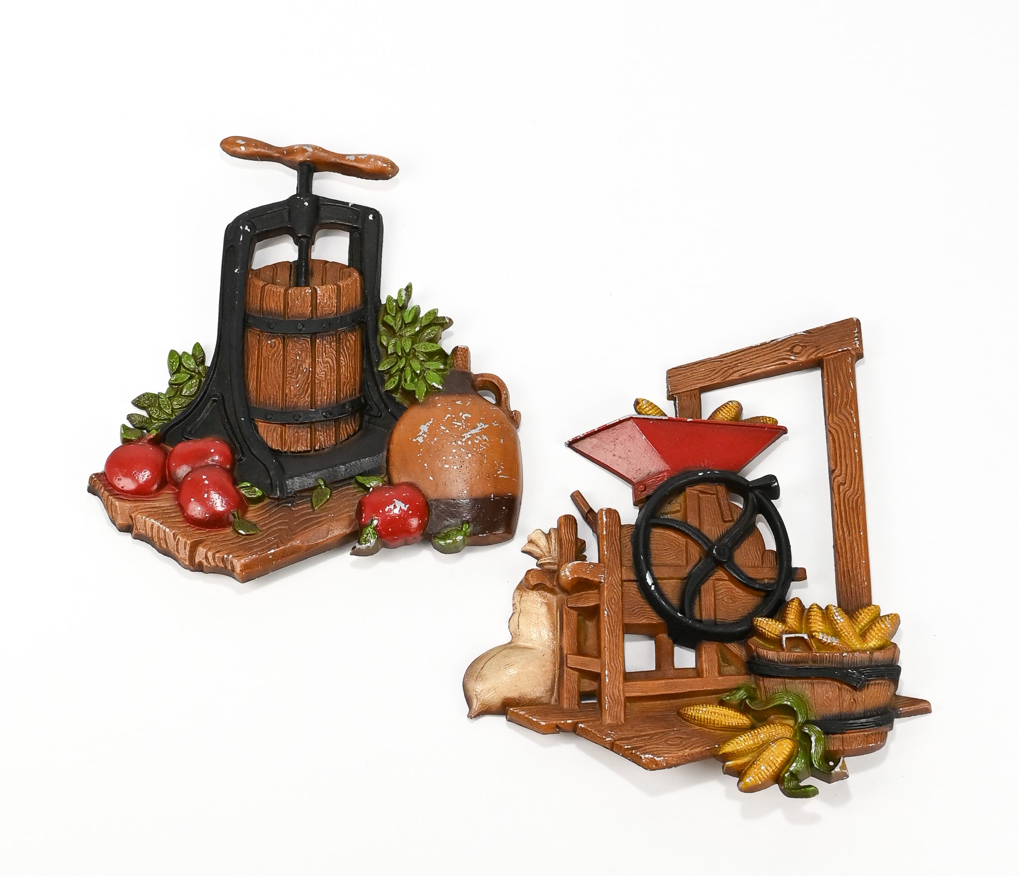 SET OF 2 - Vintage 1978 Metal HOMCO Apple Press and Corn Husker Wall Hangings
