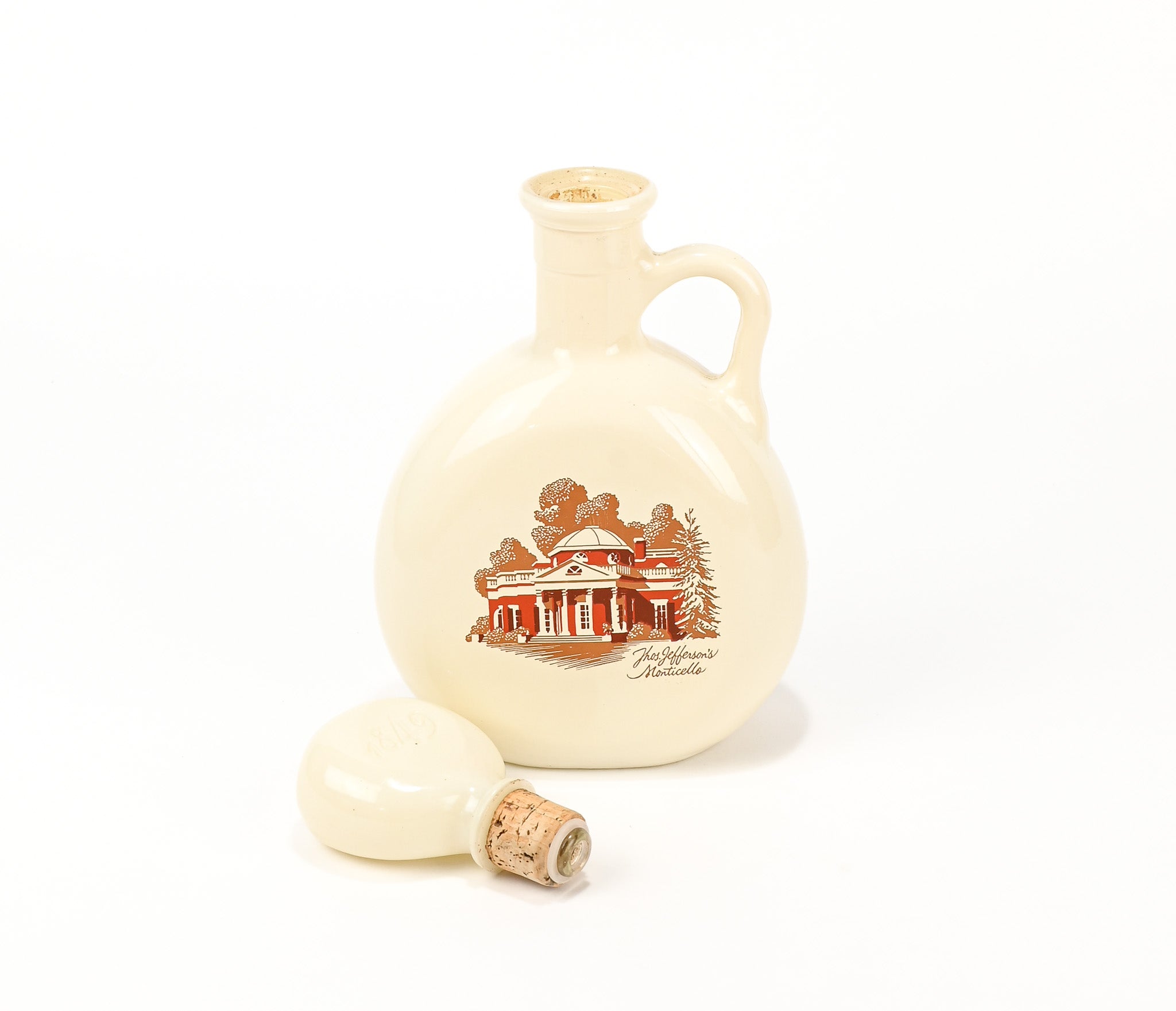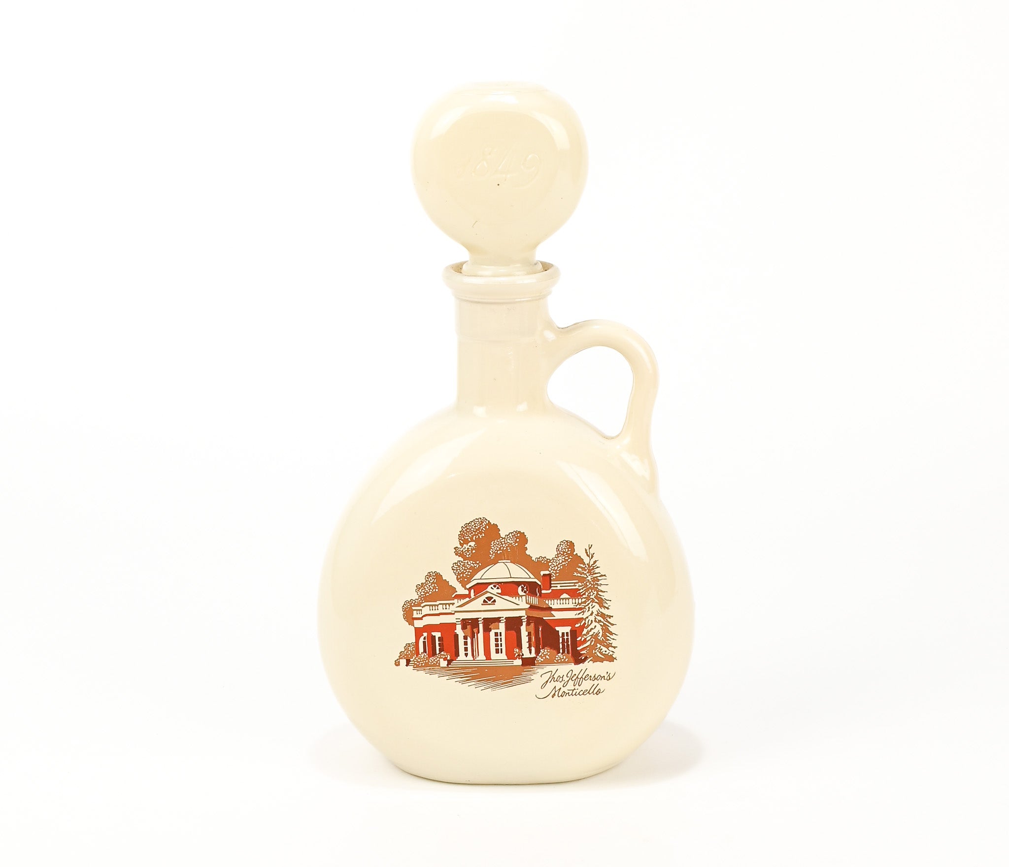 Vintage 1968 Ivory Ceramic OLD FITZGERALD 1849 Thomas Jefferson's Monticello Flagship Decanter Bottle