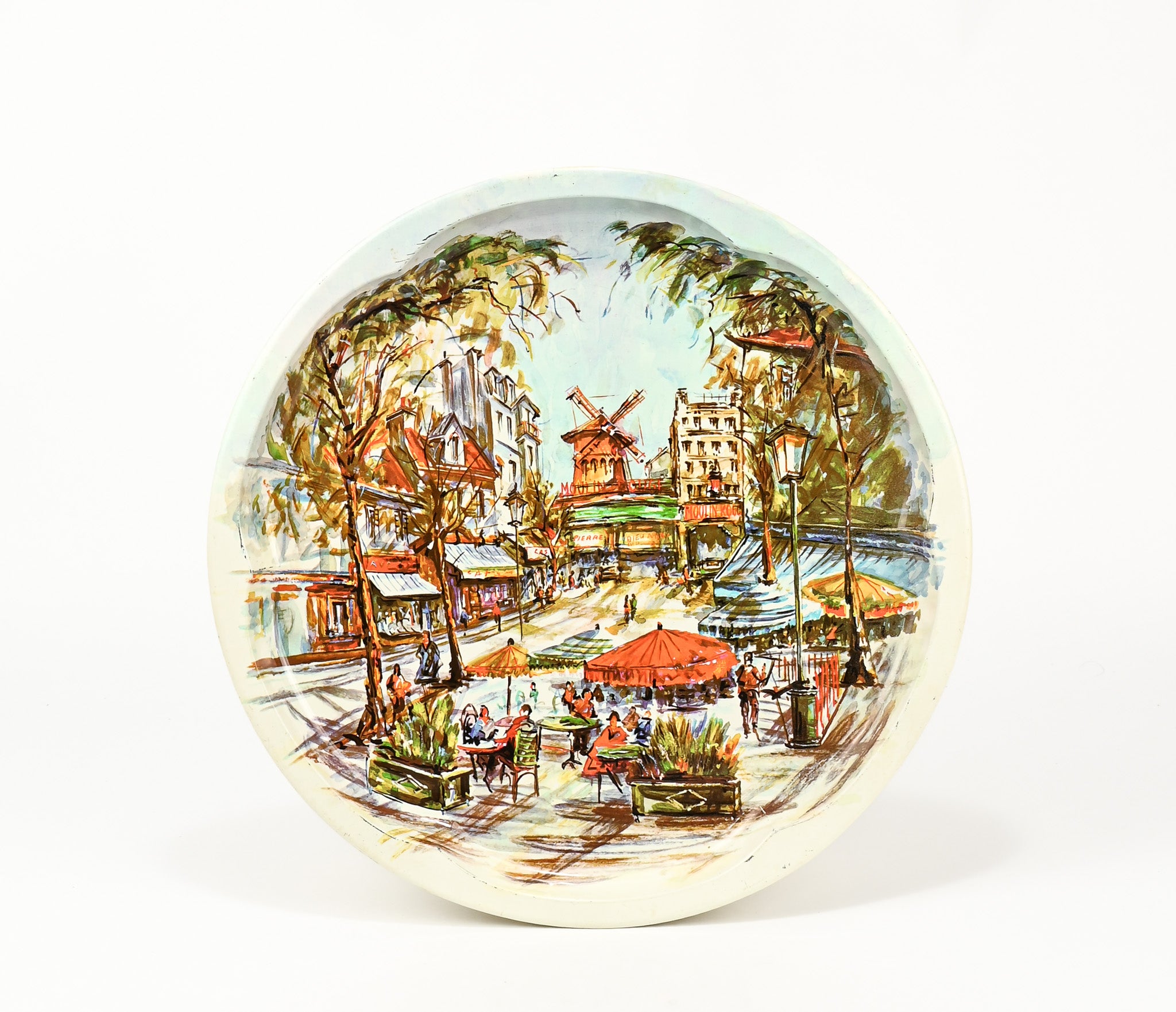 Vintage 70s DAHER DECORATED WARE Moulin Rouge Paris Street Scene Tin Tray