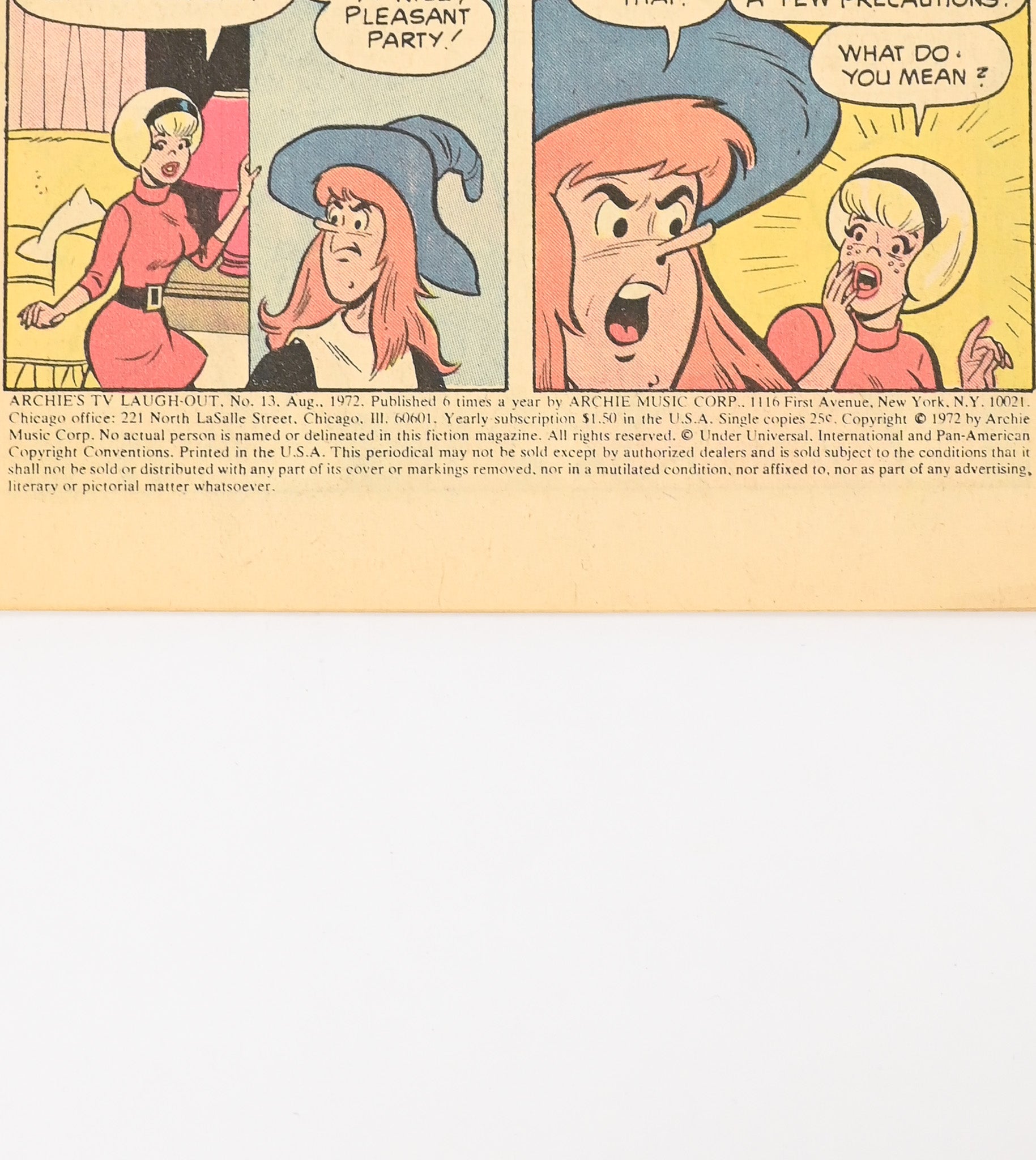 This is an Aug. 1972 Edition of ARCHIE'S TV LAUGH-OUT #13 Comic Magazine