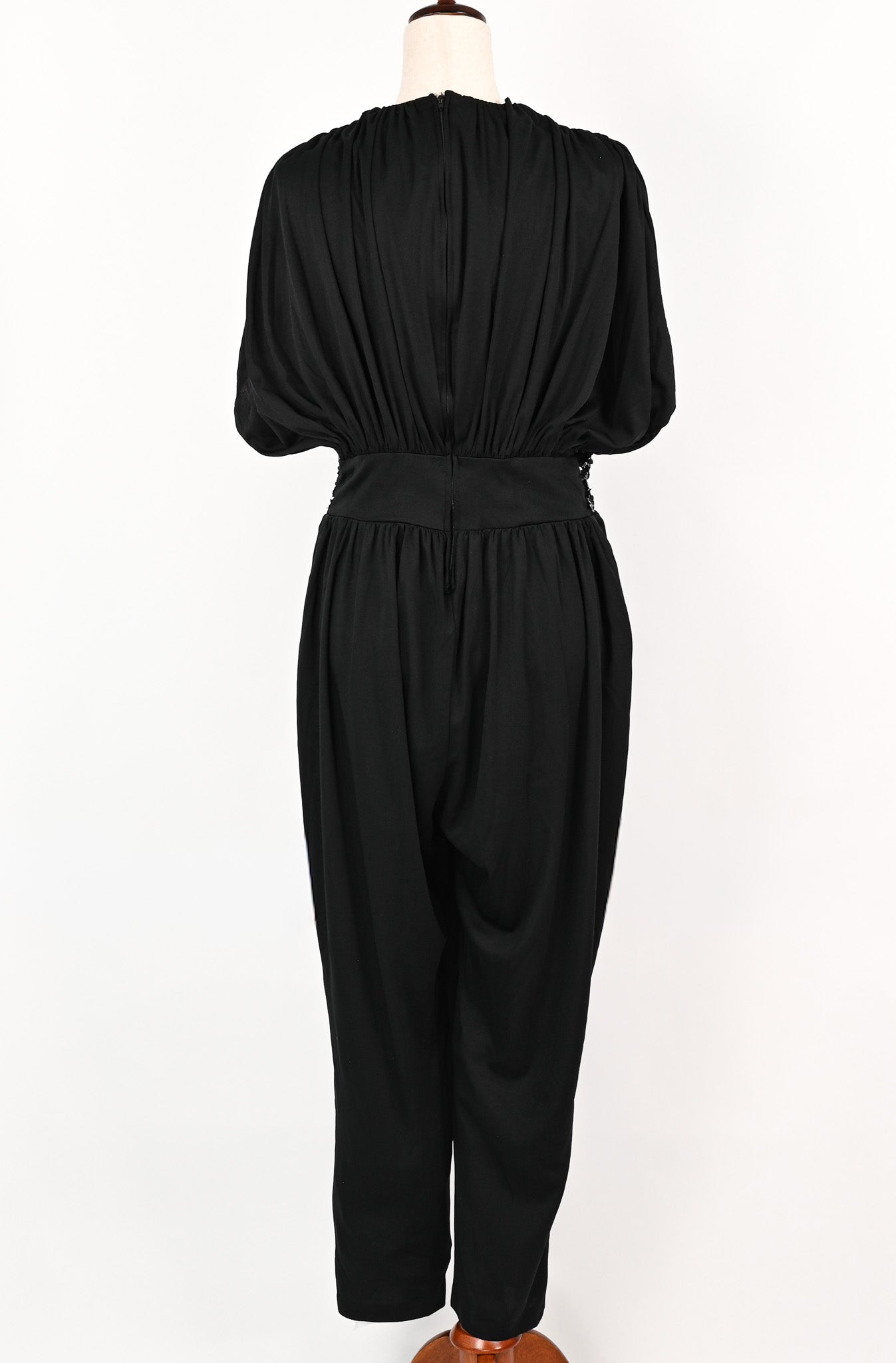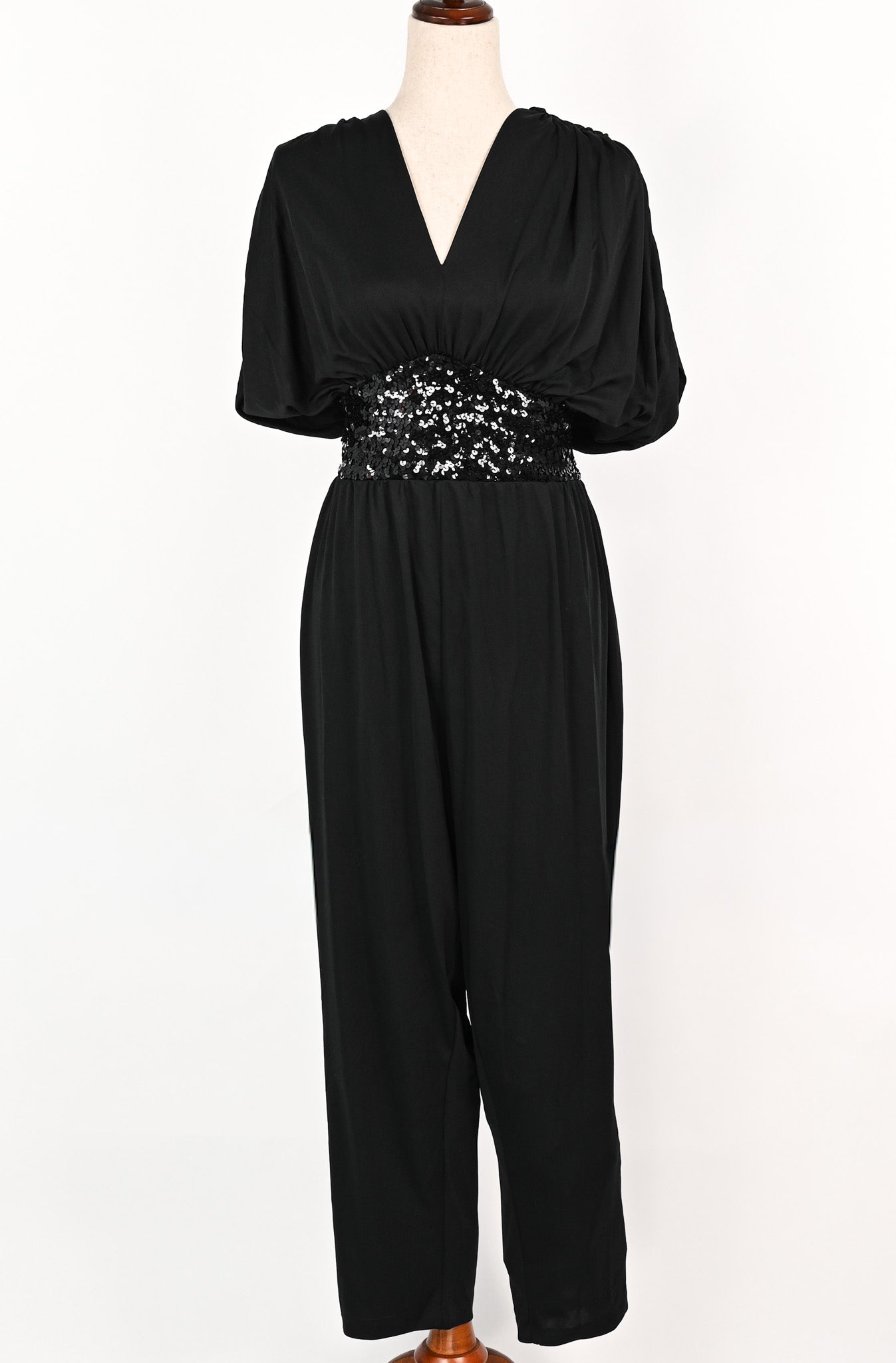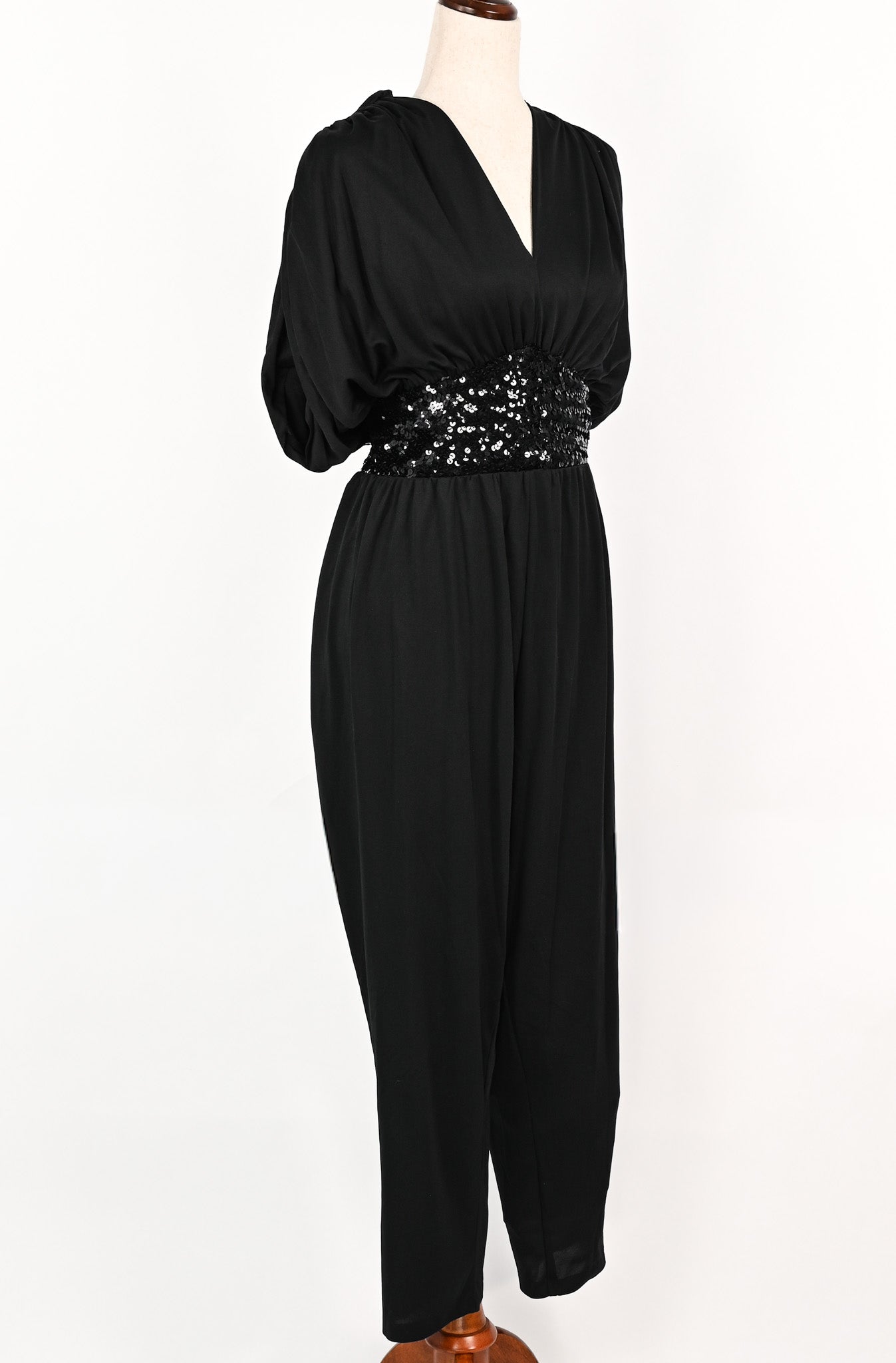 Vintage 80s Black MS. CLASSIC Sequin Ruched Tapered Pant Jumpsuit - 8