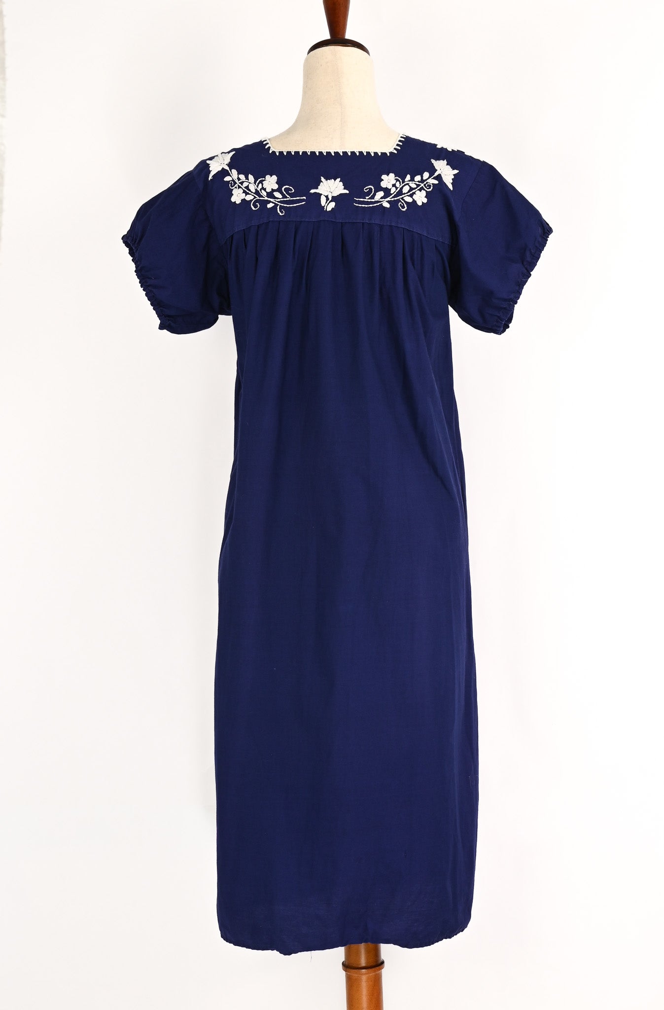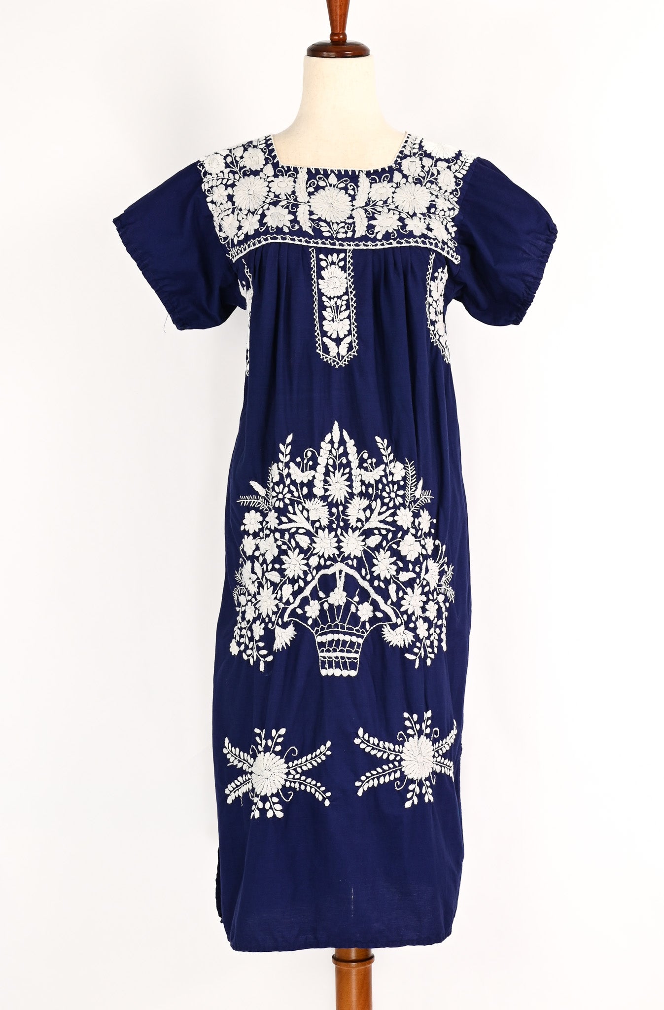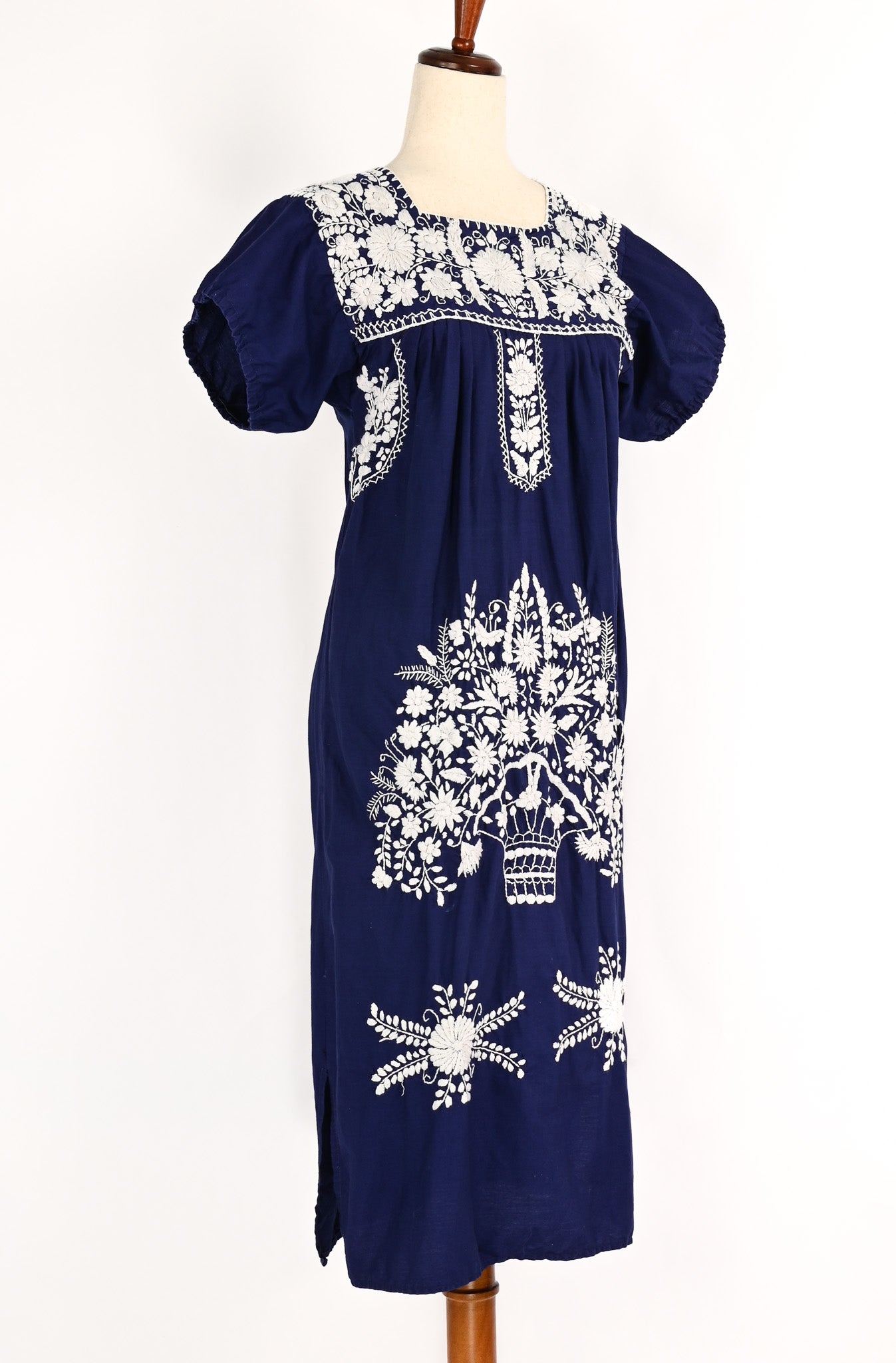 Vintage 50s/60s Dark Blue & White Embroidered Mexican Oaxacan Dress