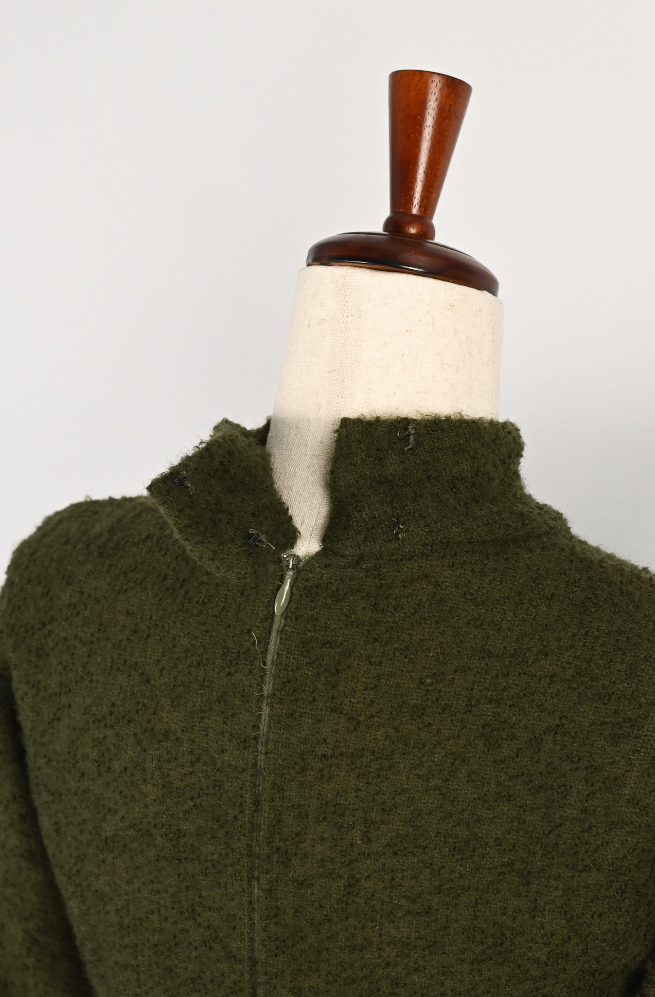 Vintage 60s/70s Dark Olive Green UNBRANDED Heavy Bouclé Wool Long Sleeve Dress - Don't worry, you'll definitely stay warm in this dress.