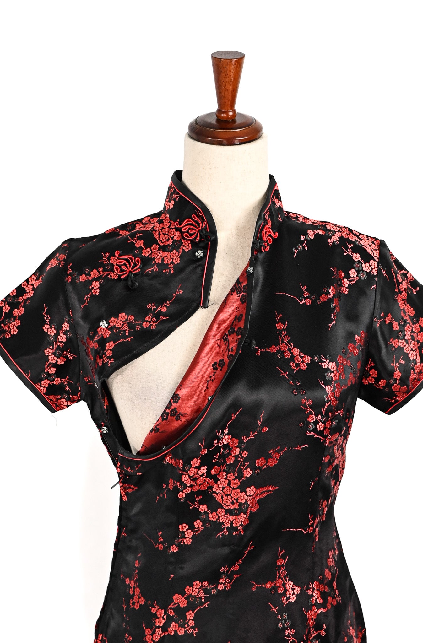Black & Red Floral Cheongsam SI MEI JIN Qipao Chinese Dress - M