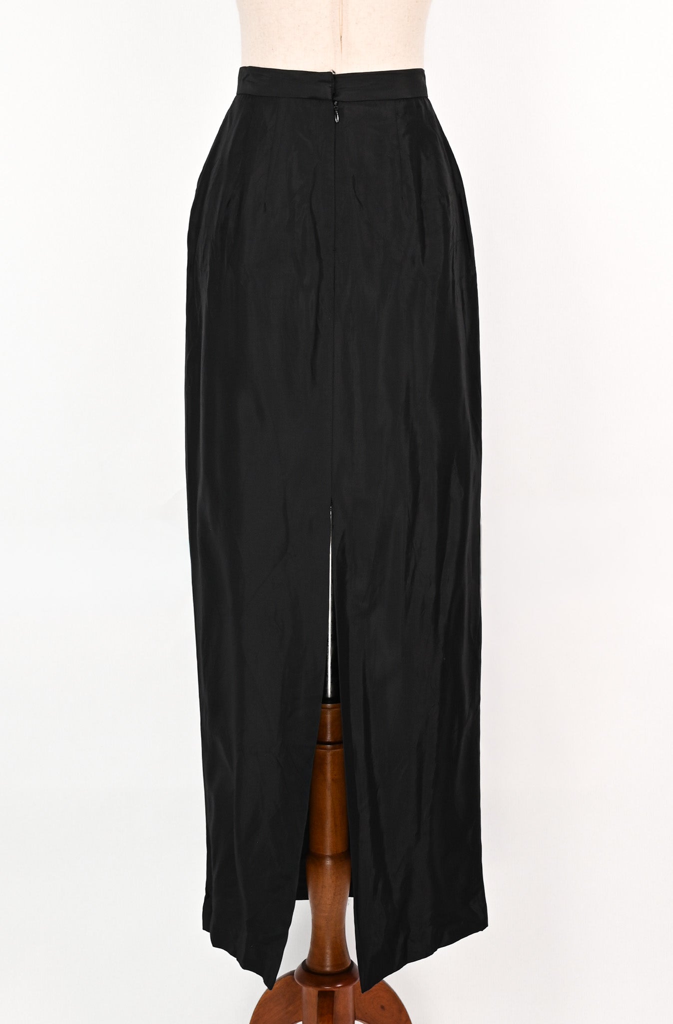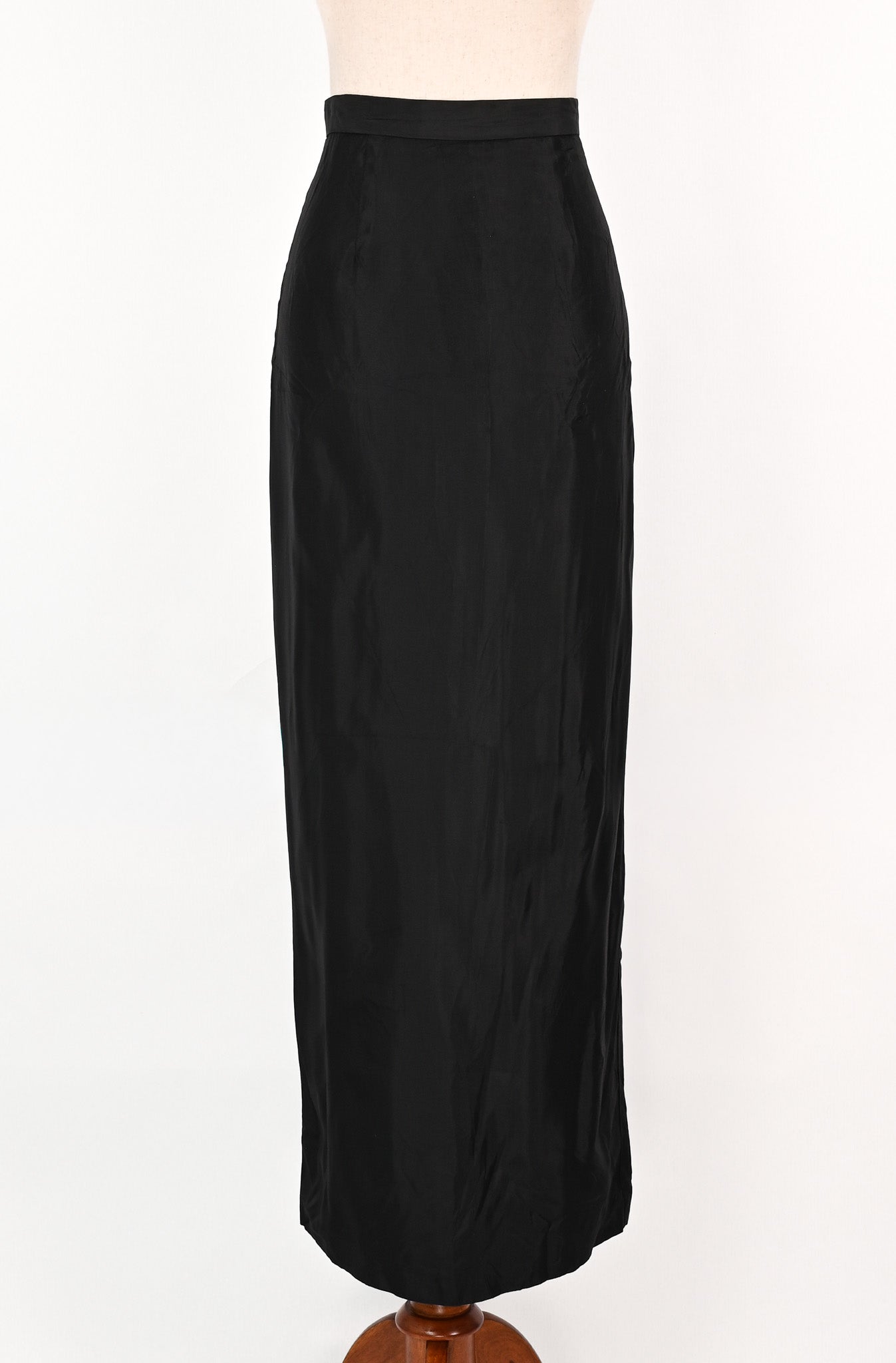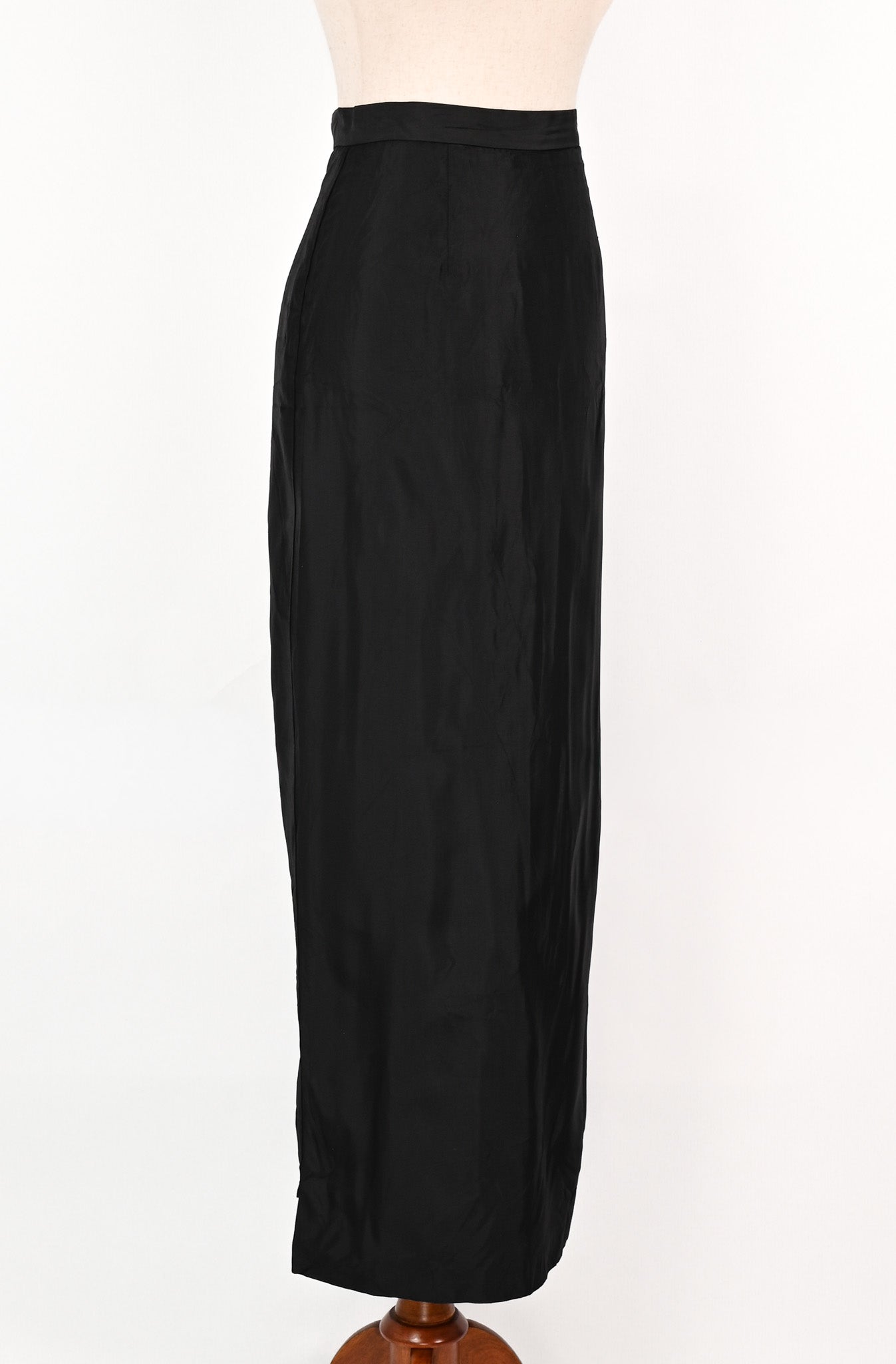 Vintage 90s Black Acetate MICHAELANGELO High Waisted Maxi Skirt - 6