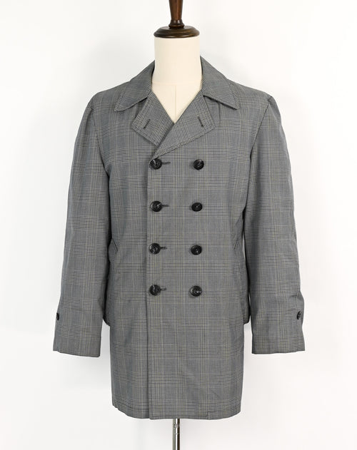 Vintage 60s Blue Grey Plaid TOWNCRAFT PLUS Trench Coat - 40