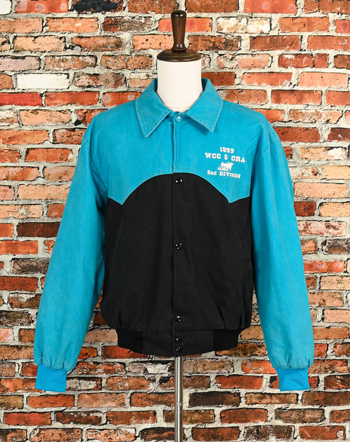 Vintage 90s Blue & Black WEST ARK Polyester Snap Button Bomber Jacket - XL