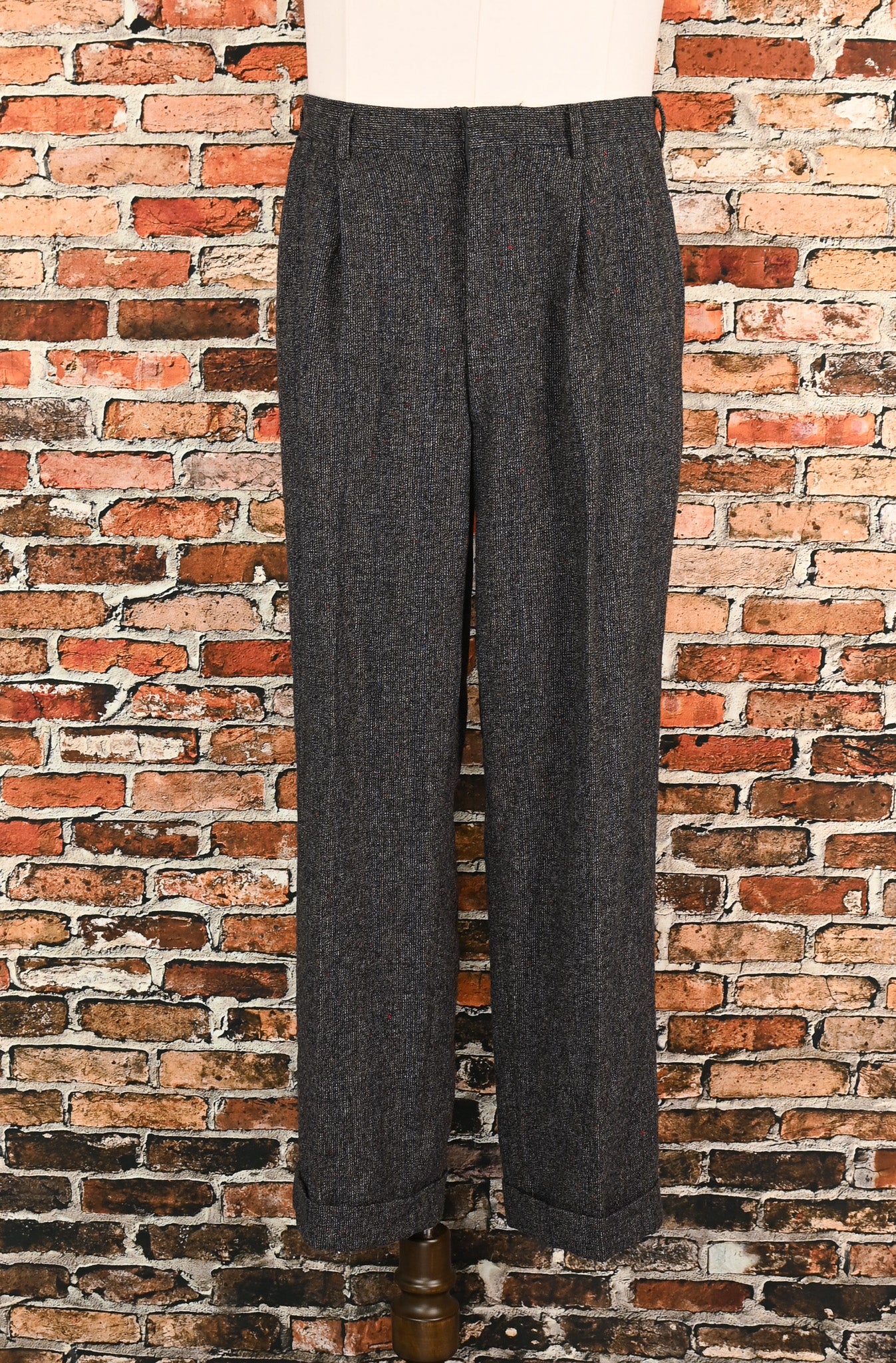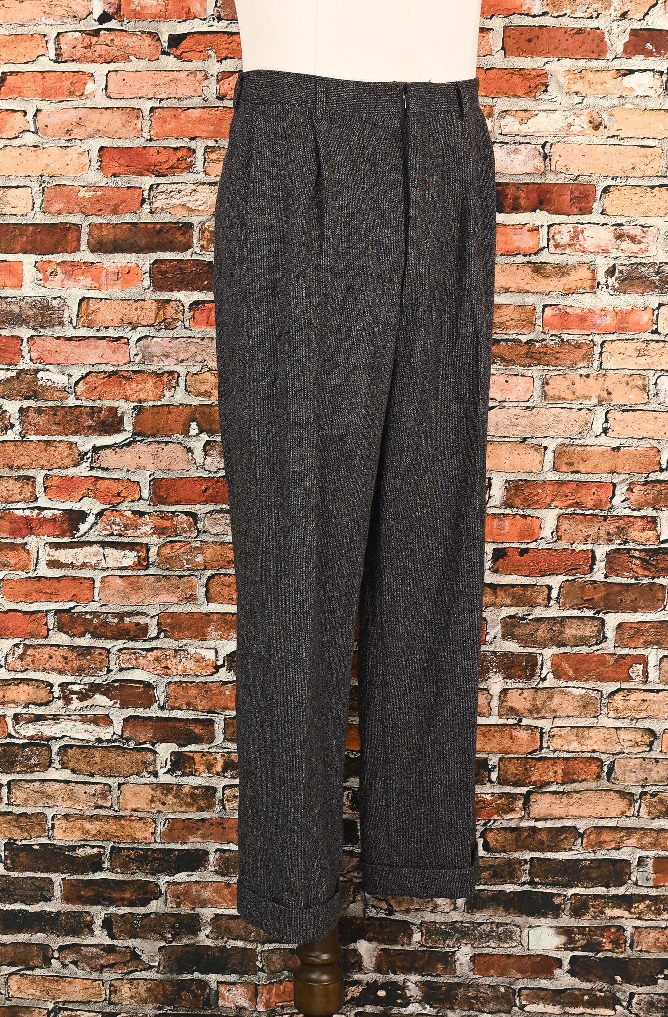 Vintage 50s/60s Grey Tweed Wool Pleated Cuffed Dress Pants