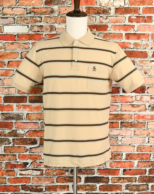Vintage Brown Striped ORIGINAL PENGUIN Short Sleeve Polo - Large