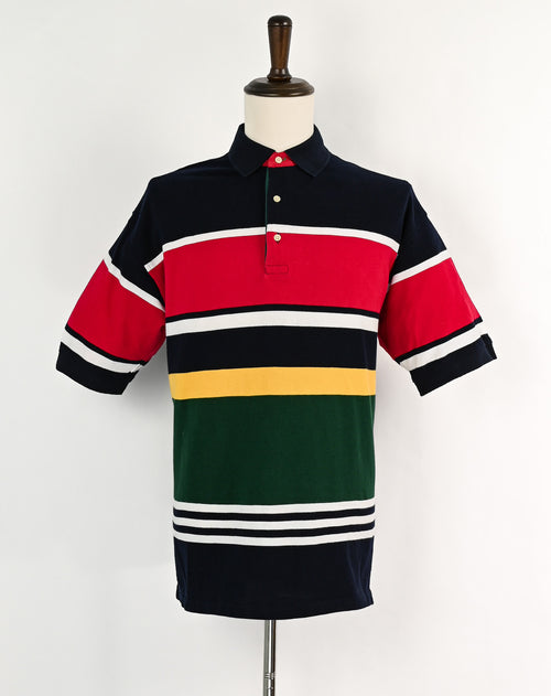 Vintage 90s Red & Blue Striped BASIC OPTIONS Short Sleeve Polo - L