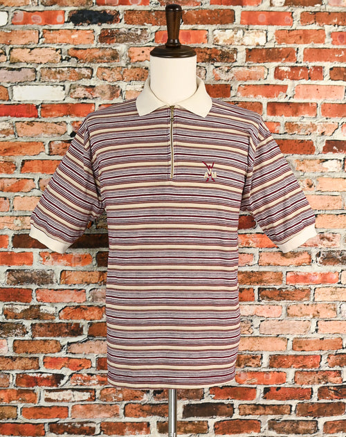Vintage 90s Burgundy & Grey Striped VENTURE COLLECTION Short Sleeve Zip Polo