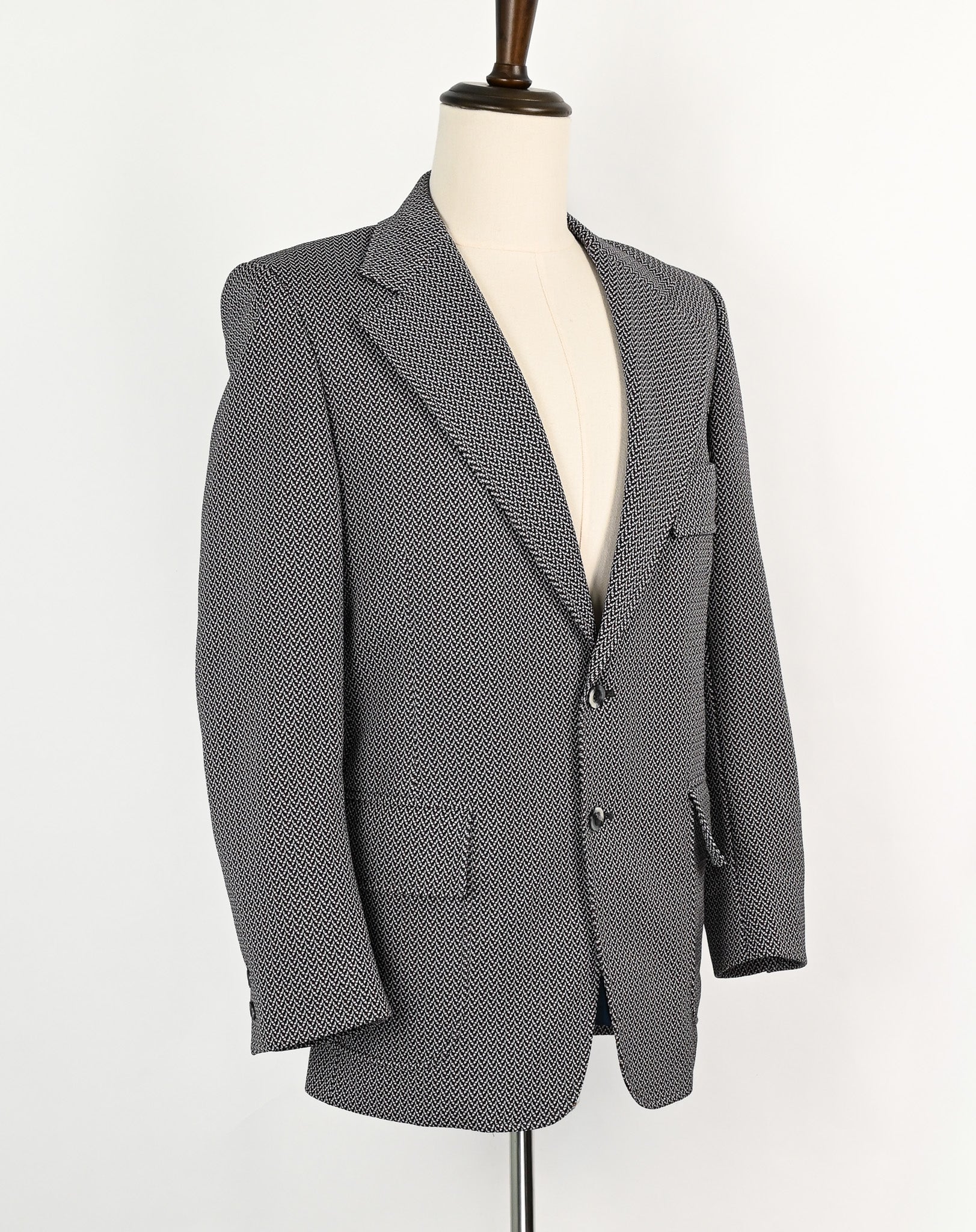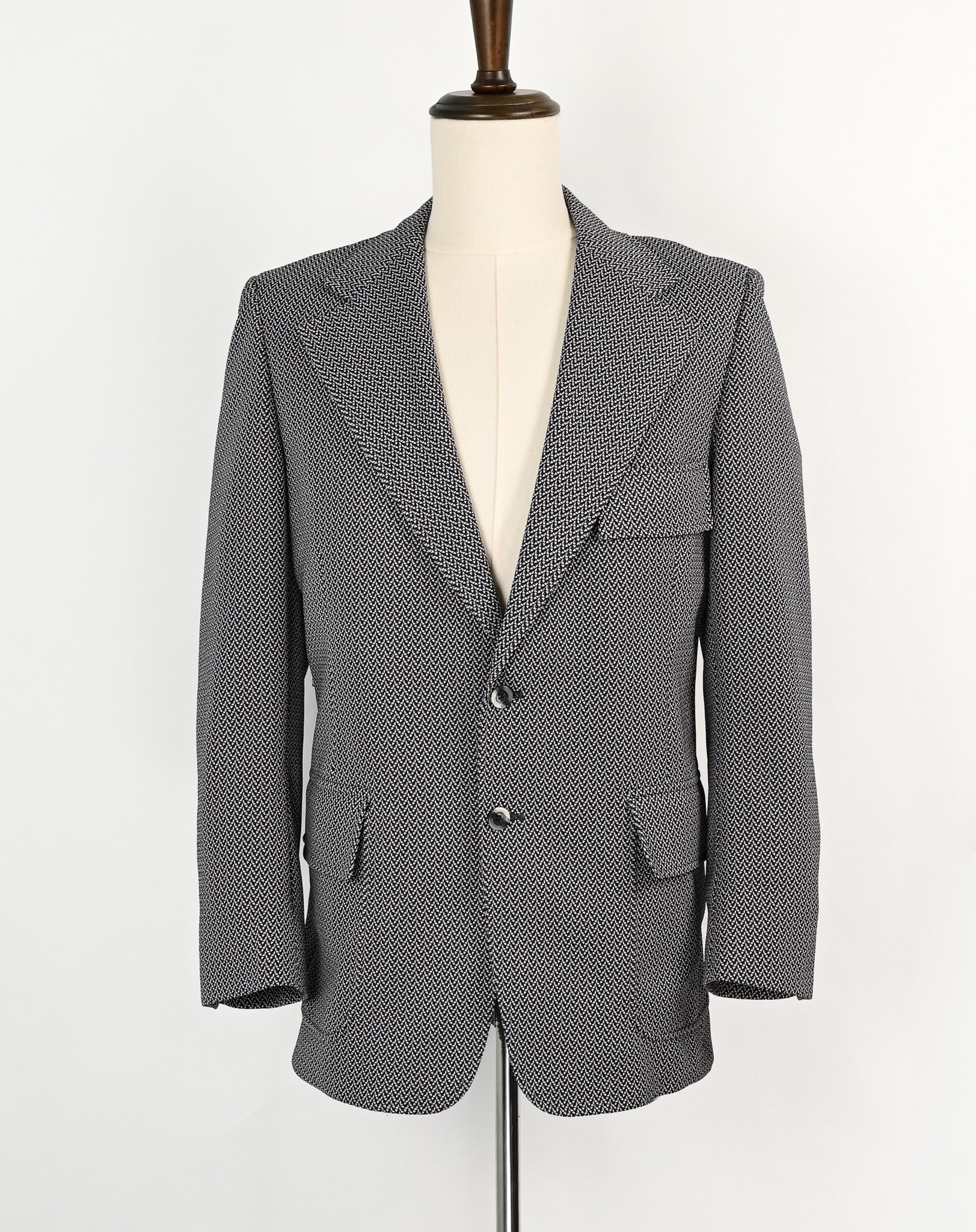 Vintage 70s Black & White Herringbone CURLEE Polyester Sports Coat