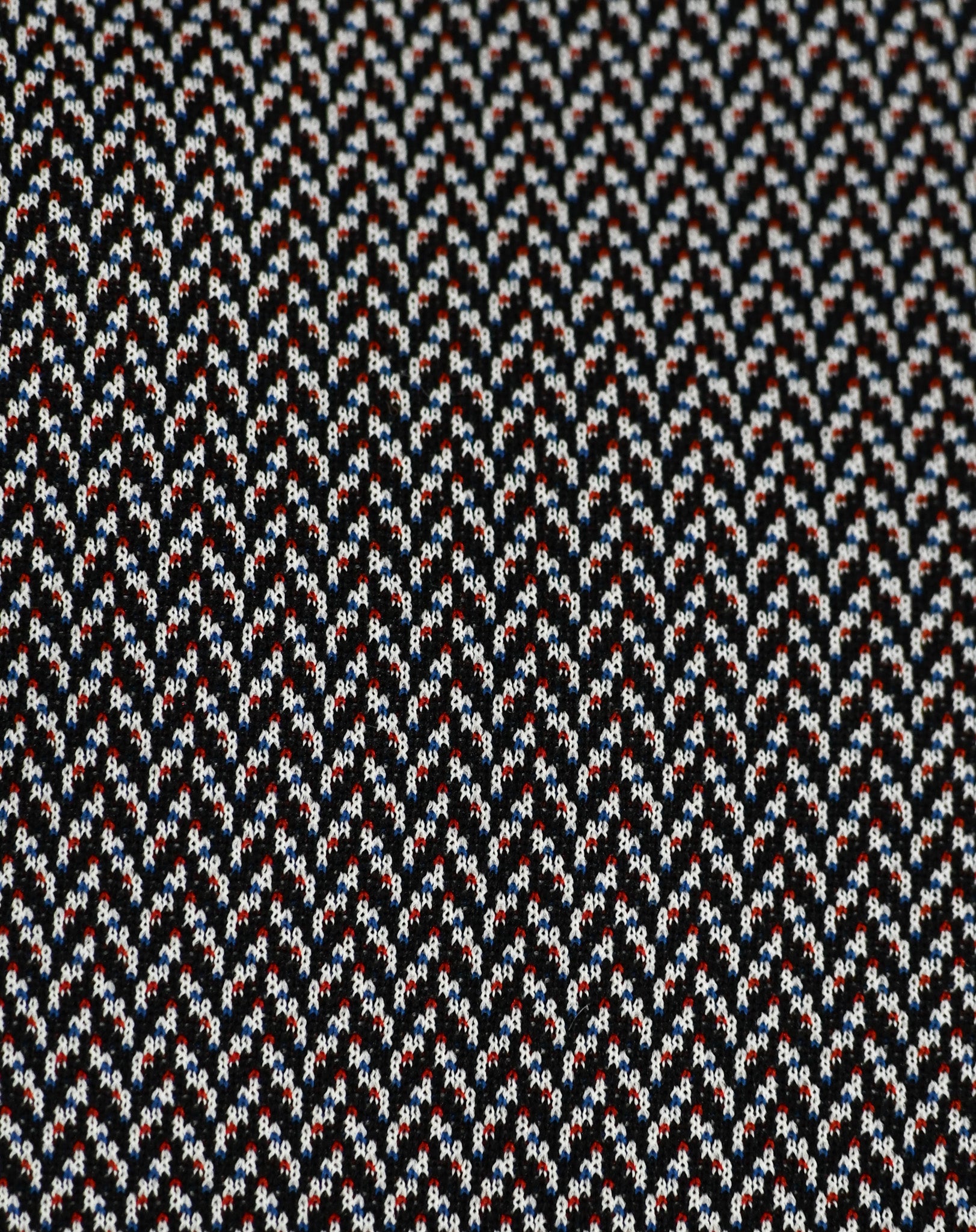 Vintage 70s Black & White Herringbone CURLEE Polyester Sports Coat Blazer - This sports coat features a black and white herringbone weave with red and blue accent colors.