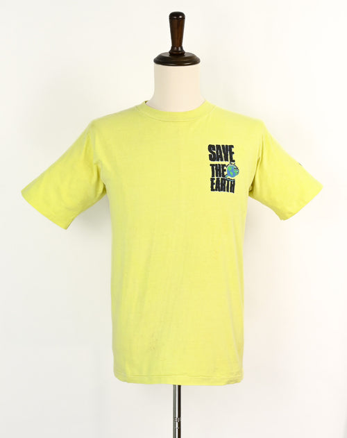 Rare Vintage 1989 SAVE THE EARTH Neon Green Short Sleeve T-Shirt - L