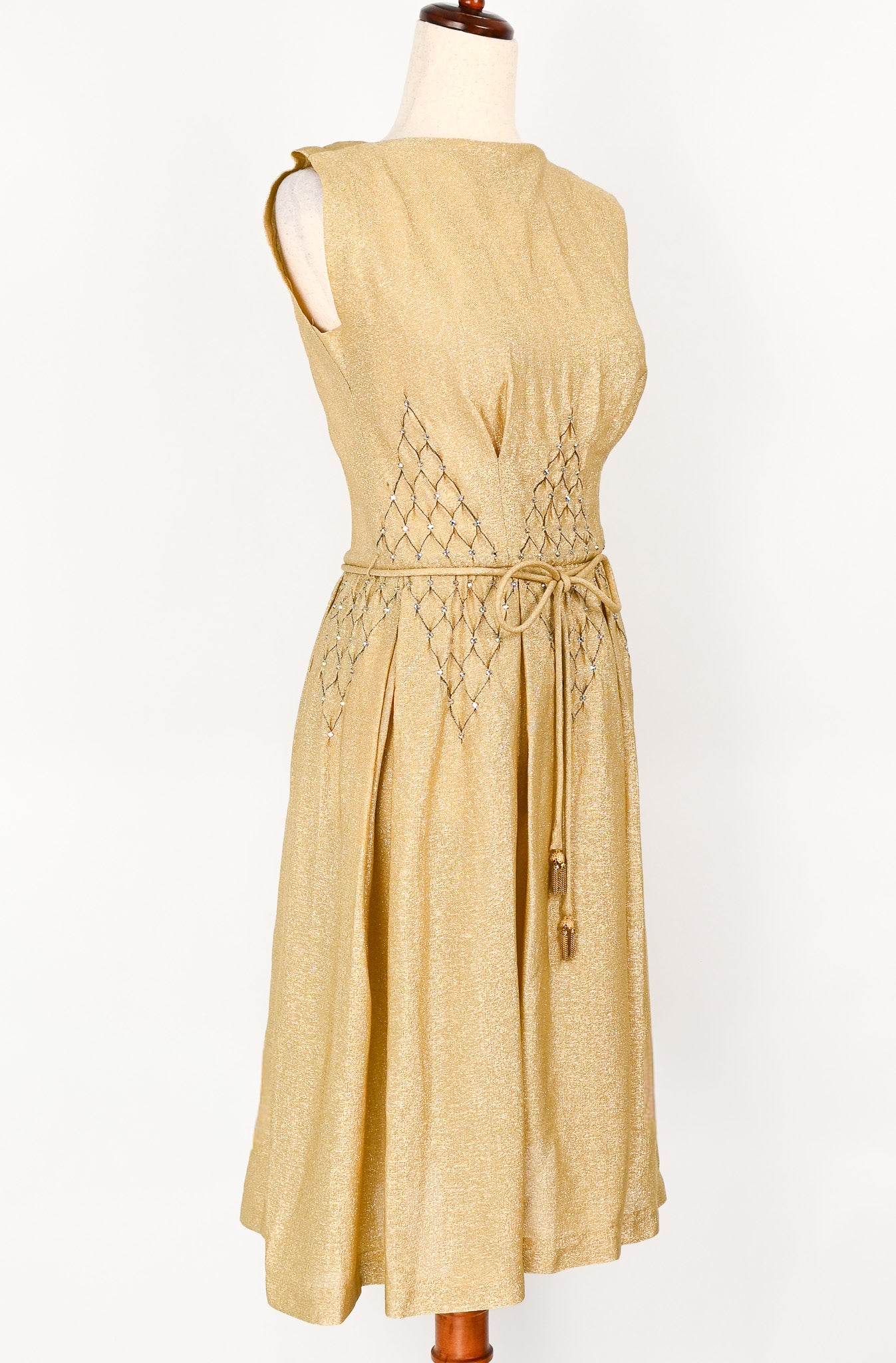 Vintage 60's Gold Lame CARLYE Midi Dress