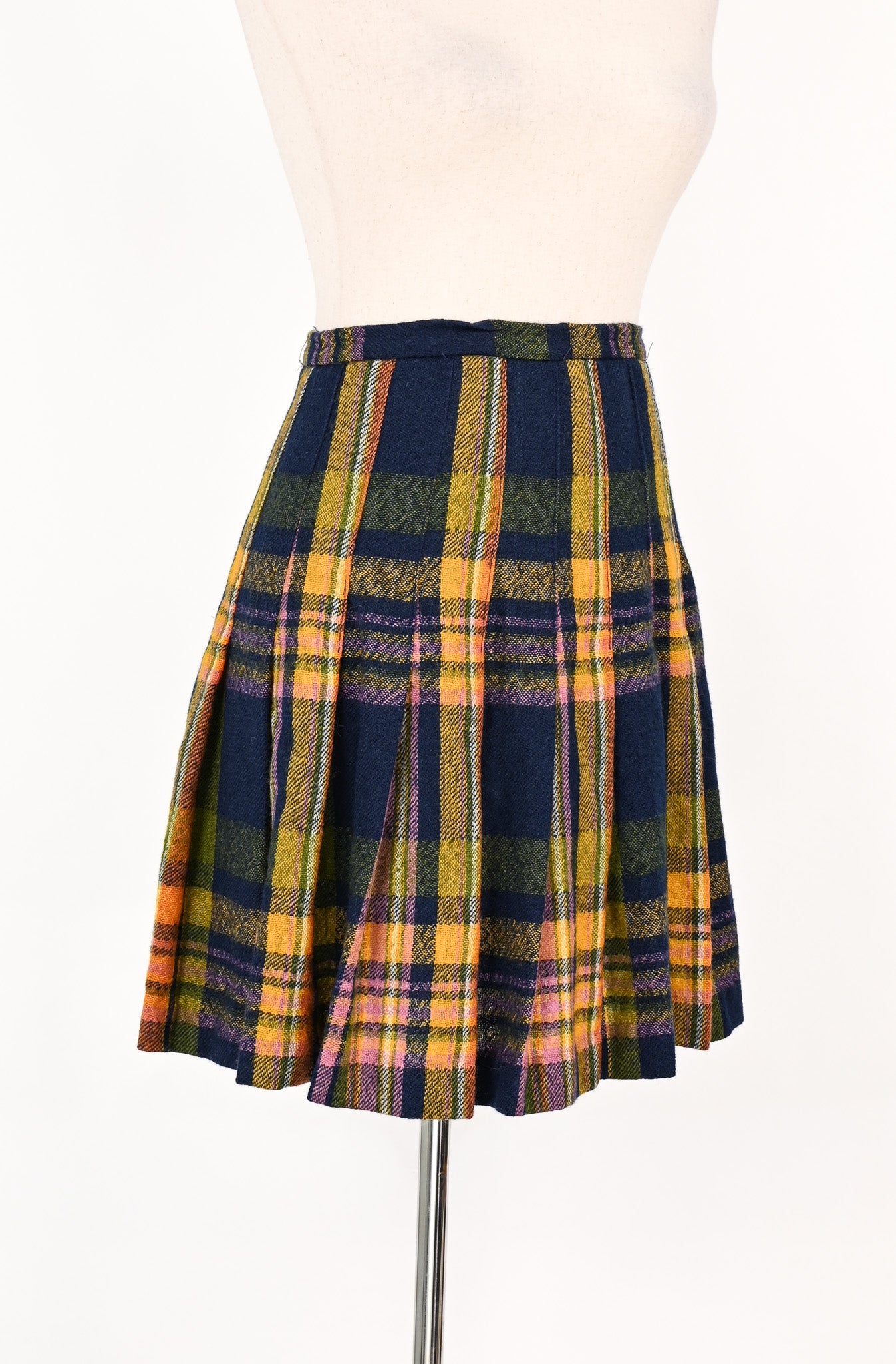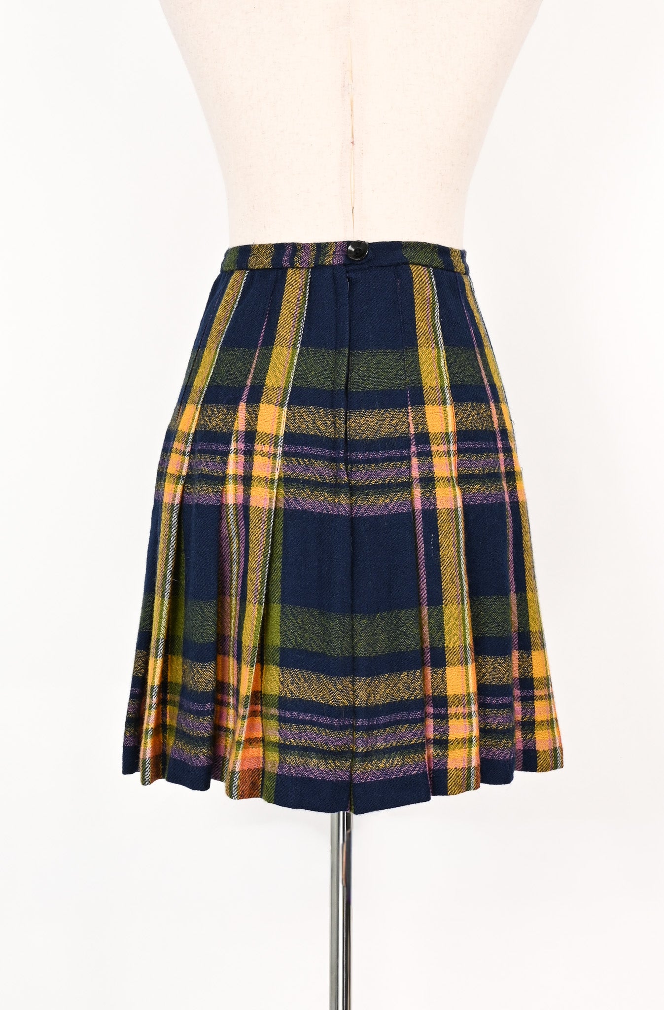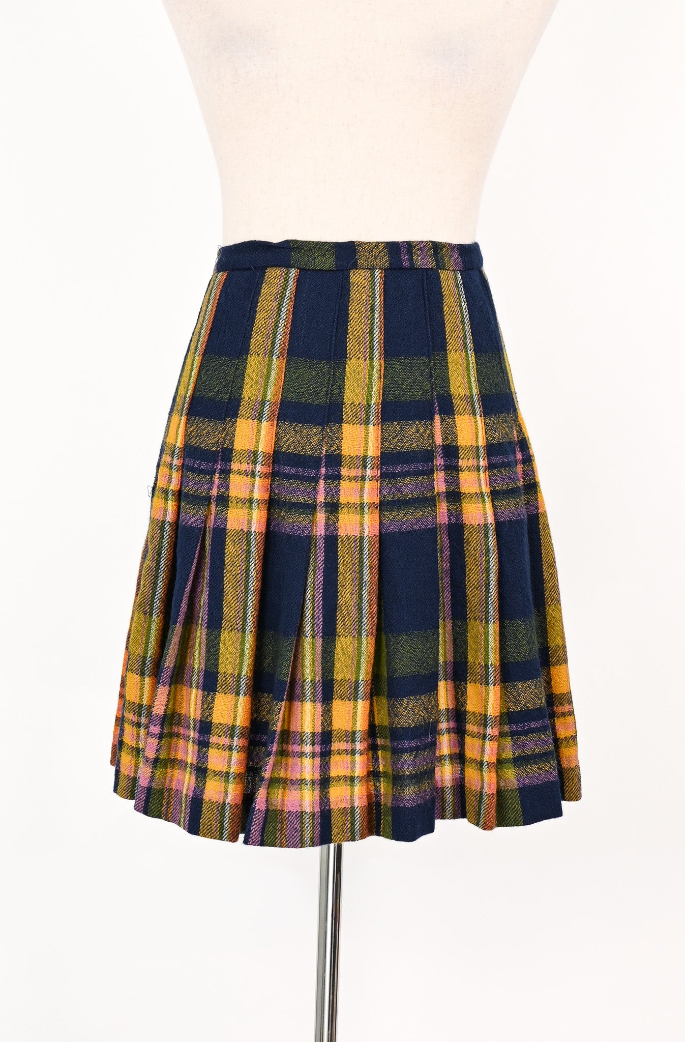 Vintage 70s Blue & Yellow Plaid A TAMI ORIGINAL Wool Pleated Skirt