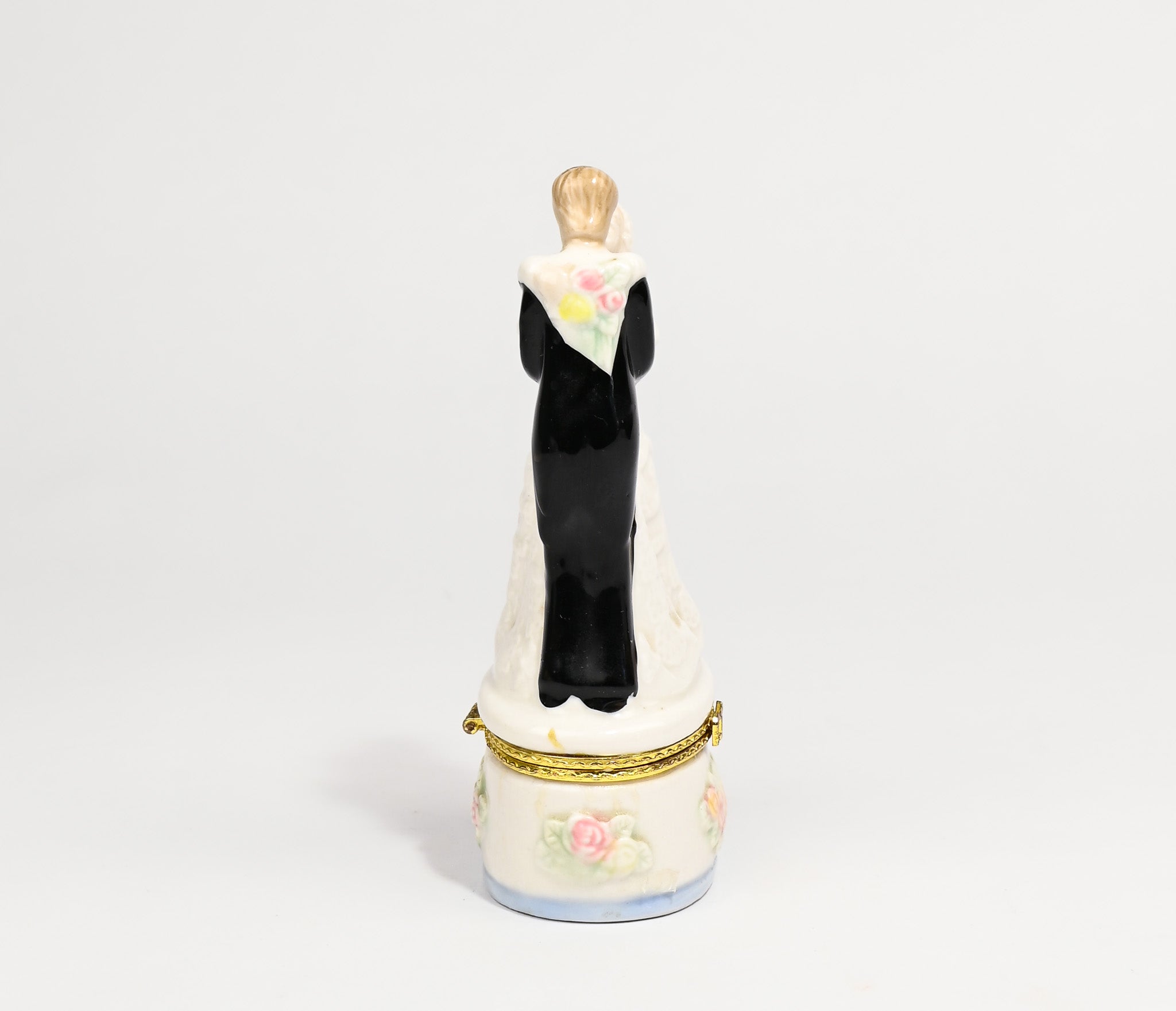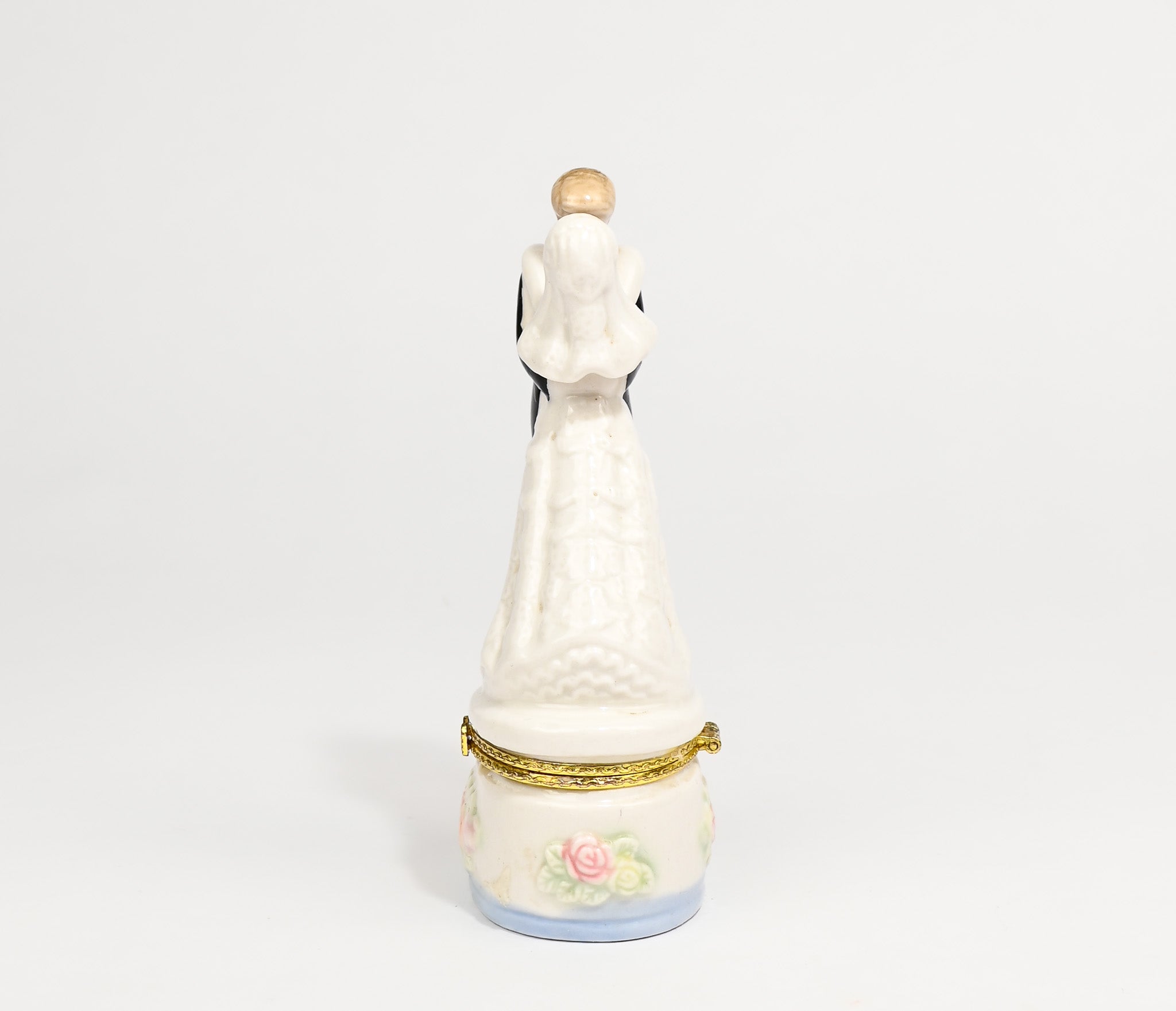 Vintage Bride & Groom Wedding Keepsake Porcelain Trinket Box 5-1/2" Tall