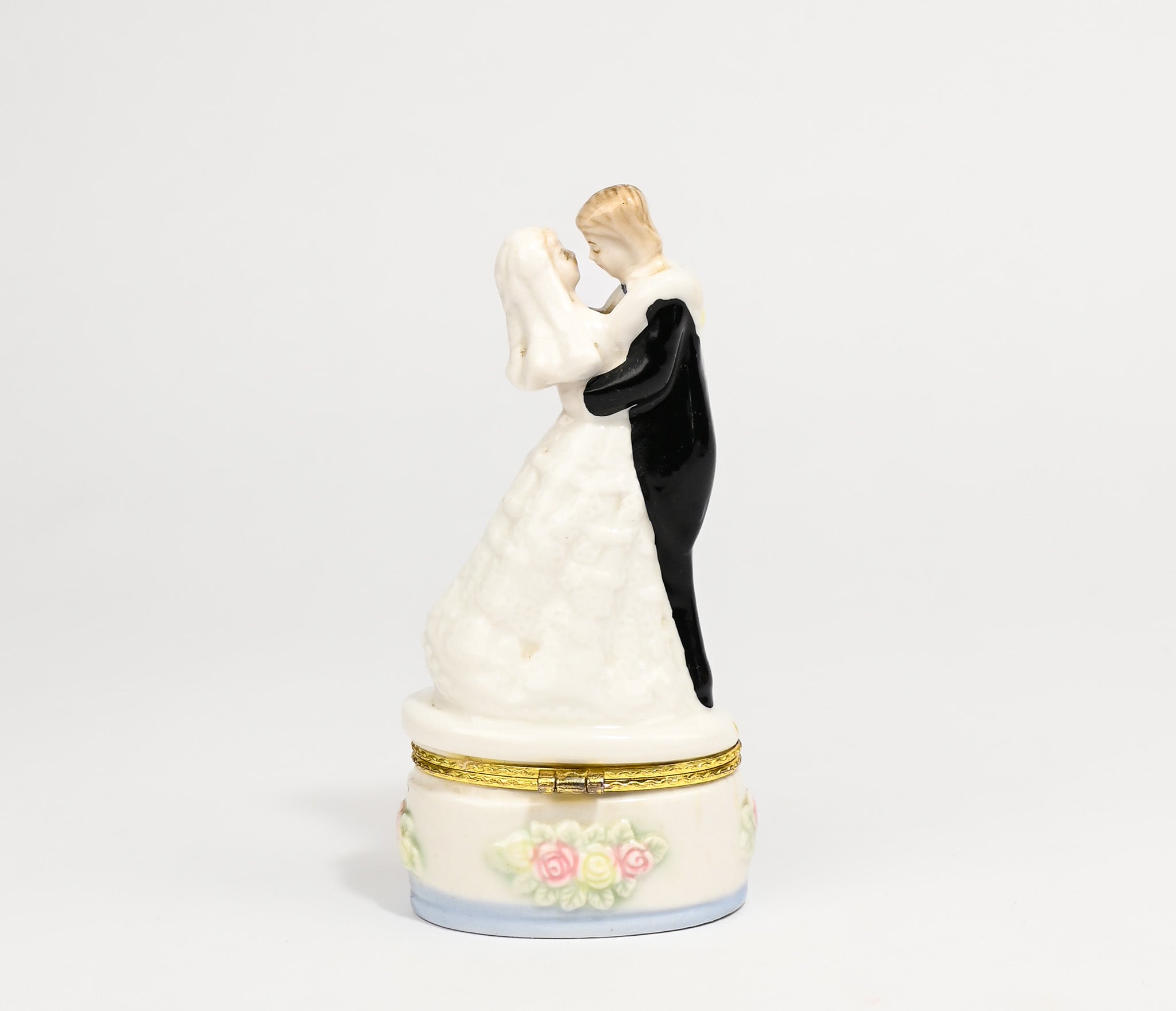 Vintage Bride & Groom Wedding Keepsake Porcelain Trinket Box