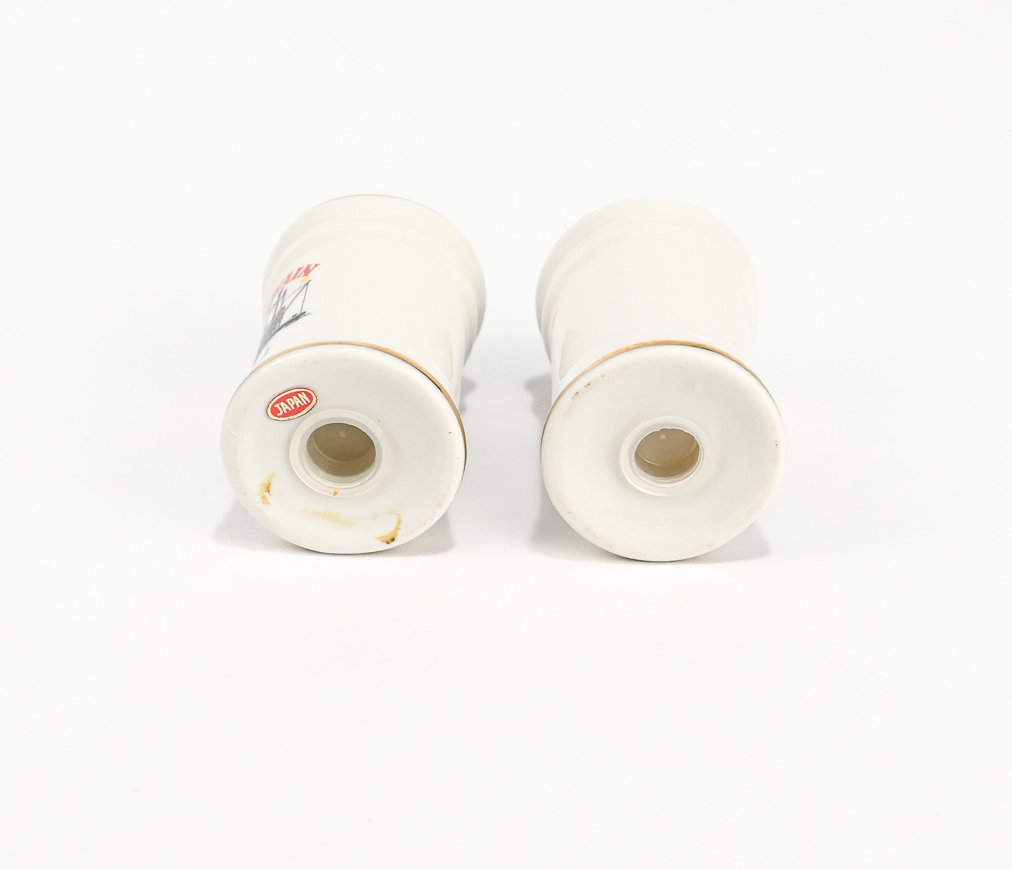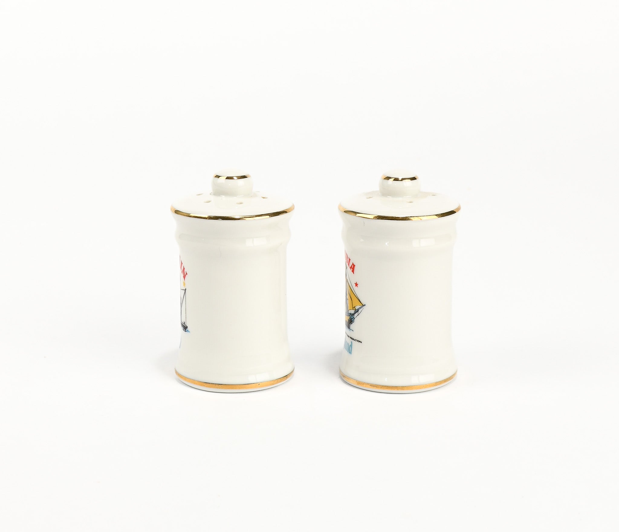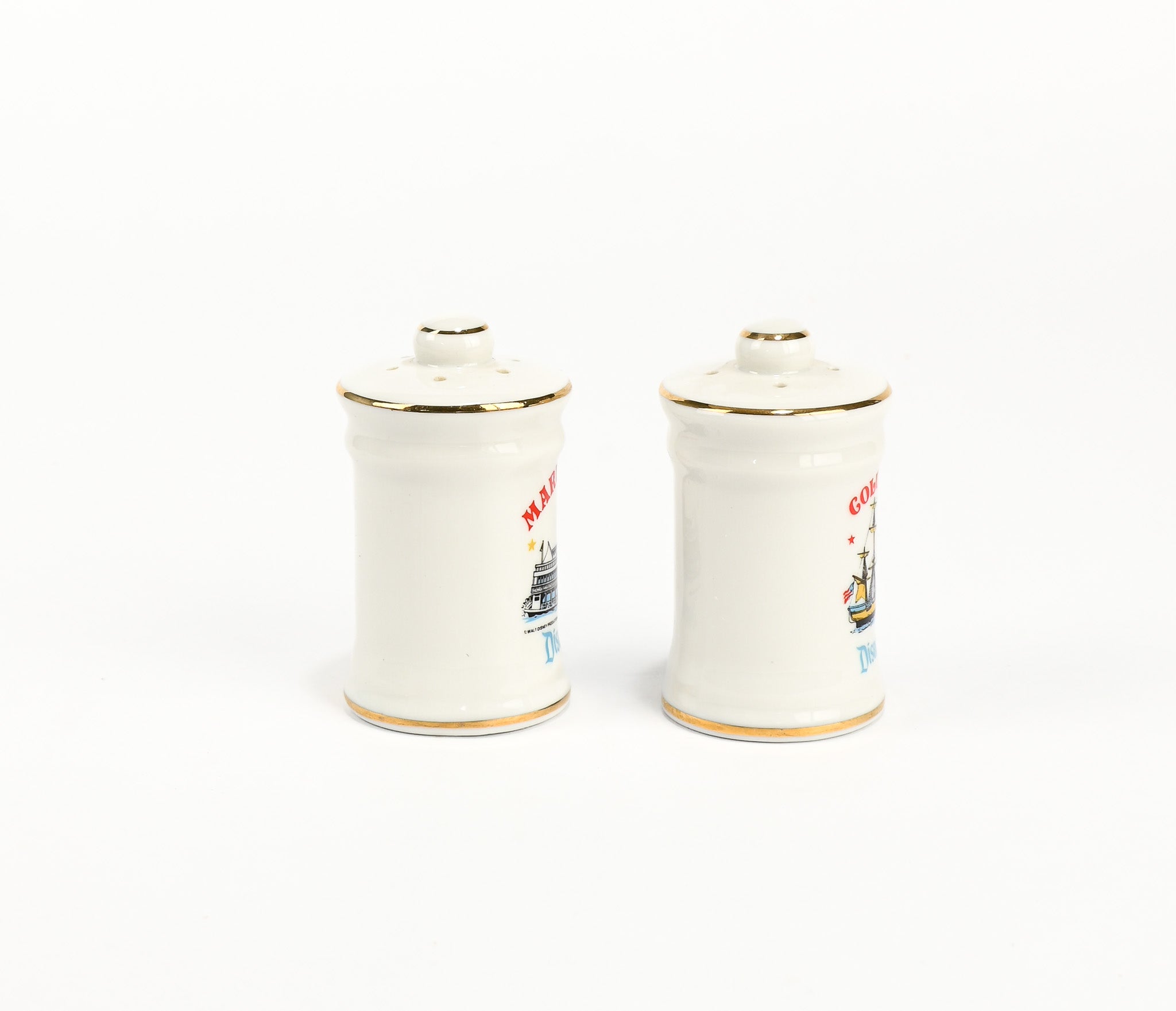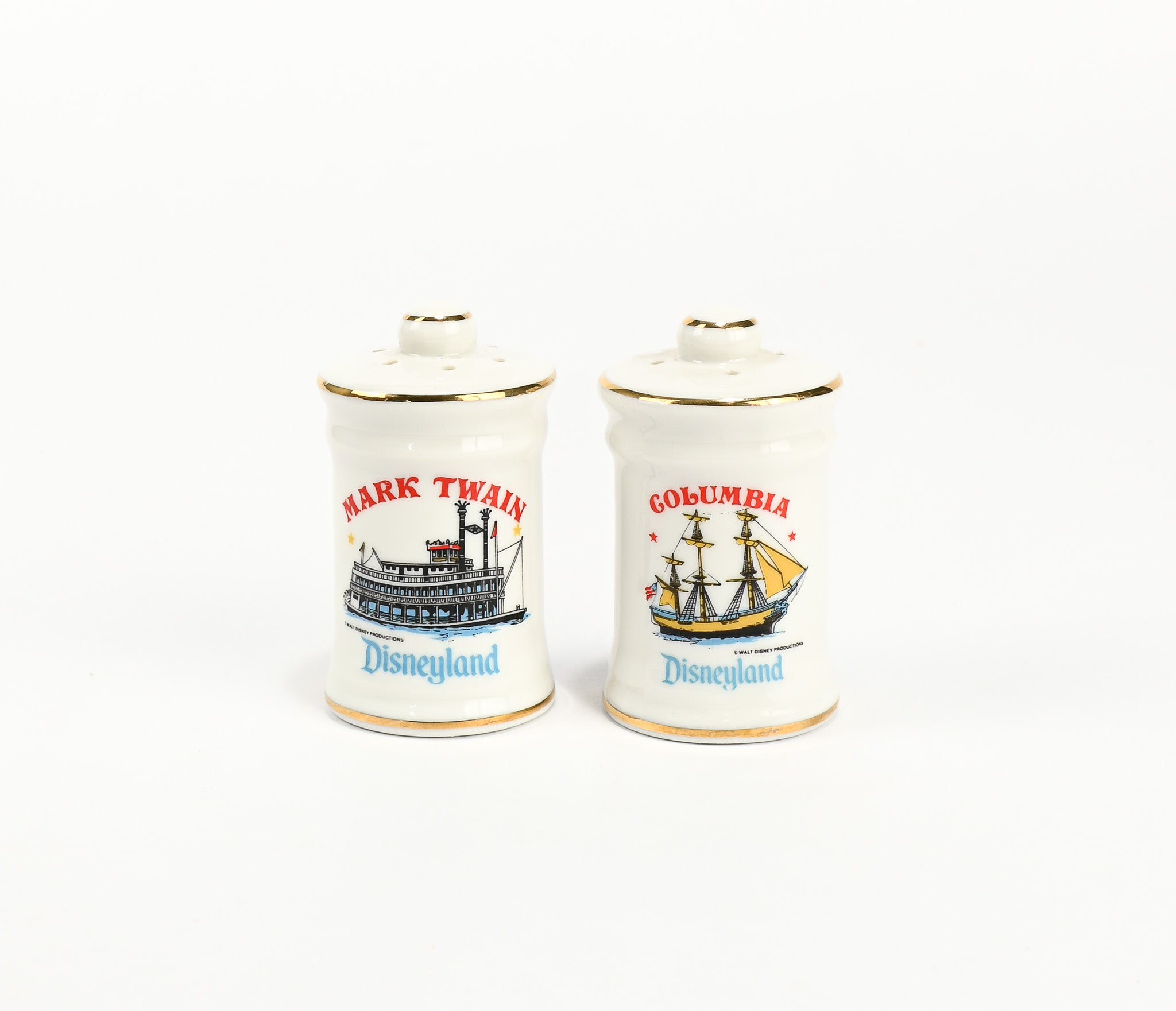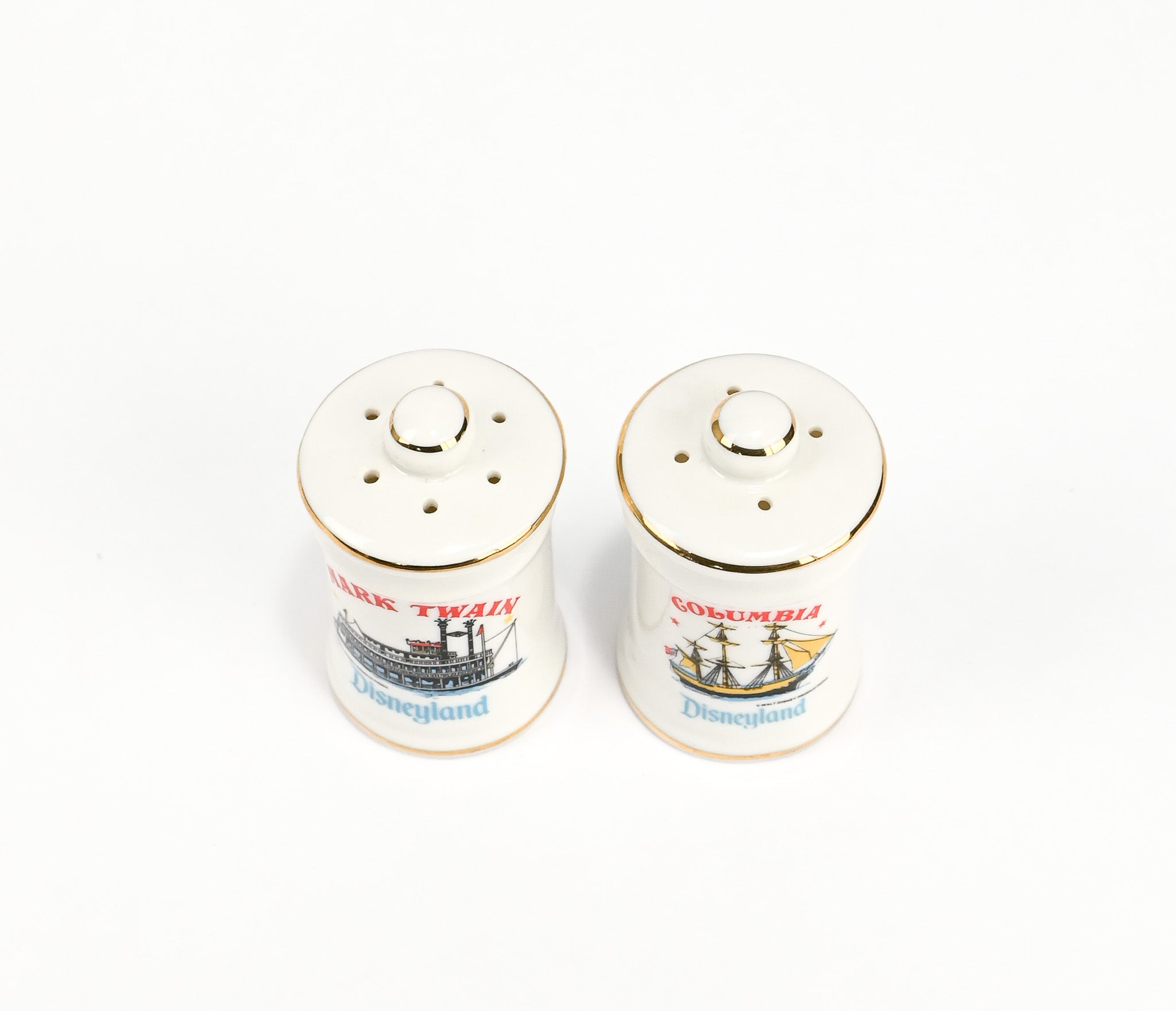 Vintage White Ceramic DISNEYLAND Mark Twain and Columbia Ship Salt & Pepper Shakers Set