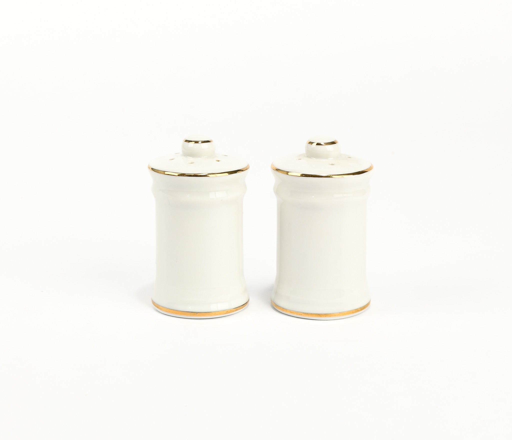 There are signs of wear due to age, use, and storage; such as minor discoloration marks under one of the shakers.
