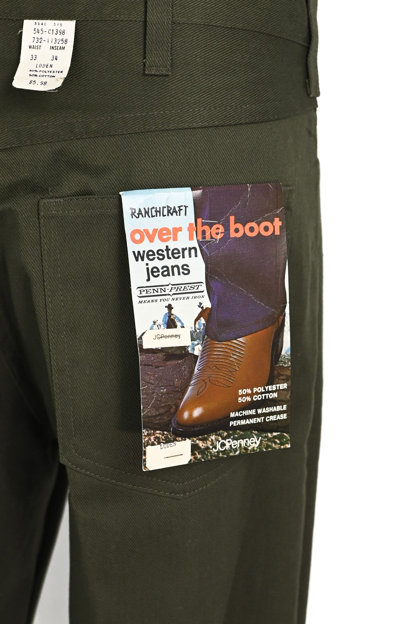 DEADSTOCK - Men's Vintage 70s Olive Green JCPENNEY Ranchcraft Penn-Prest Over the Boot Western Jeans