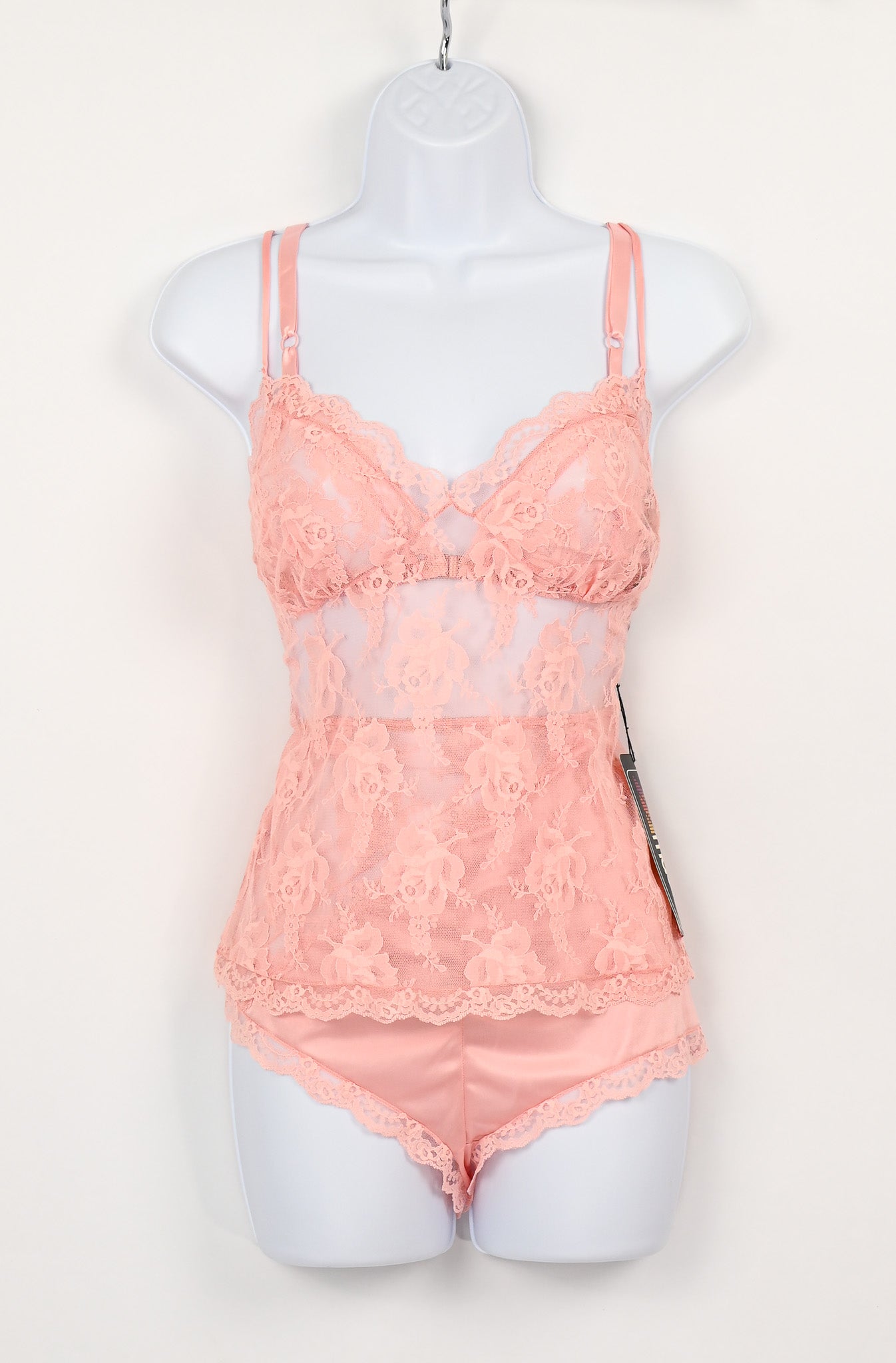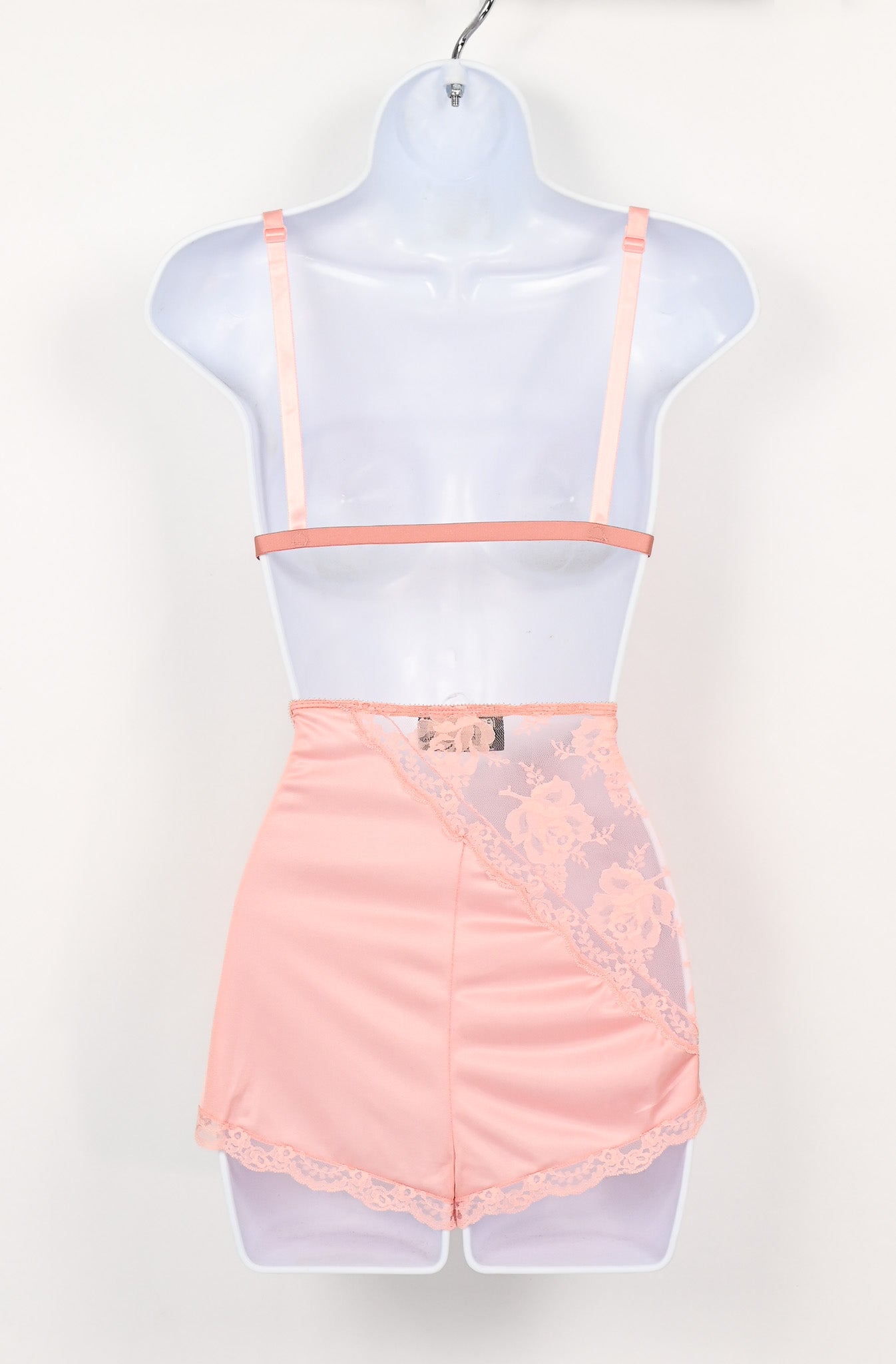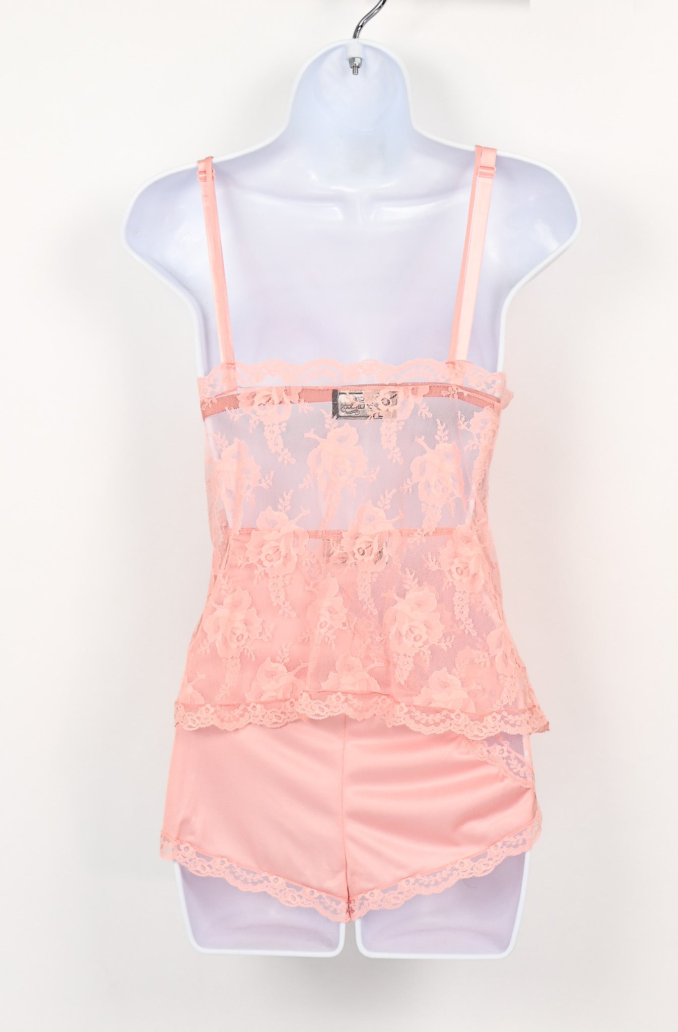 DEADSTOCK - Vintage 70s Pink Lace BOB MACKIE FOR GLYDONS 3pc. Sleep Lingerie Set - Too cute and rare not to wear. This set includes a matching bralette, tank top, and micro shorts.
