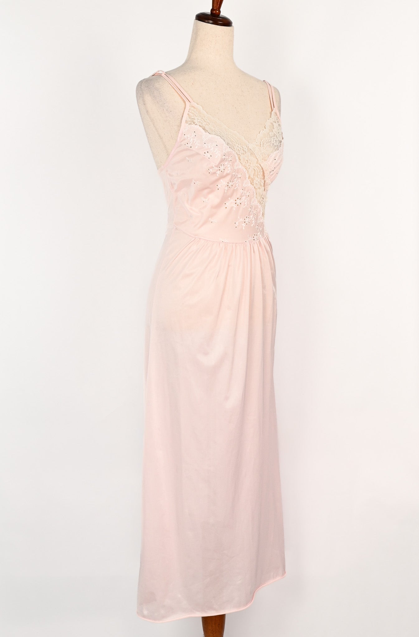 Vintage 70s/80s Pink Nylon Embroidered Lace Eyelet Nightgown
