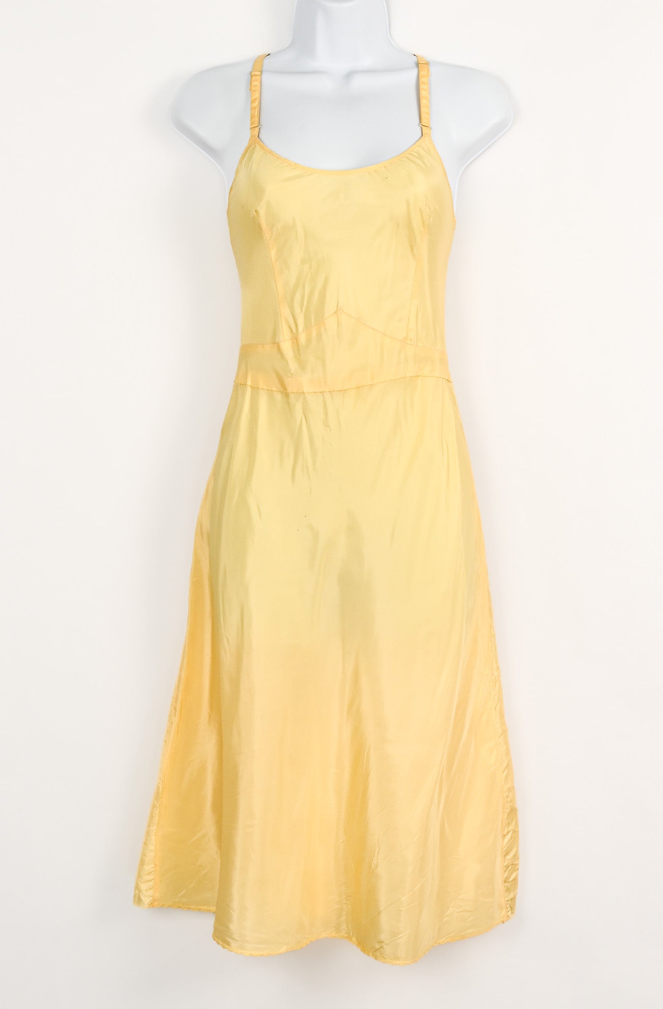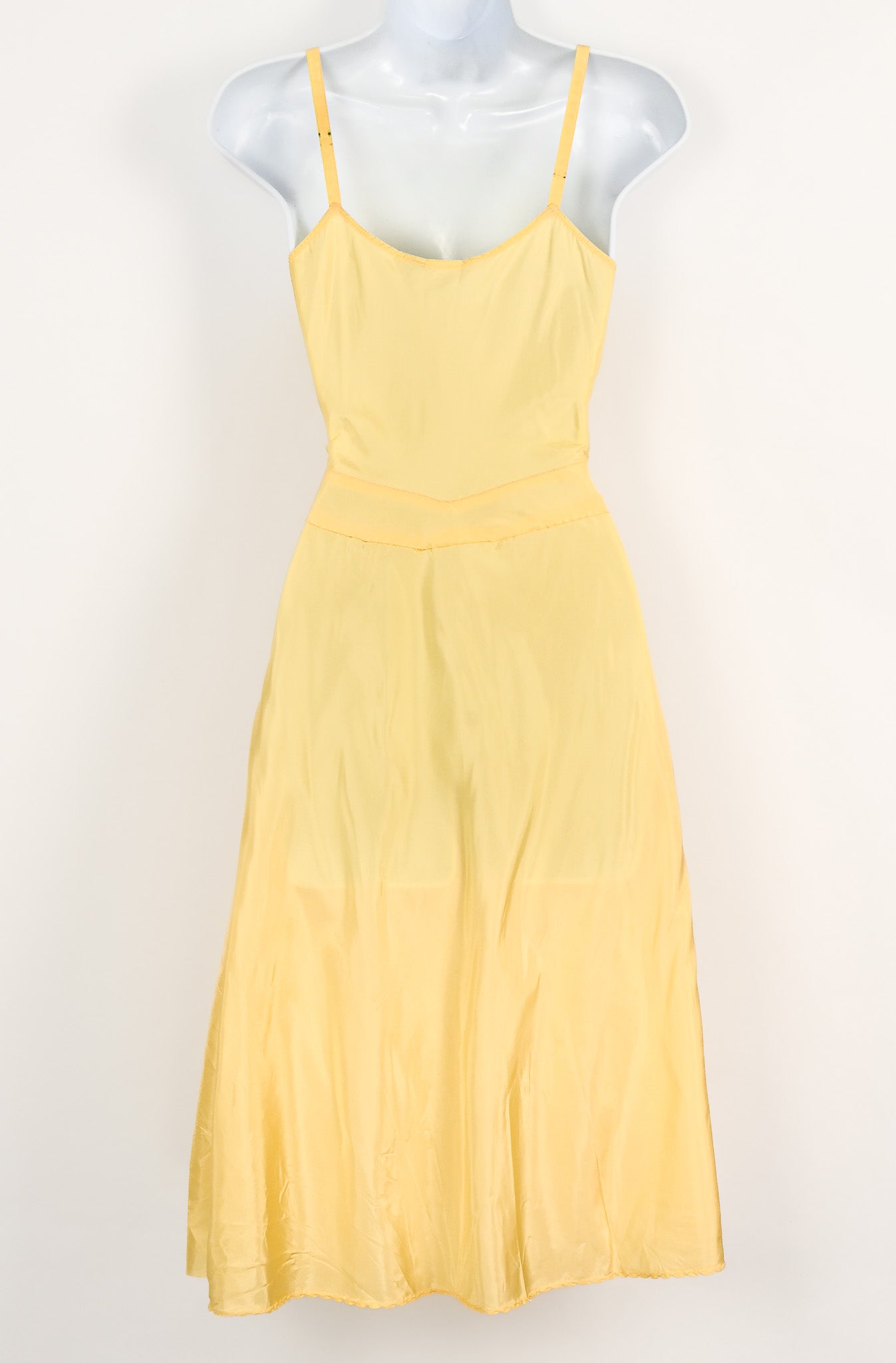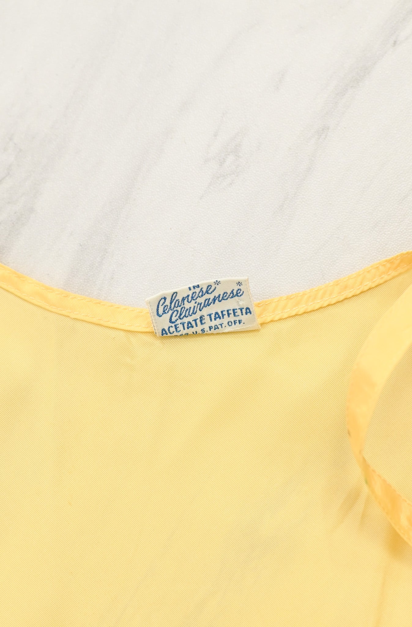 Vintage 40s Yellow Celanese Taffeta THE SNIP-IT SLIP Full Slip Dress - Pure elegance and history alludes from this slip dress. This slip features adjustable straps and a scalloped hem.