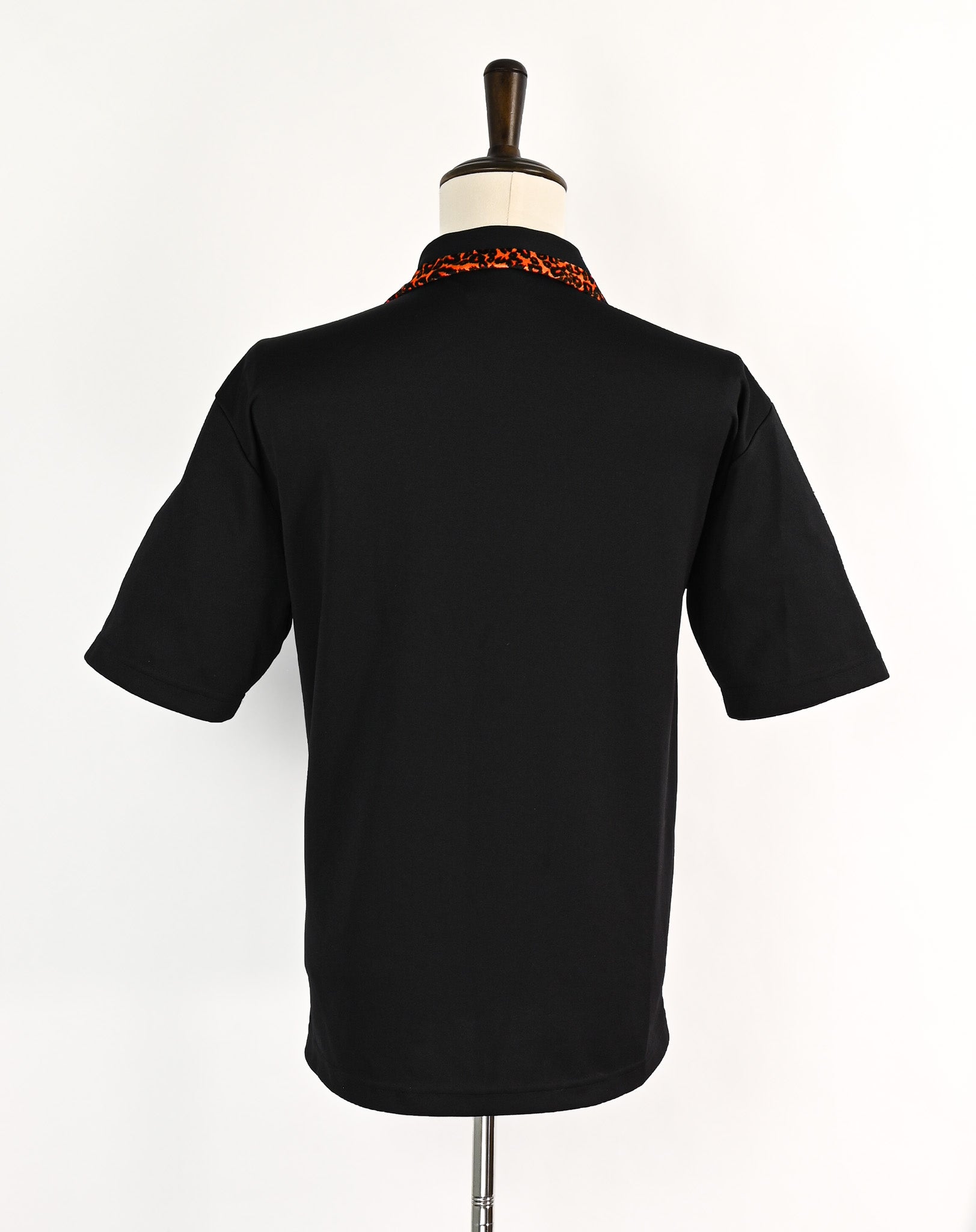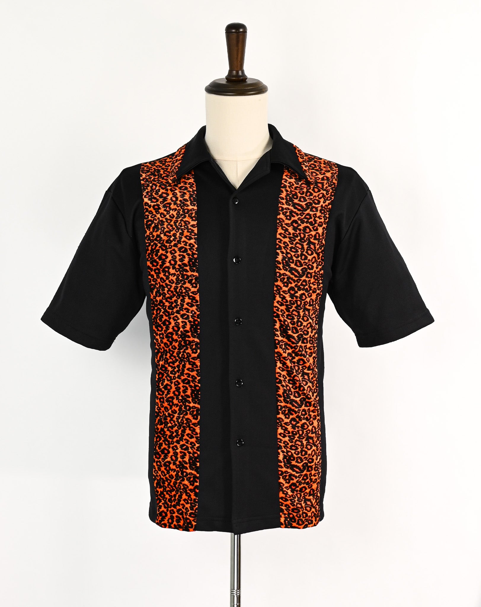 Vintage 90s Black/Orange Velour Cheetah Print COCKTAIL HOUR Rockabilly Bowling Shirt - M