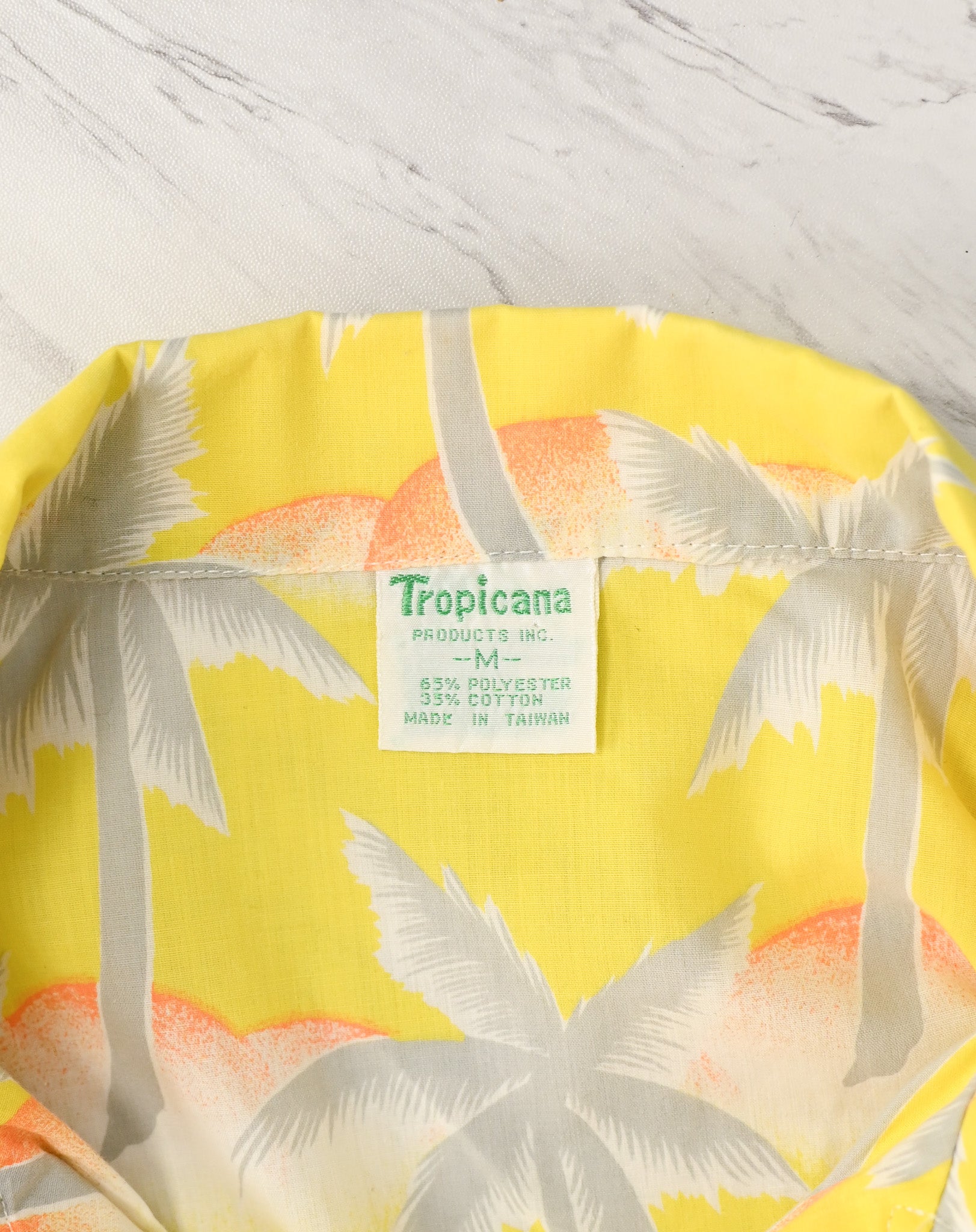 Vintage 80's Yellow & Grey Palm Tree Print TROPICANA PRODUCTS INC. Hawaiian Shirt - I know what shirt you can be wearing while drinking Tropicana Orange Juice. (this one)