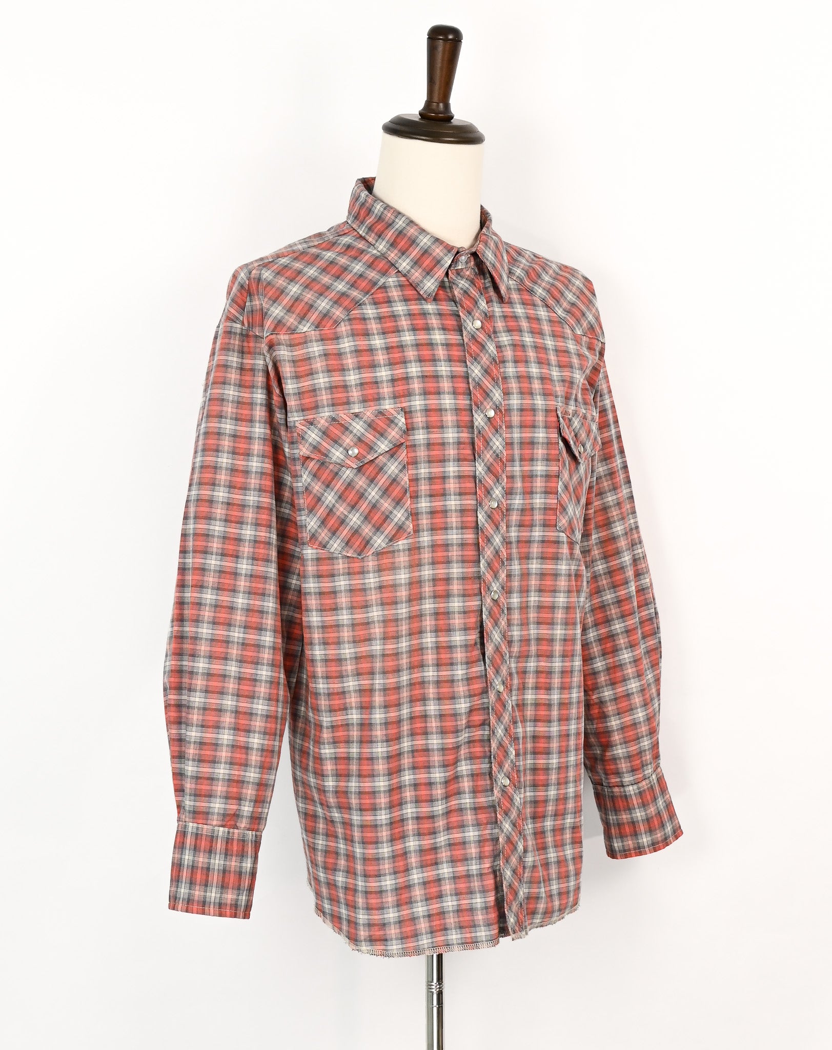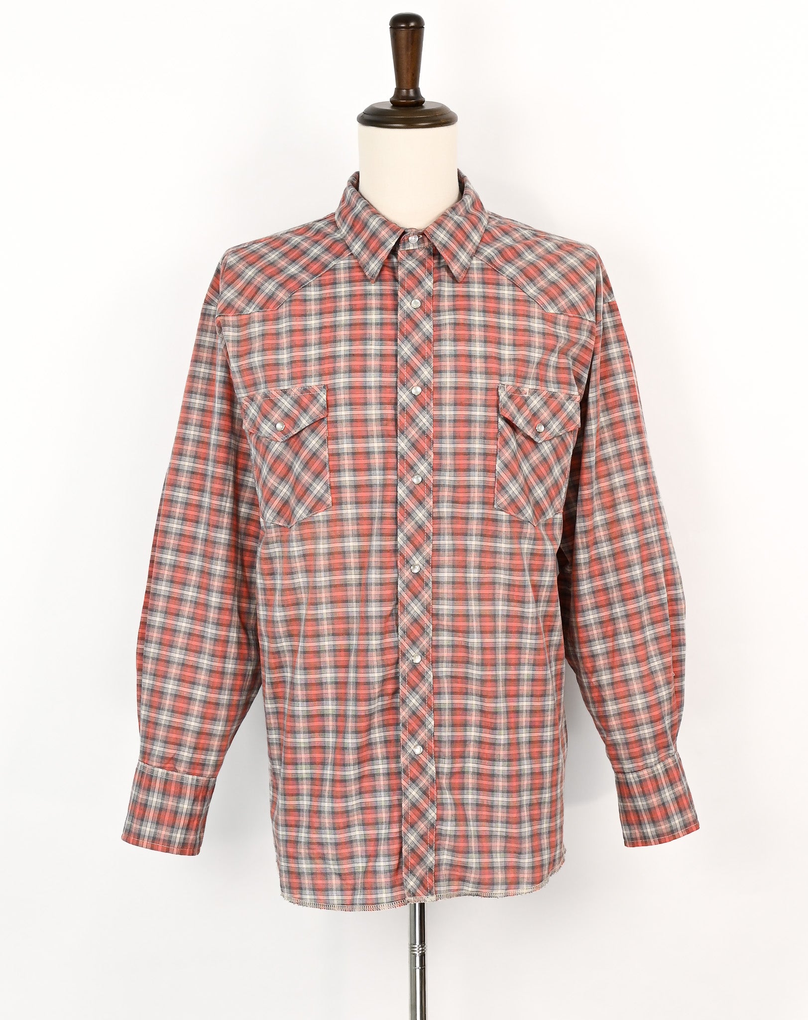 Grey & Reddish Pink Plaid WRANGLER Long Sleeve Snap Button Dress Shirt