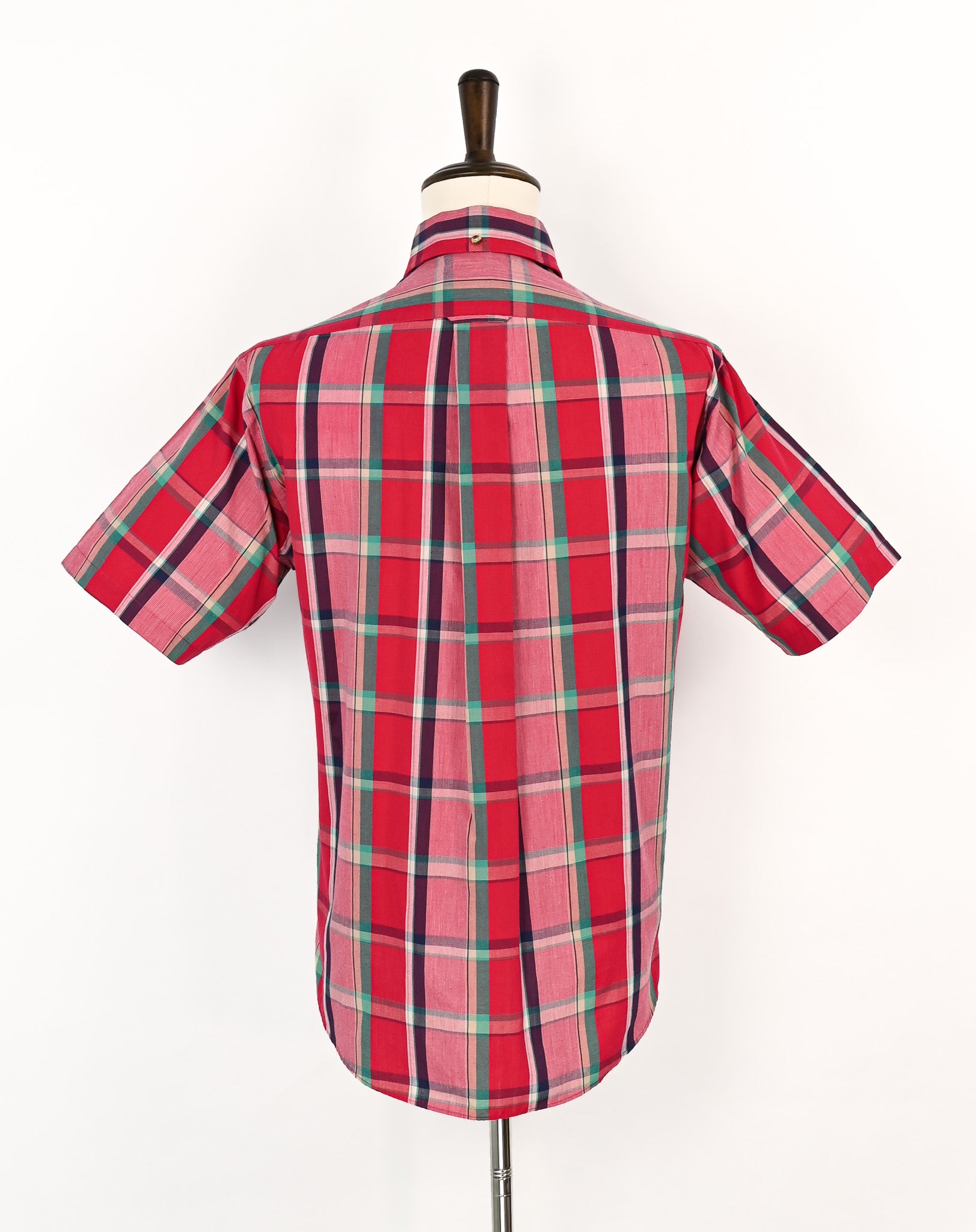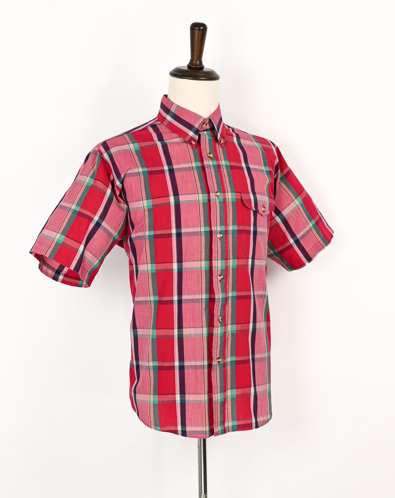 Vintage 90s Pink & Red Plaid THE FOX COLLECTION Single Needle Tailoring Short Sleeve Button Down Shirt - Here's a classic vintage button up shirt to hang around town in.
