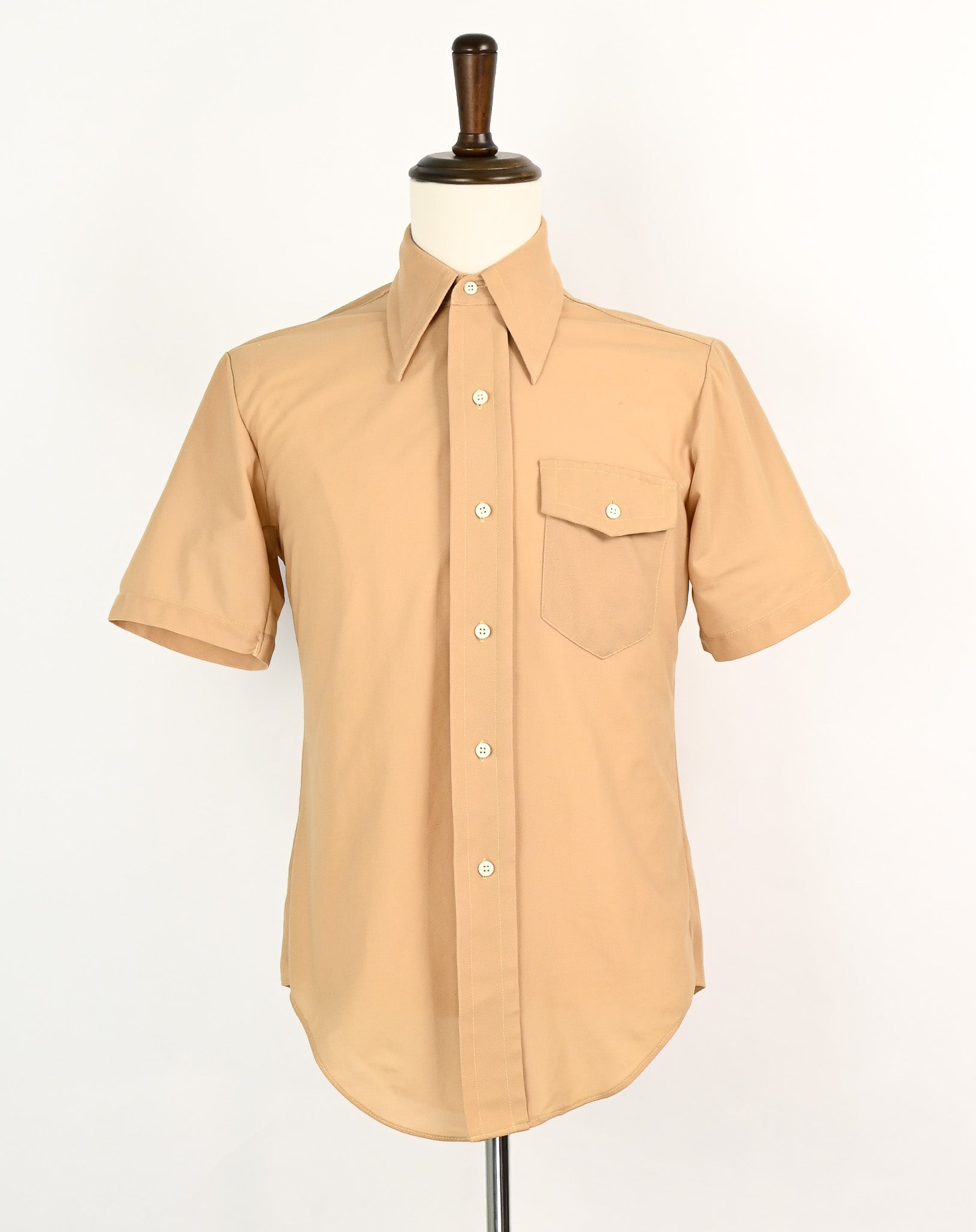 Vintage 60s/70s Light Brown Polyester ASHLEY Permanent Press Short Sleeve Button Up