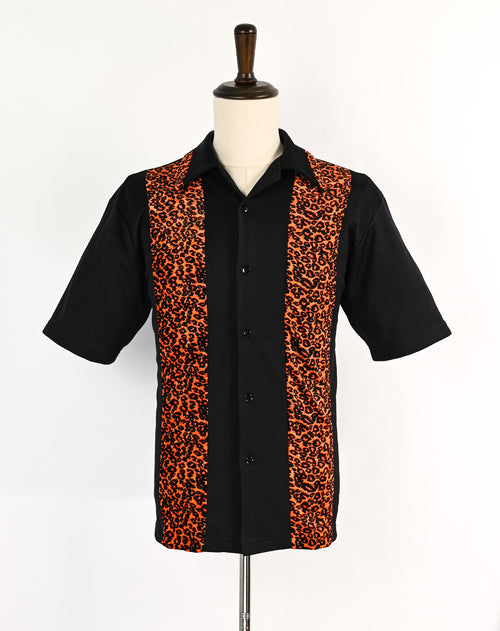 Vintage 90s Black/Orange Velour Cheetah Print COCKTAIL HOUR Rockabilly Bowling Shirt - M