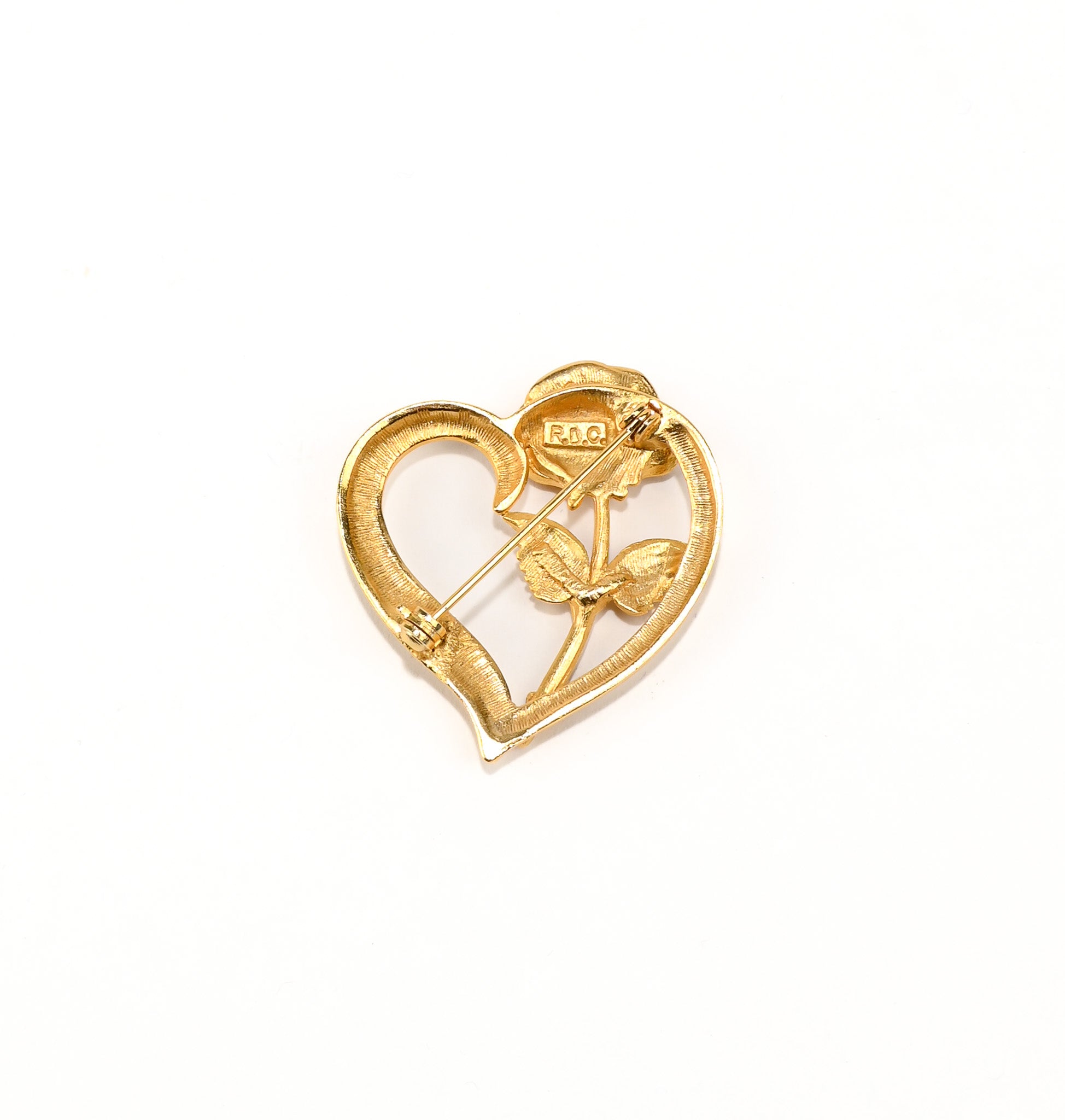 Vintage Gold Tone RDC Heart & Rose Shaped Brooch Pin