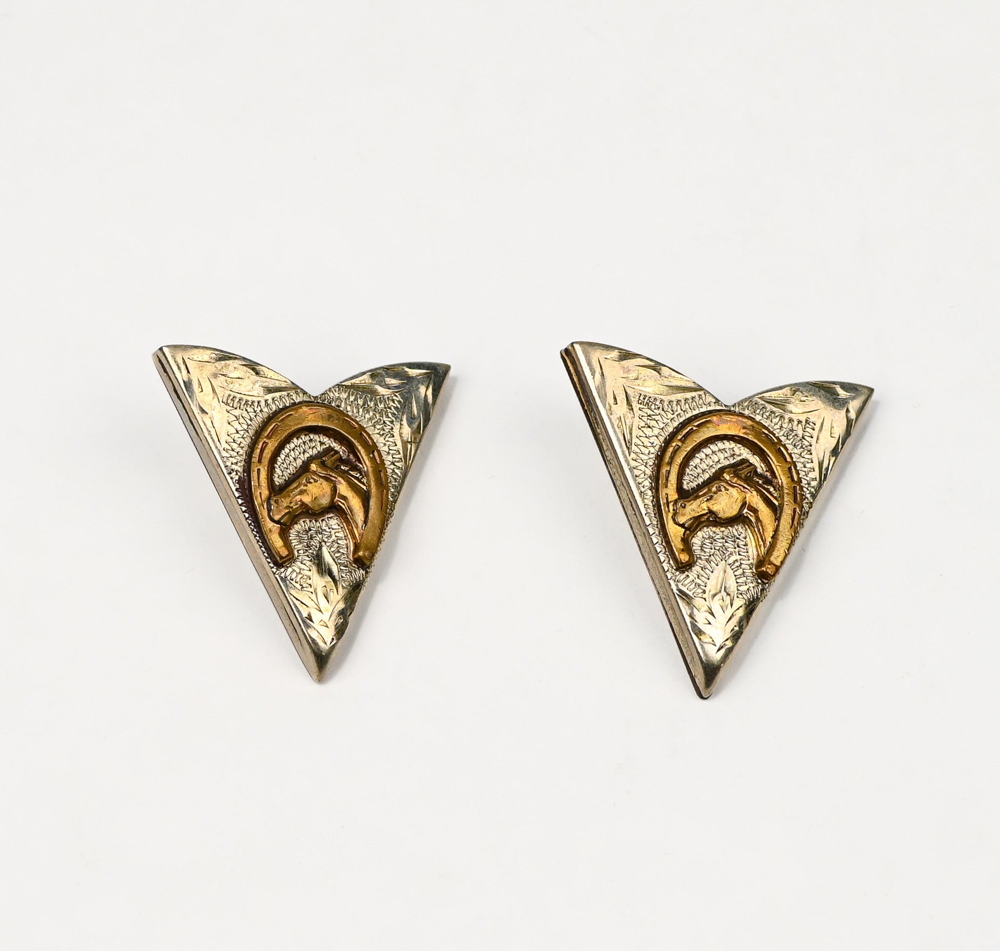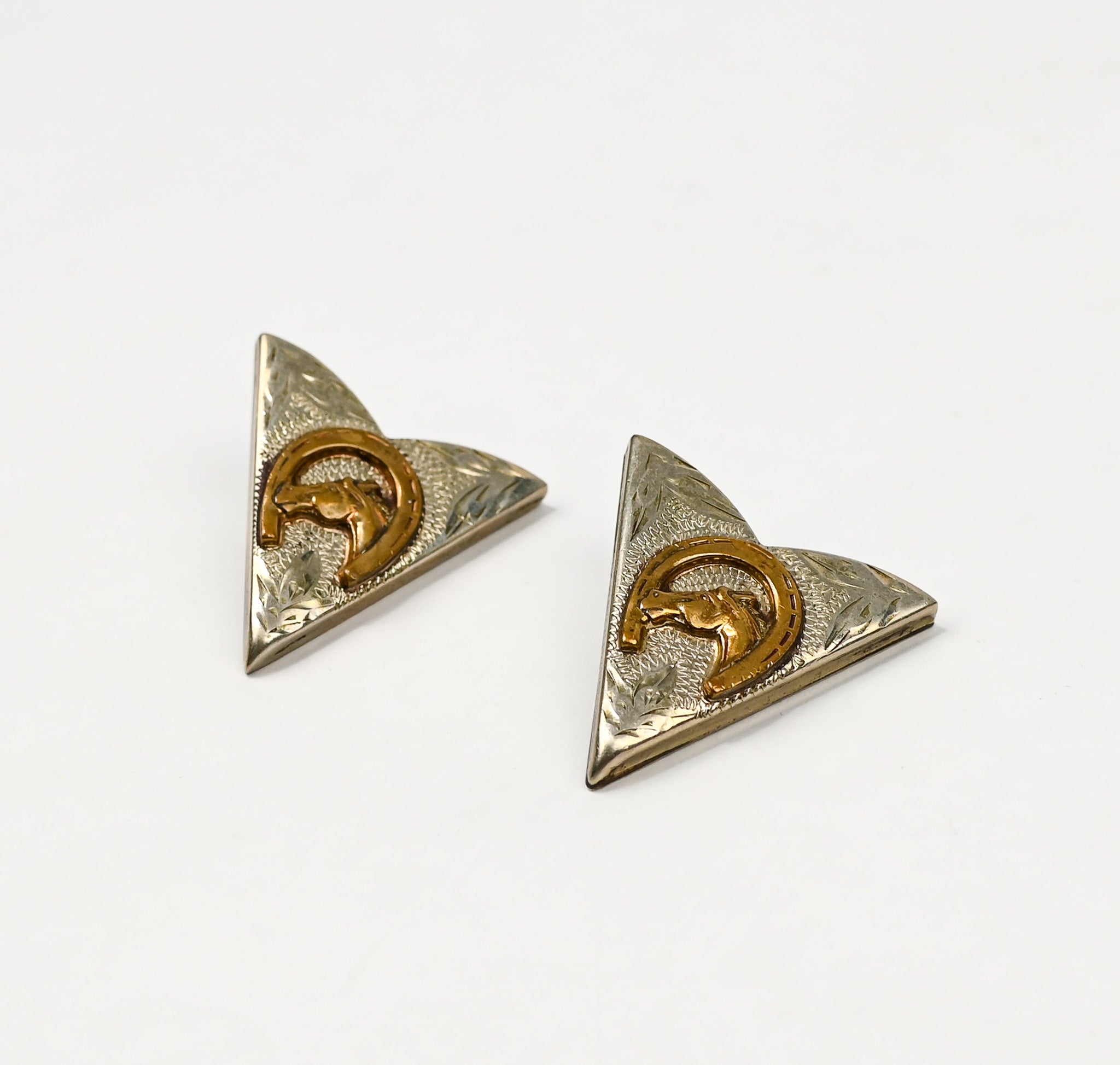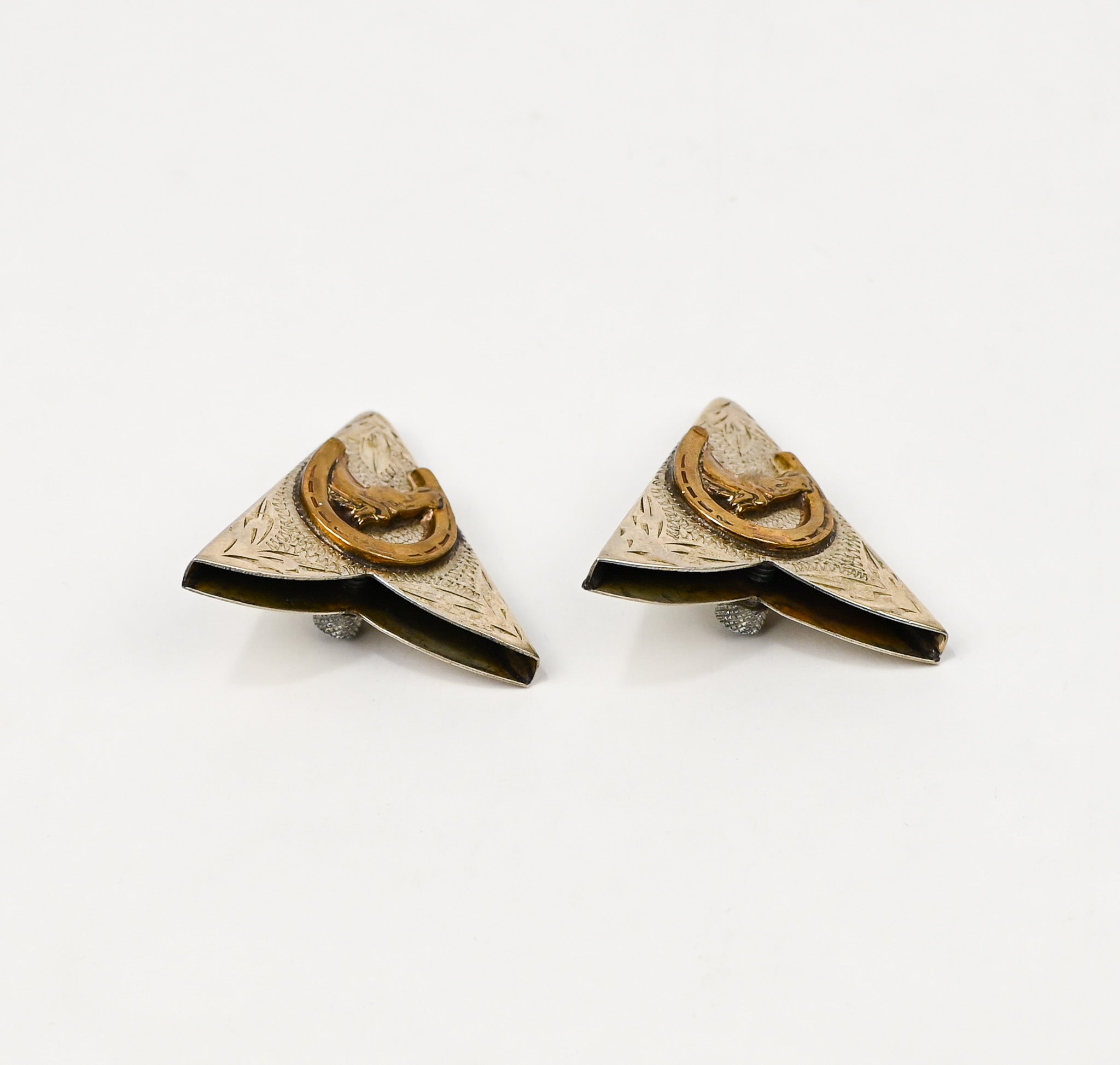 Vintage Nickel Silver RICARDO Bronze Trim Western Horseshoe Collar Tips, Screw On Fastener