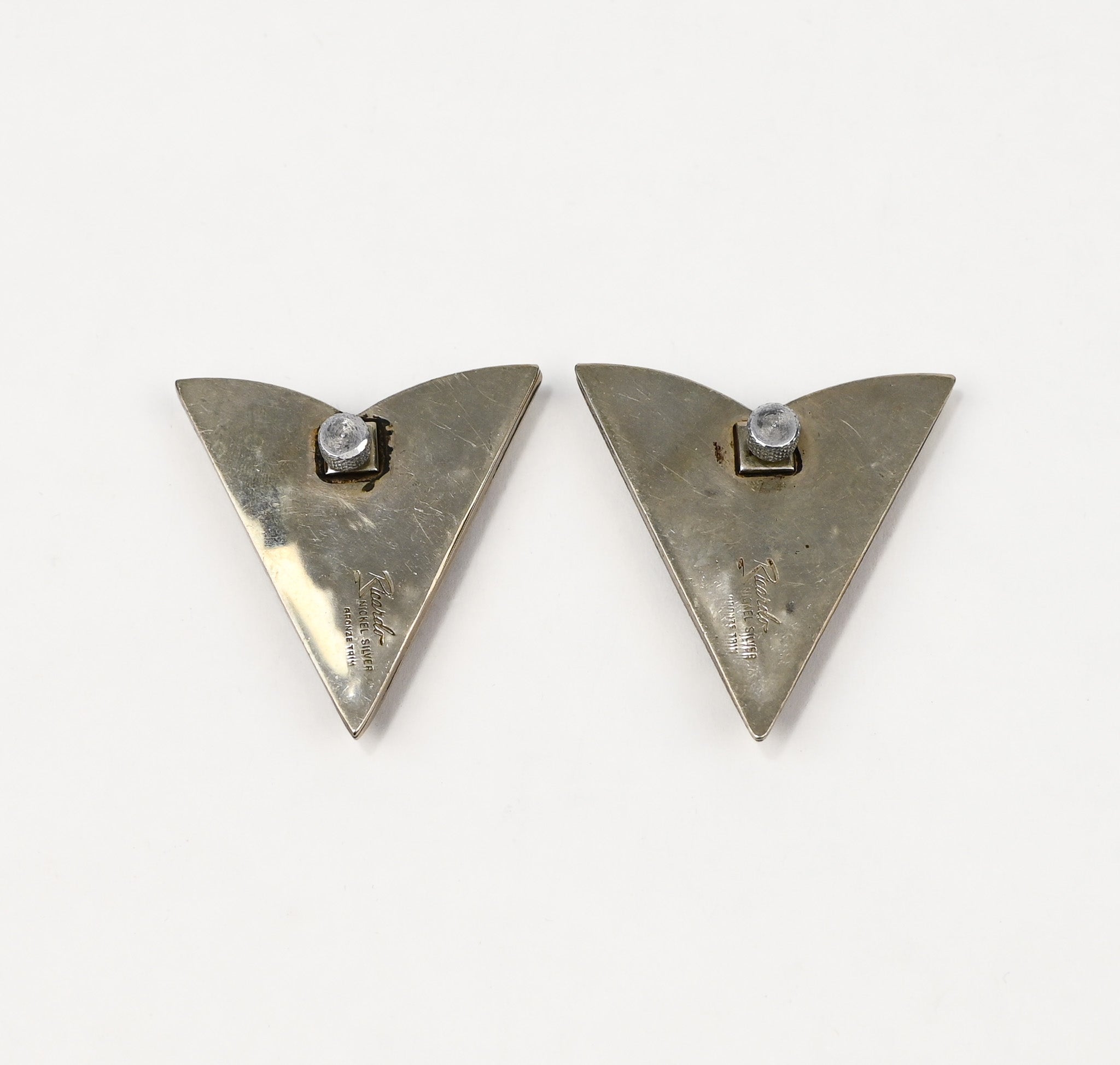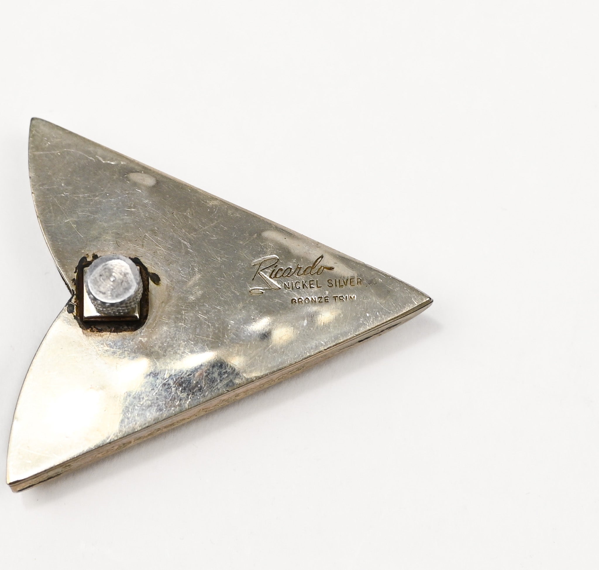 Vintage Nickel Silver RICARDO Bronze Trim Western Horseshoe Collar Tips