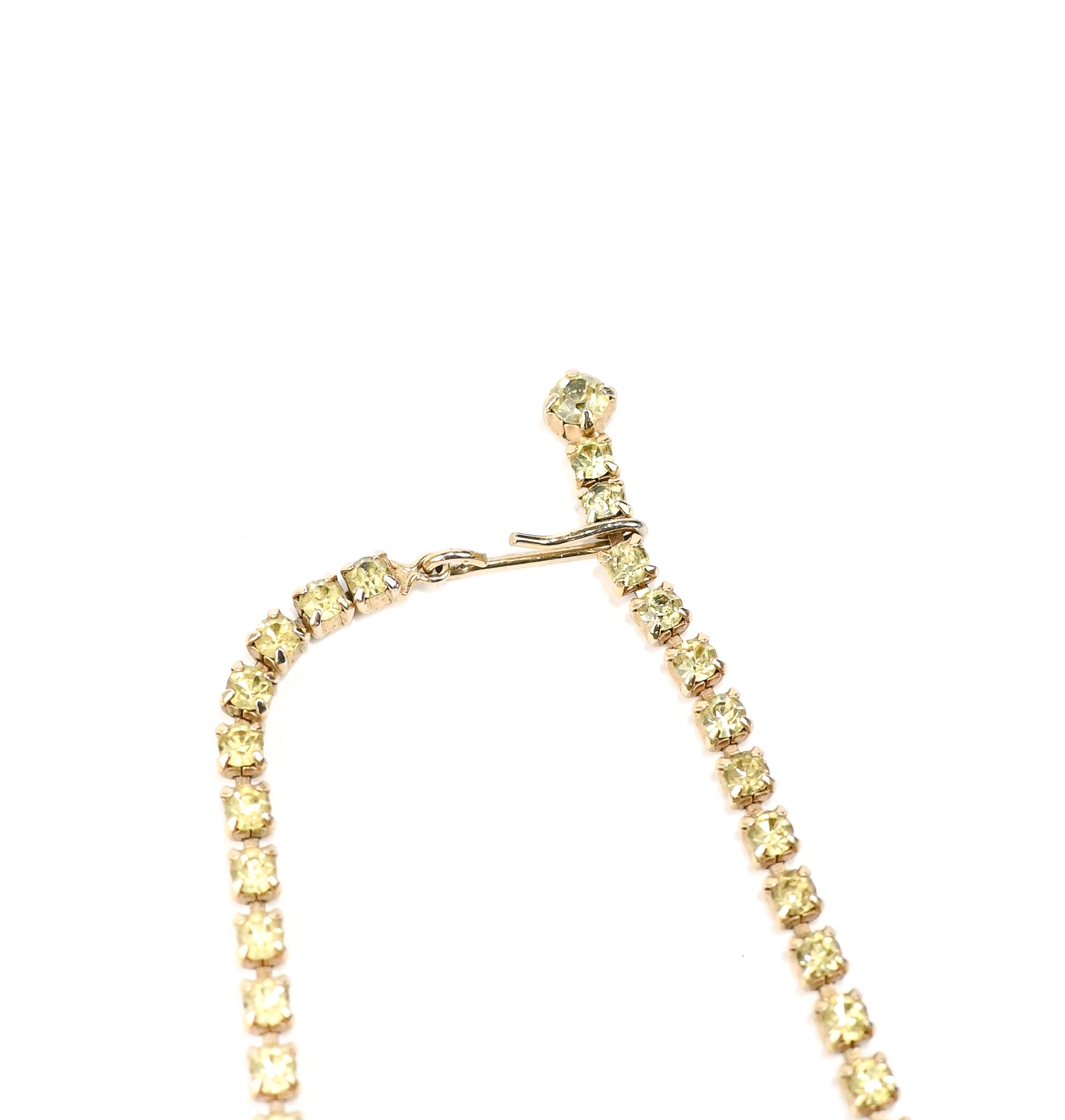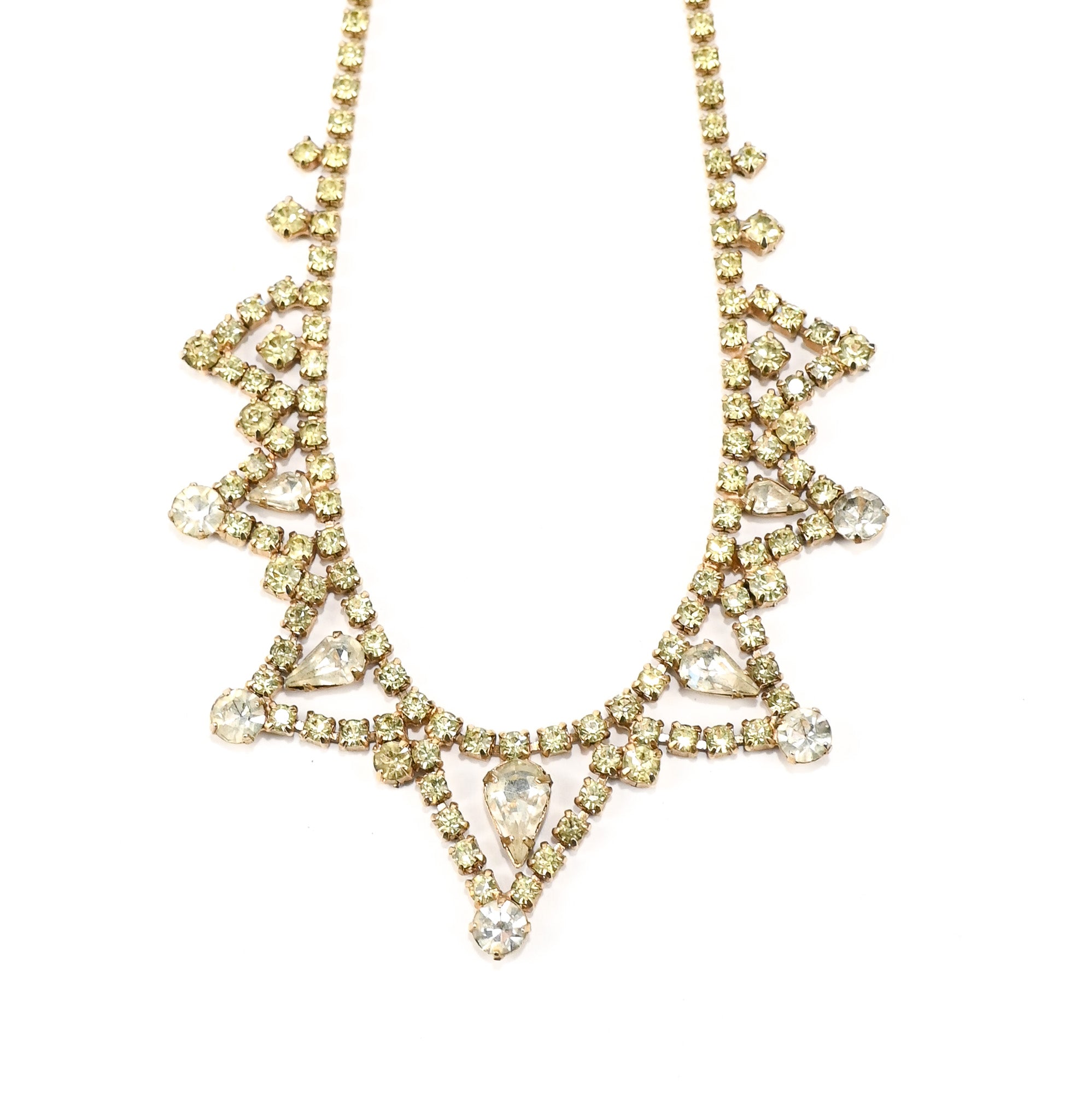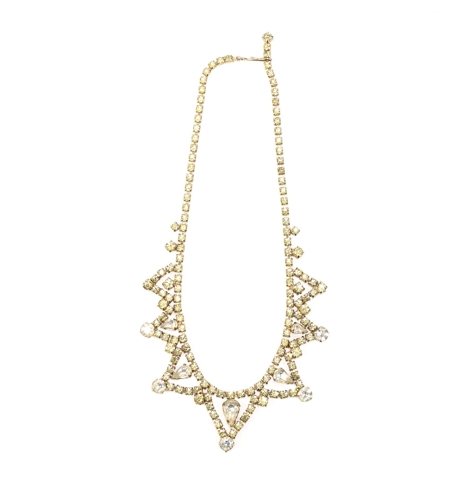 Vintage 50s/60s Silver Tone & Light Green Rhinestone Adjustable Necklace