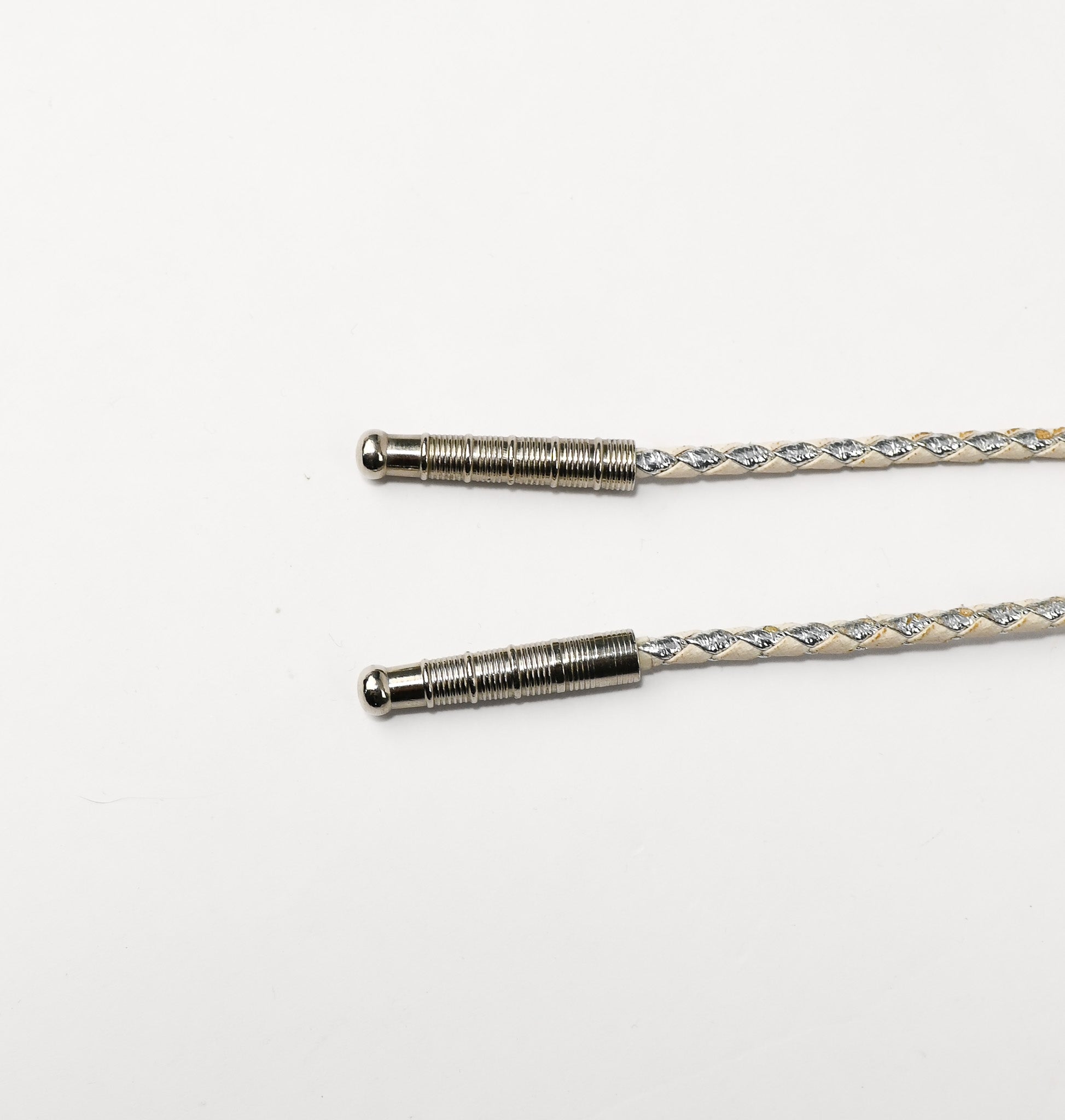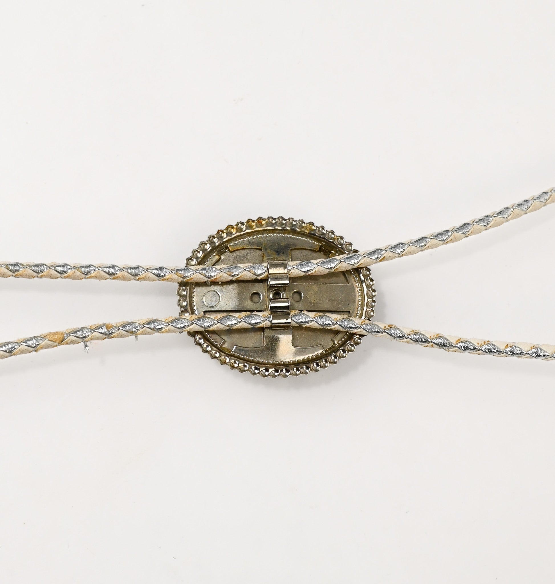 There are signs of wear to the tie and bolo due to age, use, and storage.