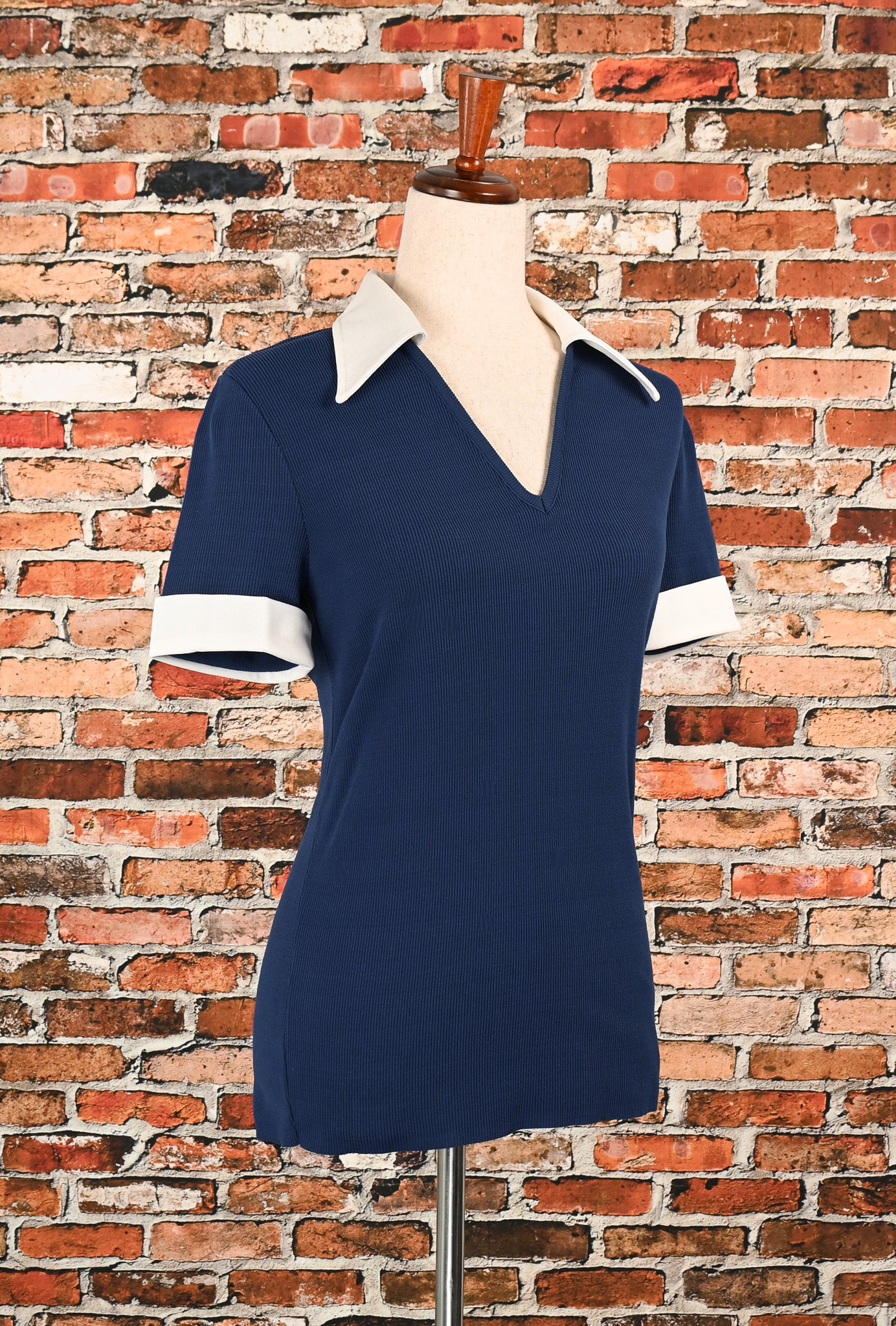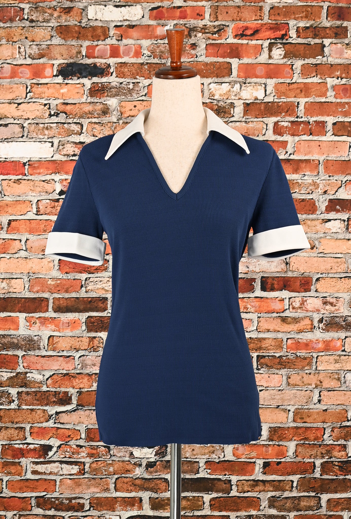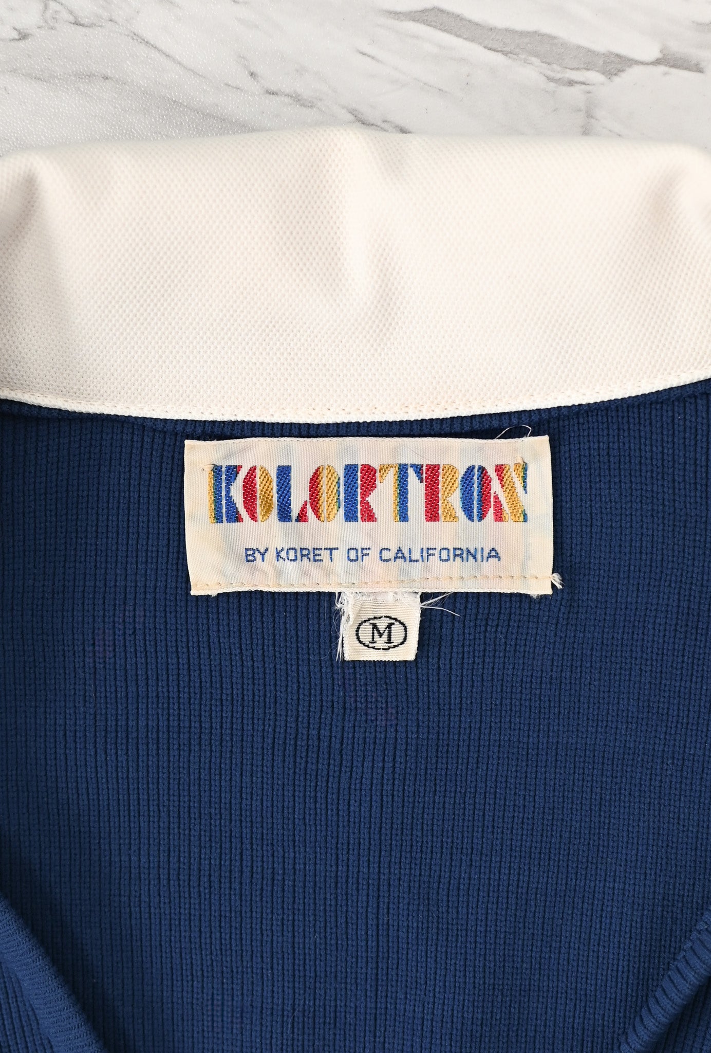 Vintage 70s Navy Blue Knit KOLORTRON BY KORET OF CALIFORNIA V-neck Collar Shirt