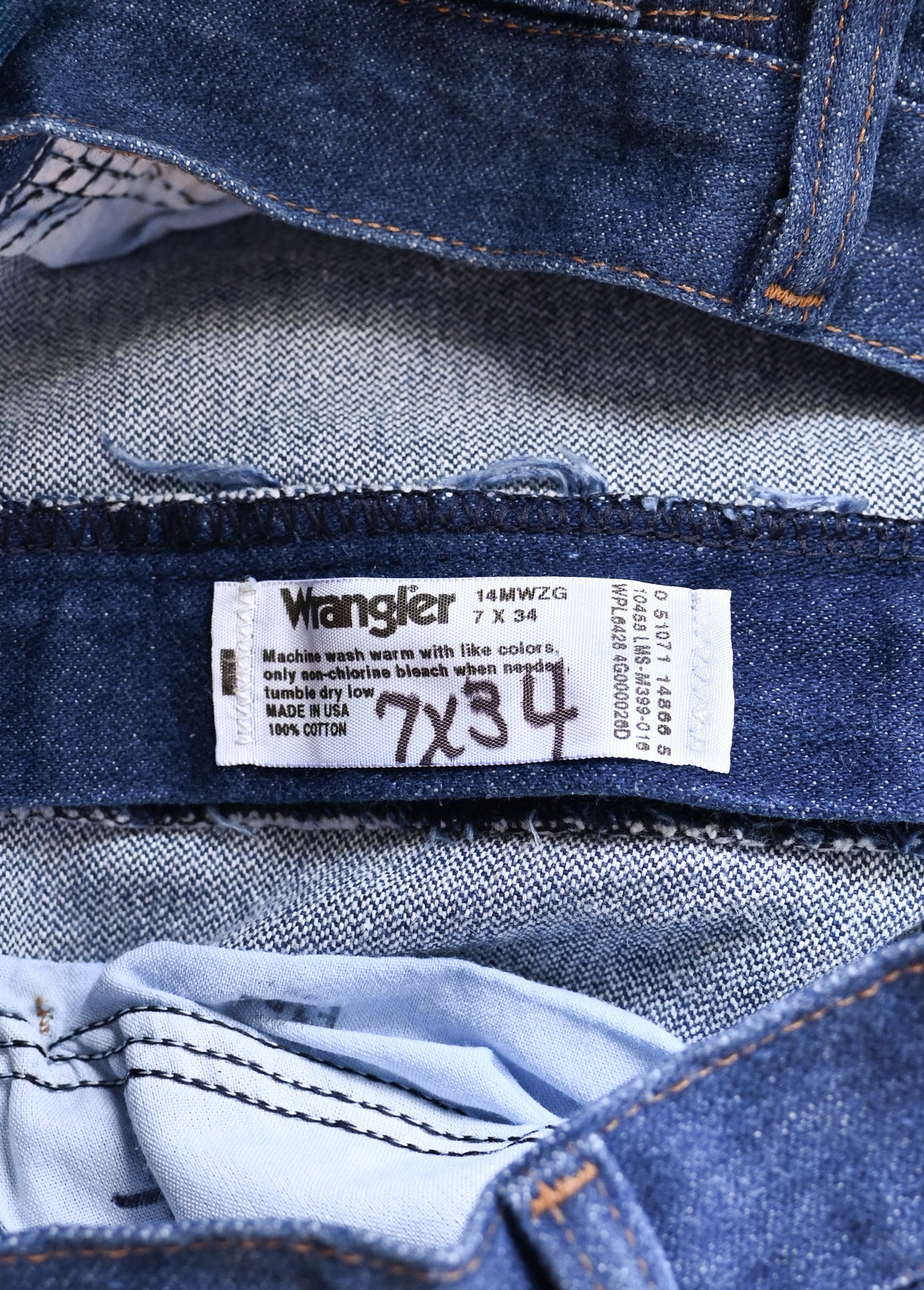There are signs of wear due to age, use, and storage; such as marker written on the size tag.