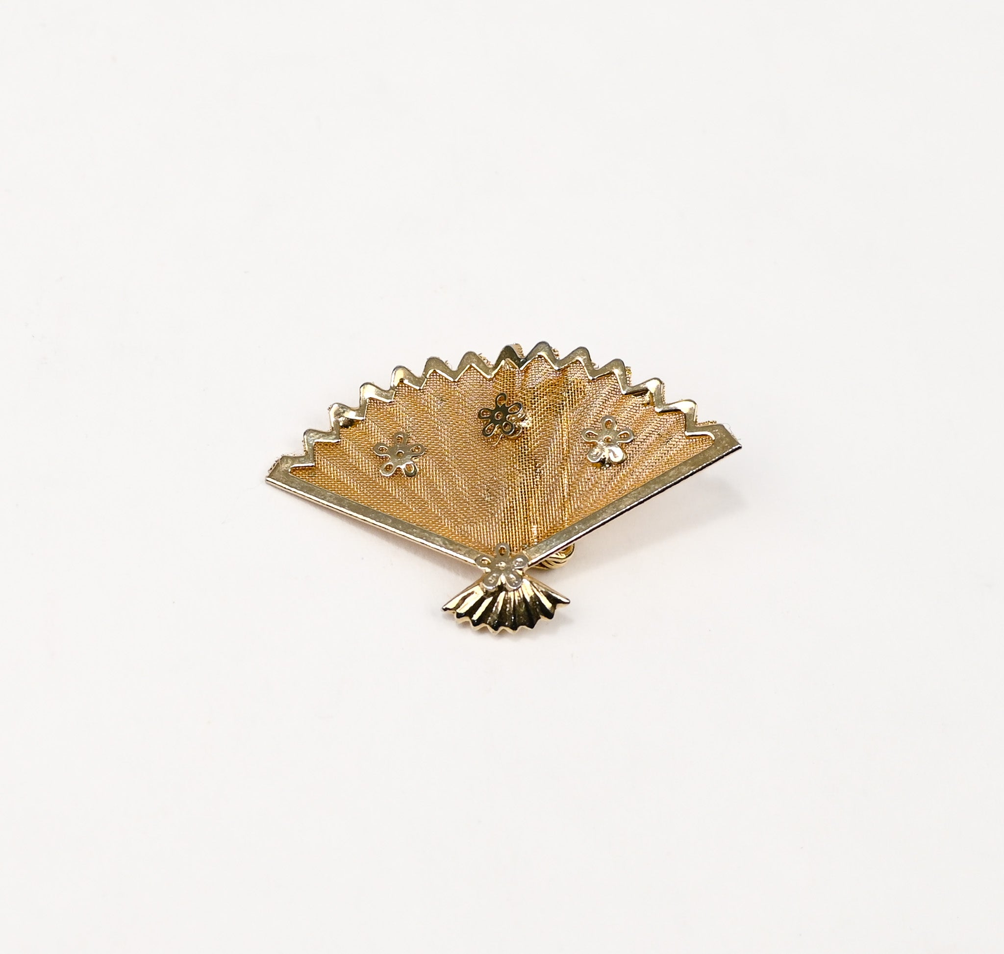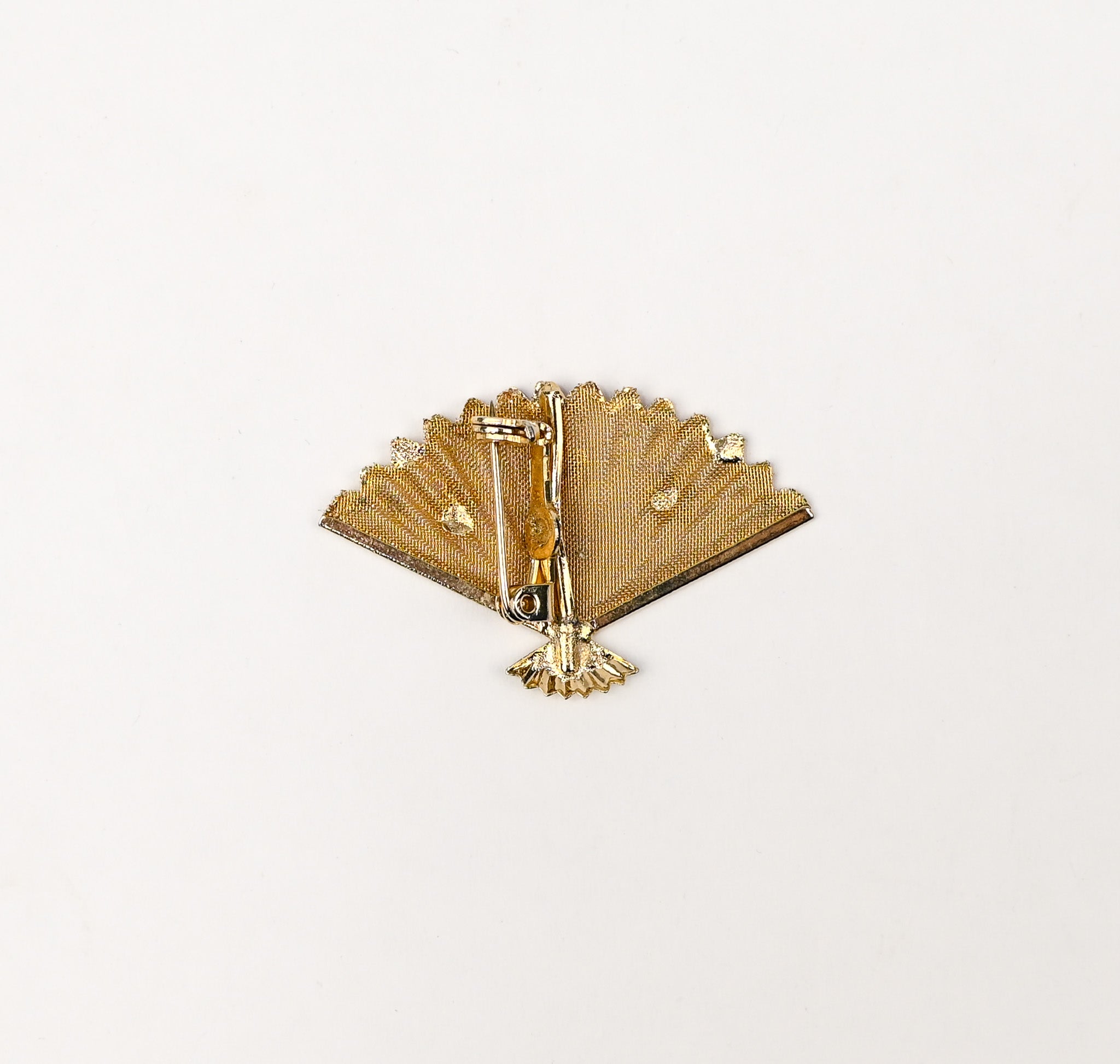 Vintage Gold Tone Handheld Mesh Fan Brooch